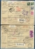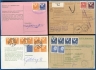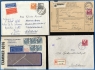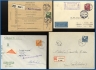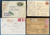 serien Bla: 75 öre på vykort till Norge, 2x 80 öre Rek luftpost till Teneriffa, 1 kr till Japan etc. de flesta sända inrikes Paket, Ass, Rek, Postförskott etc.