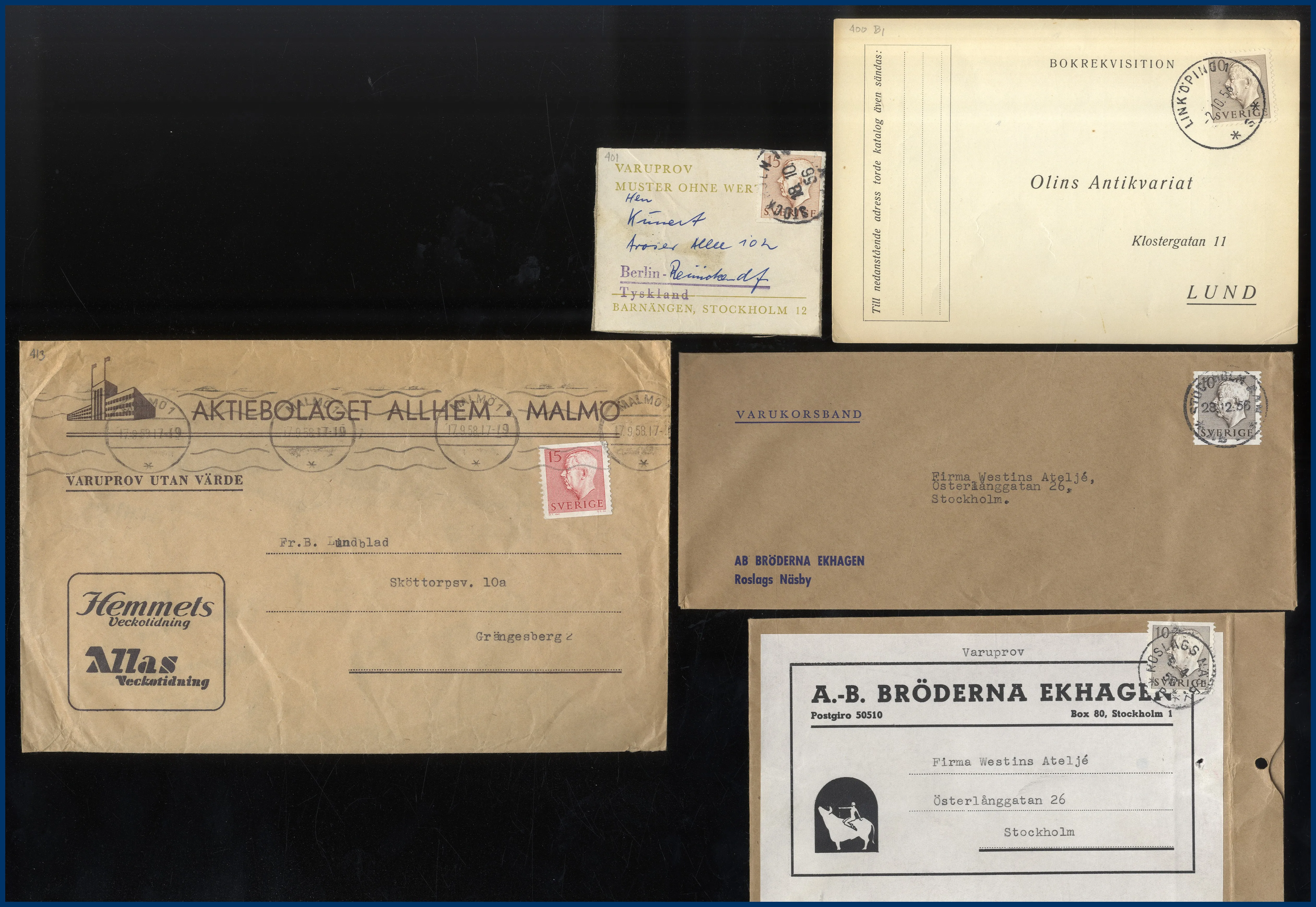 85. (C) Lot med 5 st intressanta Gustaf VI Adolf försändelser: