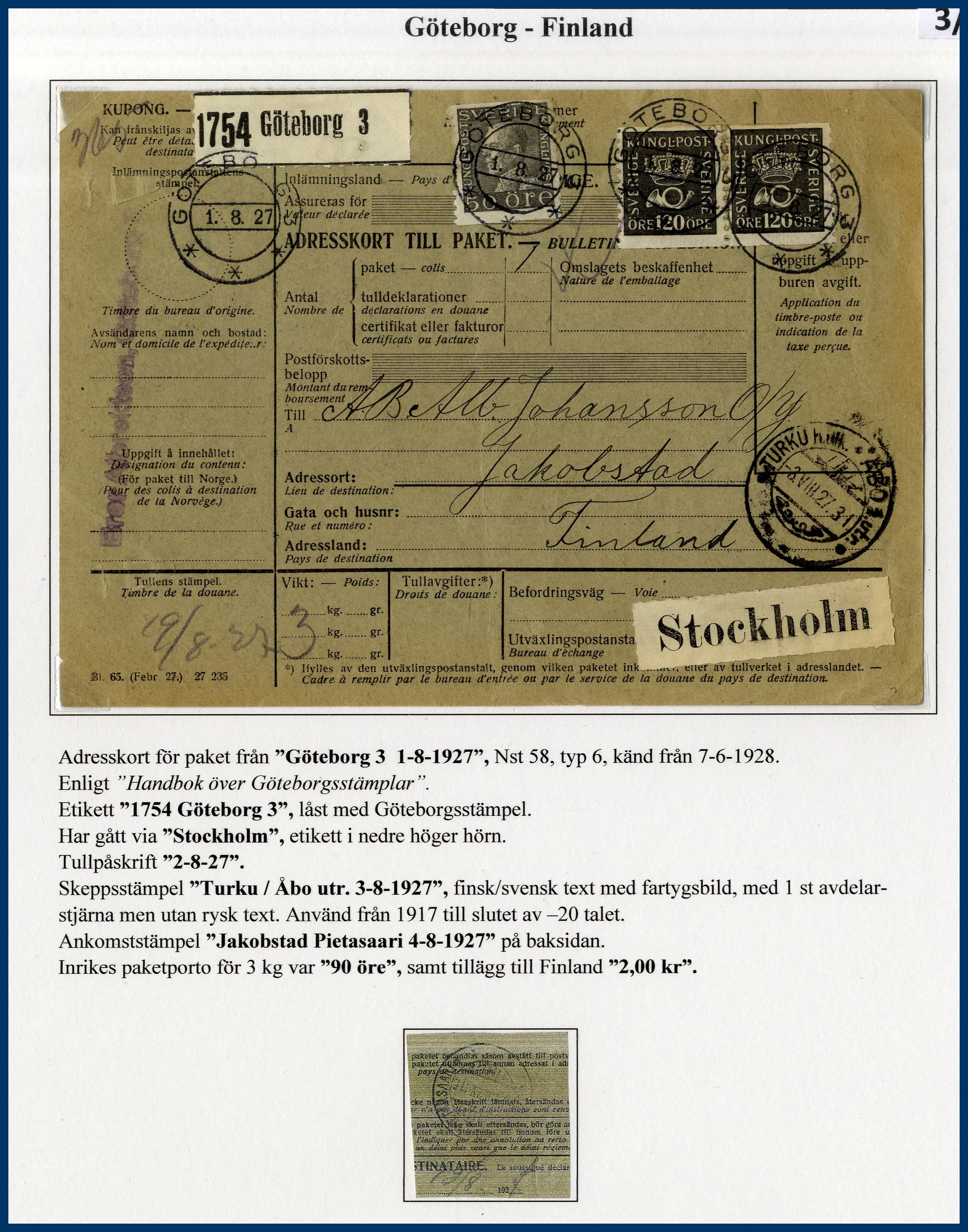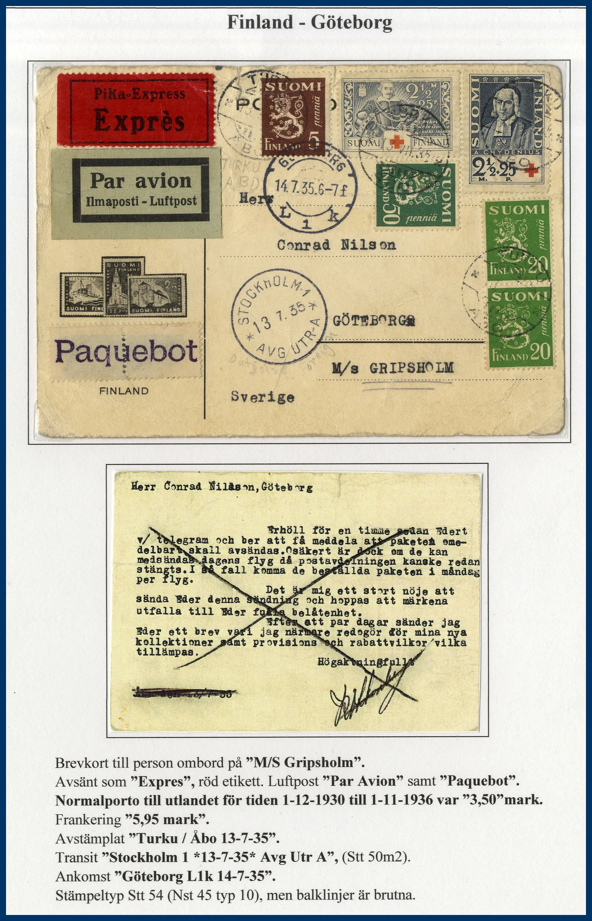 220. (C) Skeppspost Sverige-Finland 1847-1962