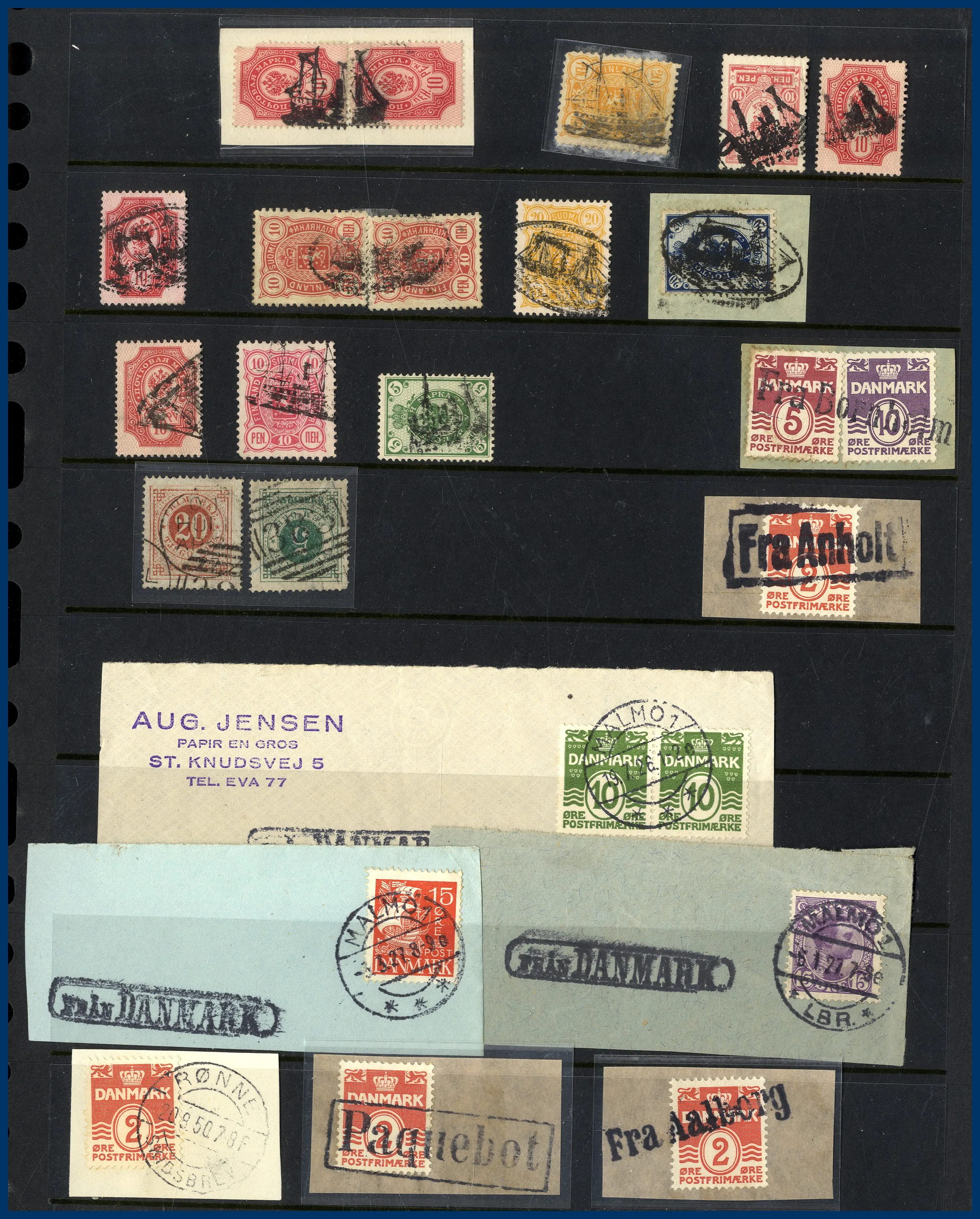 på 7 försändelser + visirblad med diverse skeppsstämplar Finland, Danmark, England bla 11 st siluettstämplar.