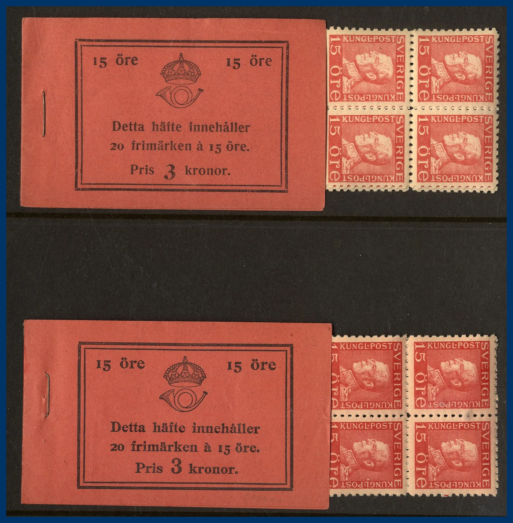 4. (C) Två olika 15 öre röd Profil vänster-häften:
