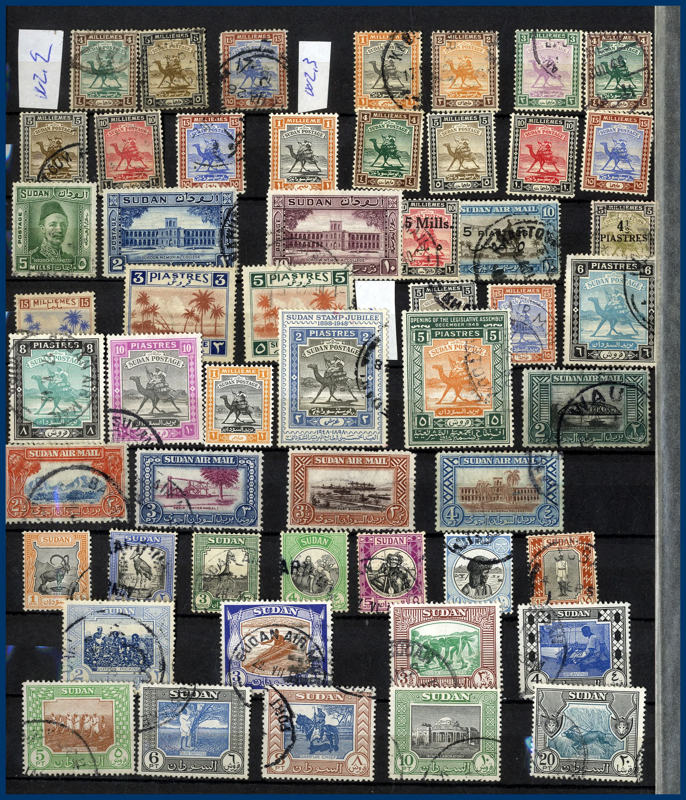 Även lite andra länder, såsom Seychellerna, Sudan. Med några få undantag stämplat, allt i 5 insticksböcker. Bättre märken har setts från en del av länderna.