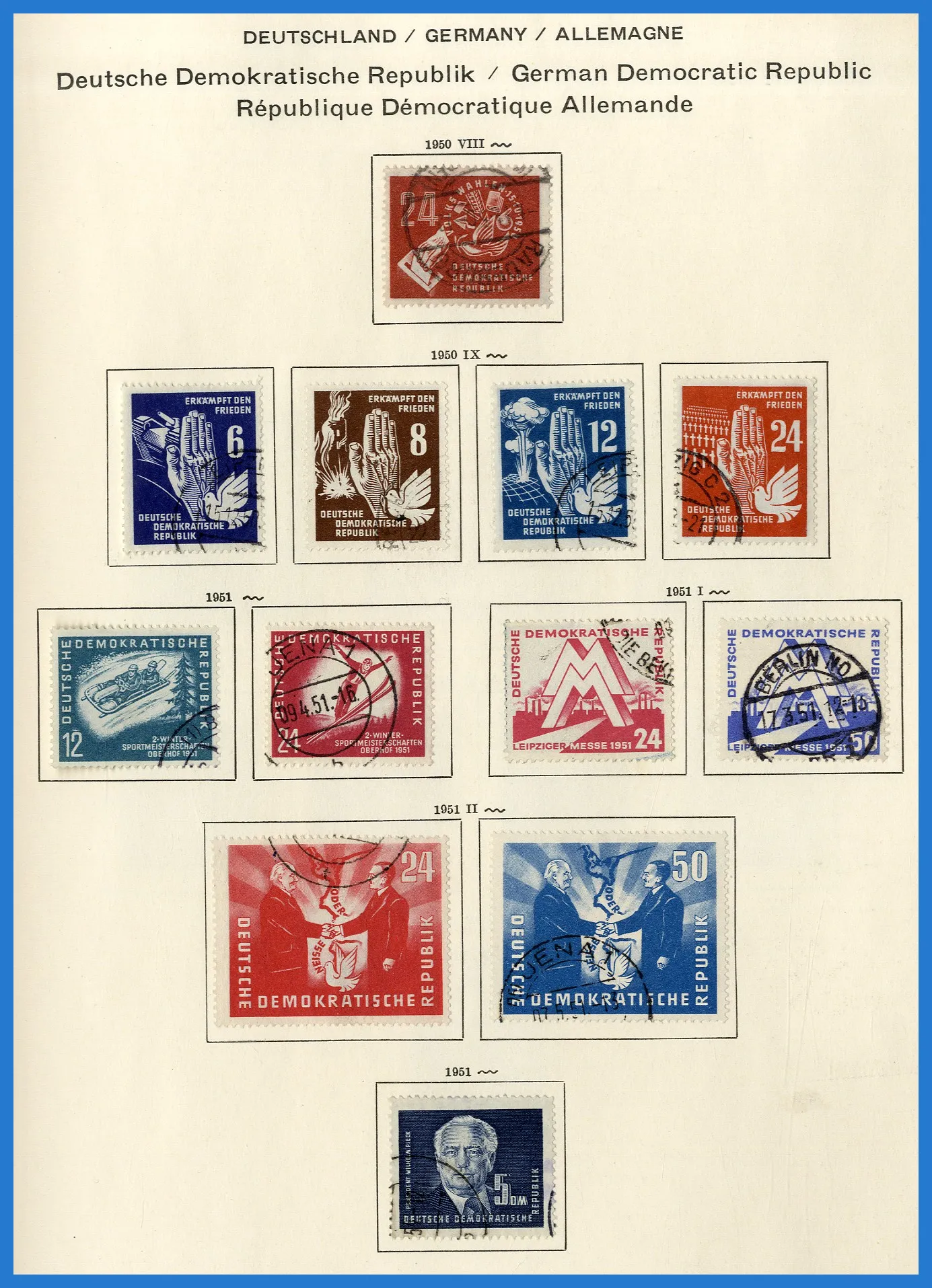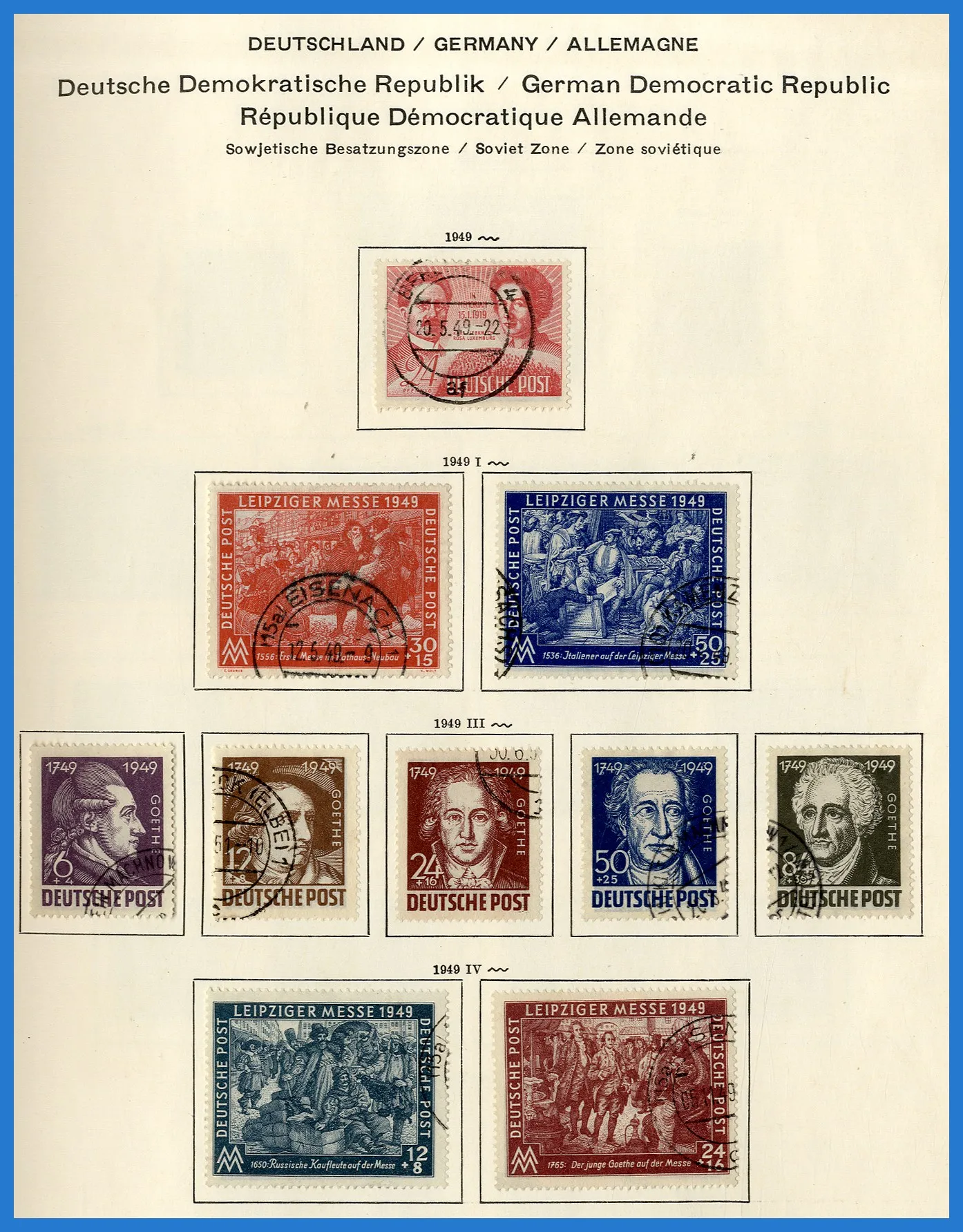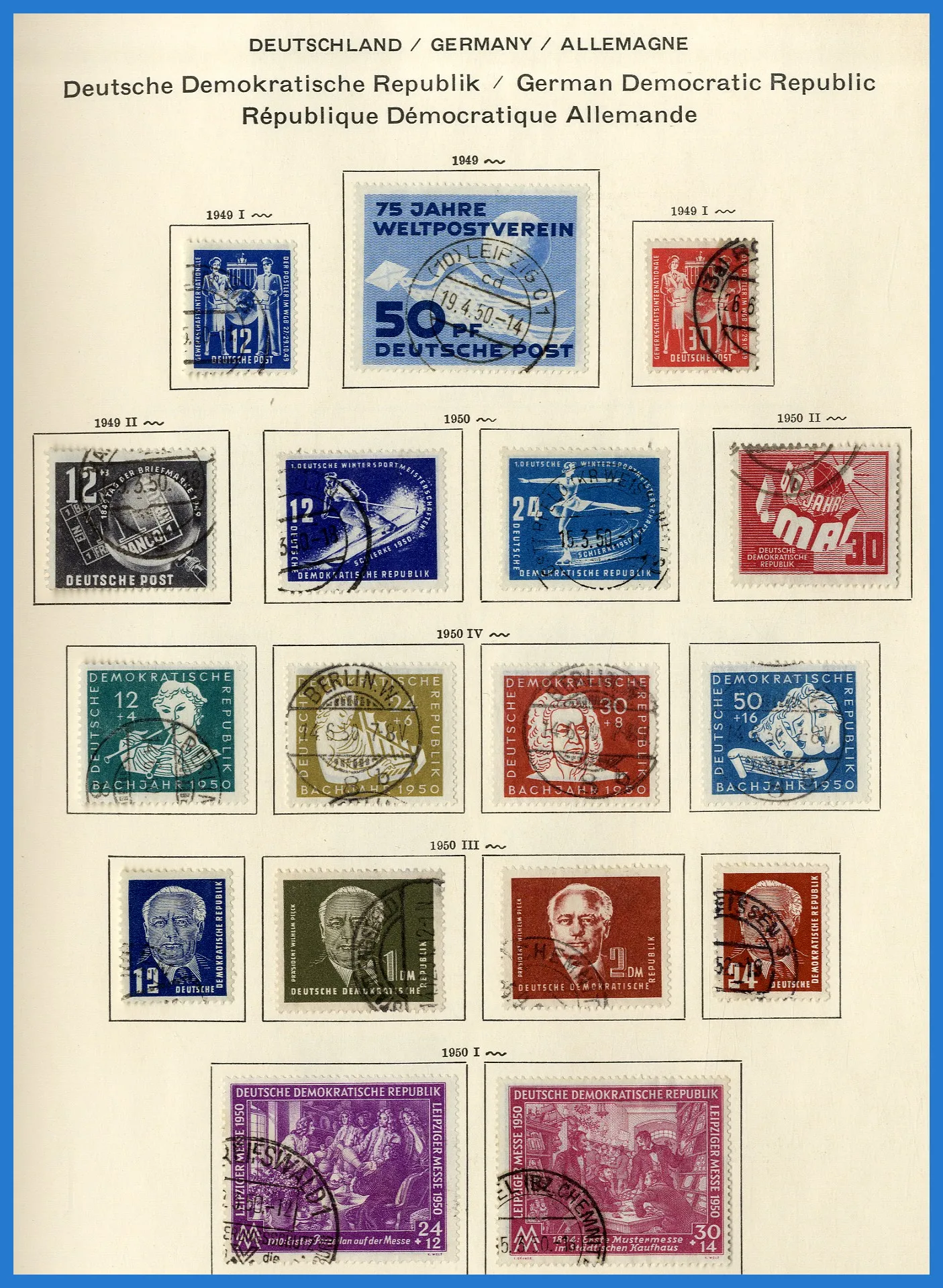 Schaubek-album. Samlingen inleds med lite ockupationsutgåvor (Sovjetiska zonen etc.), varpå följer en i det närmaste komplett samling DDR fram till 1980. Dock inga block och nästan inga tjänstefrimärken.