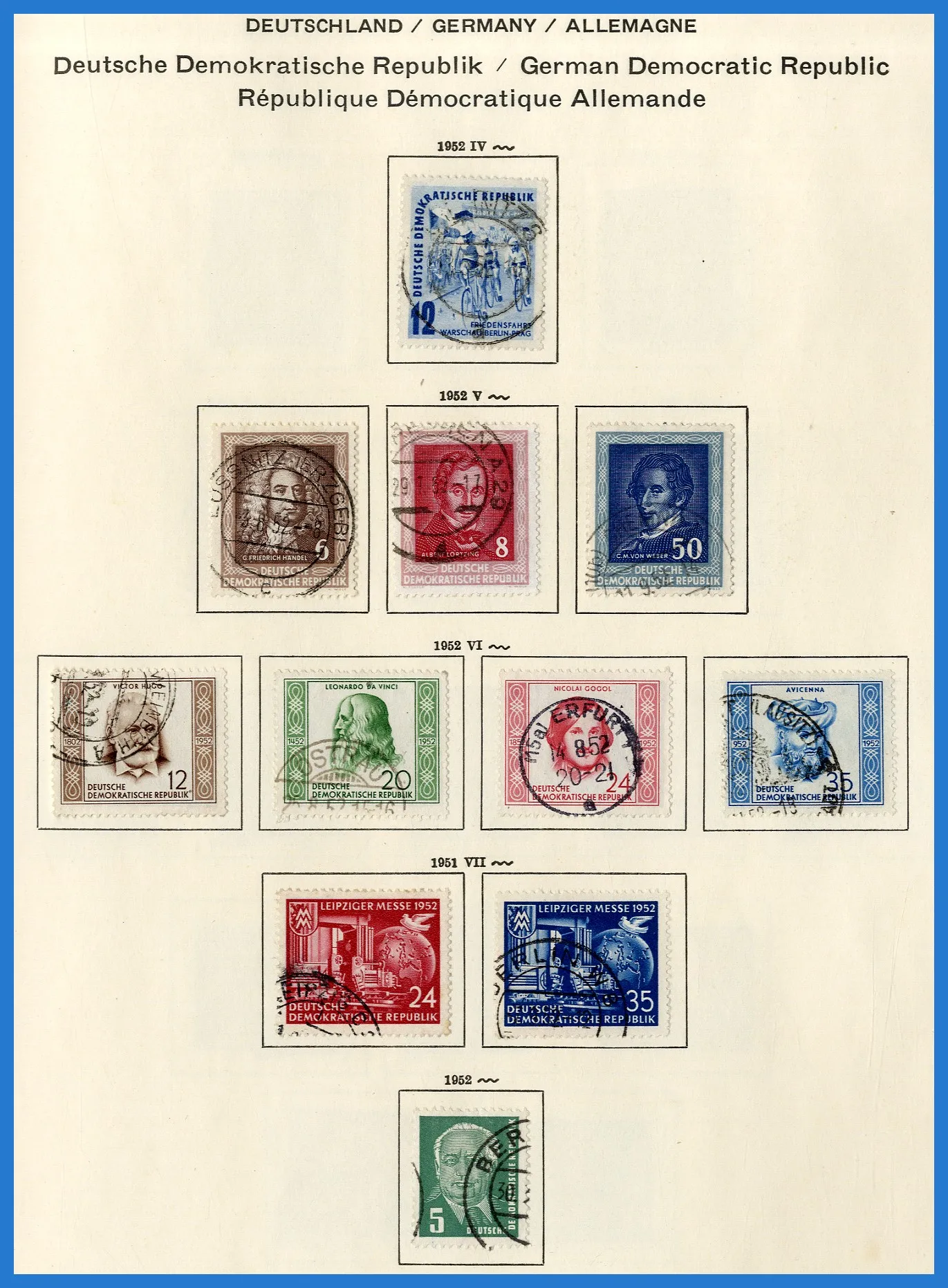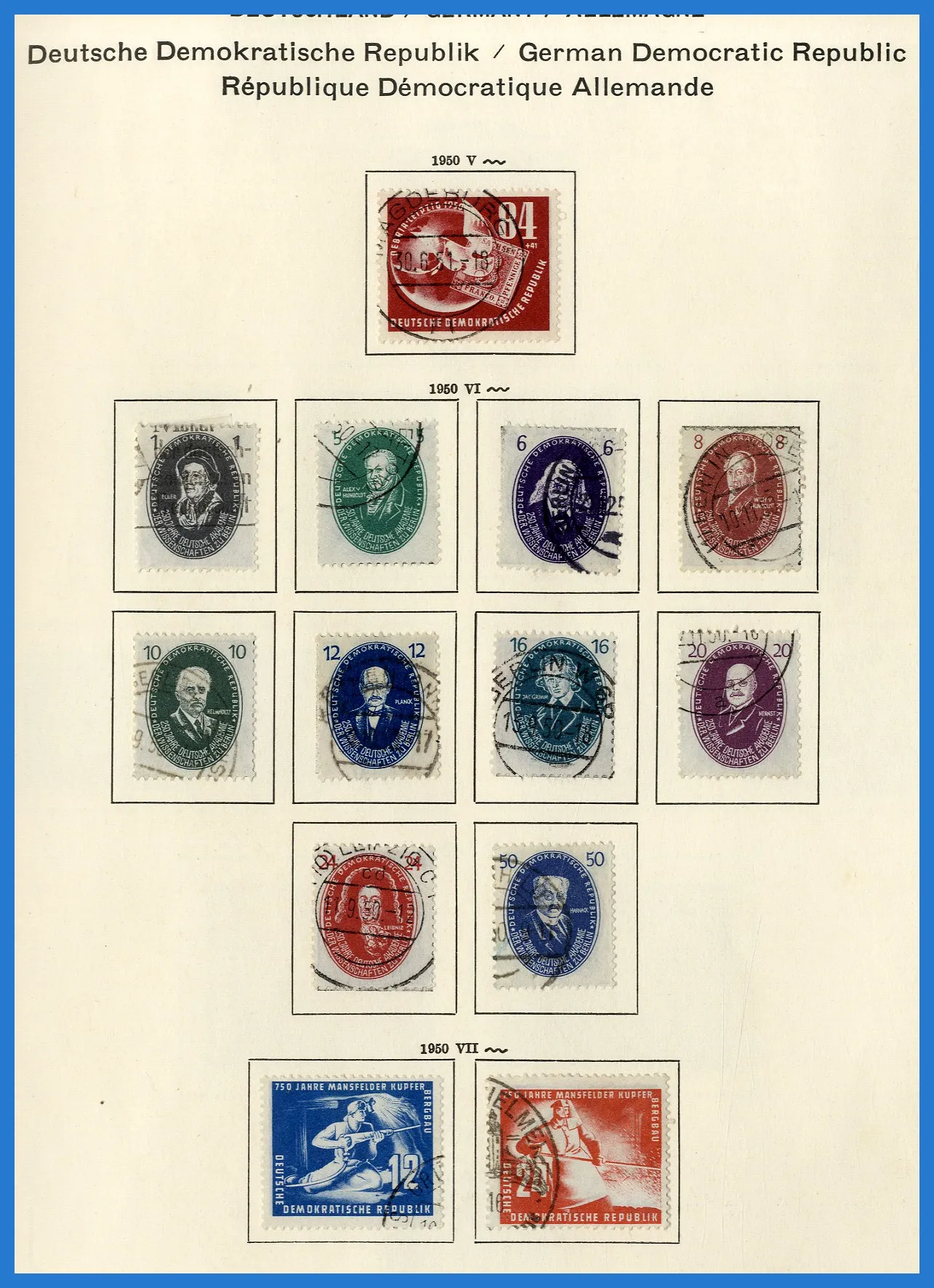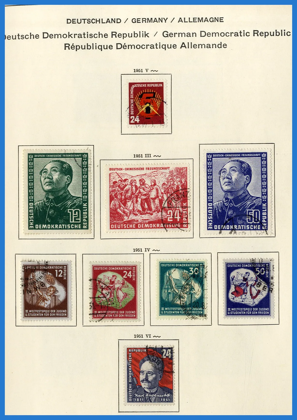 Schaubek-album. Samlingen inleds med lite ockupationsutgåvor (Sovjetiska zonen etc.), varpå följer en i det närmaste komplett samling DDR fram till 1980. Dock inga block och nästan inga tjänstefrimärken.