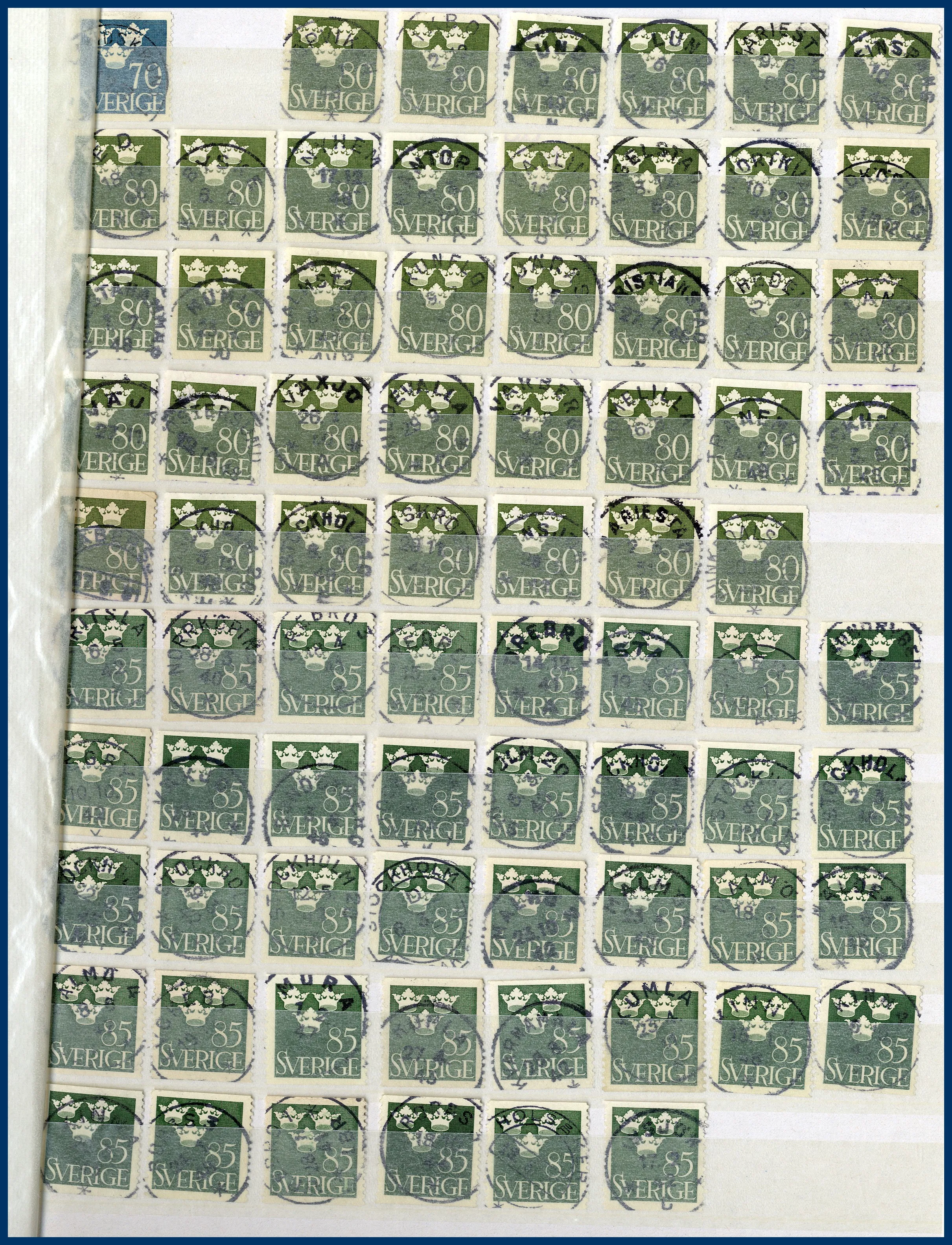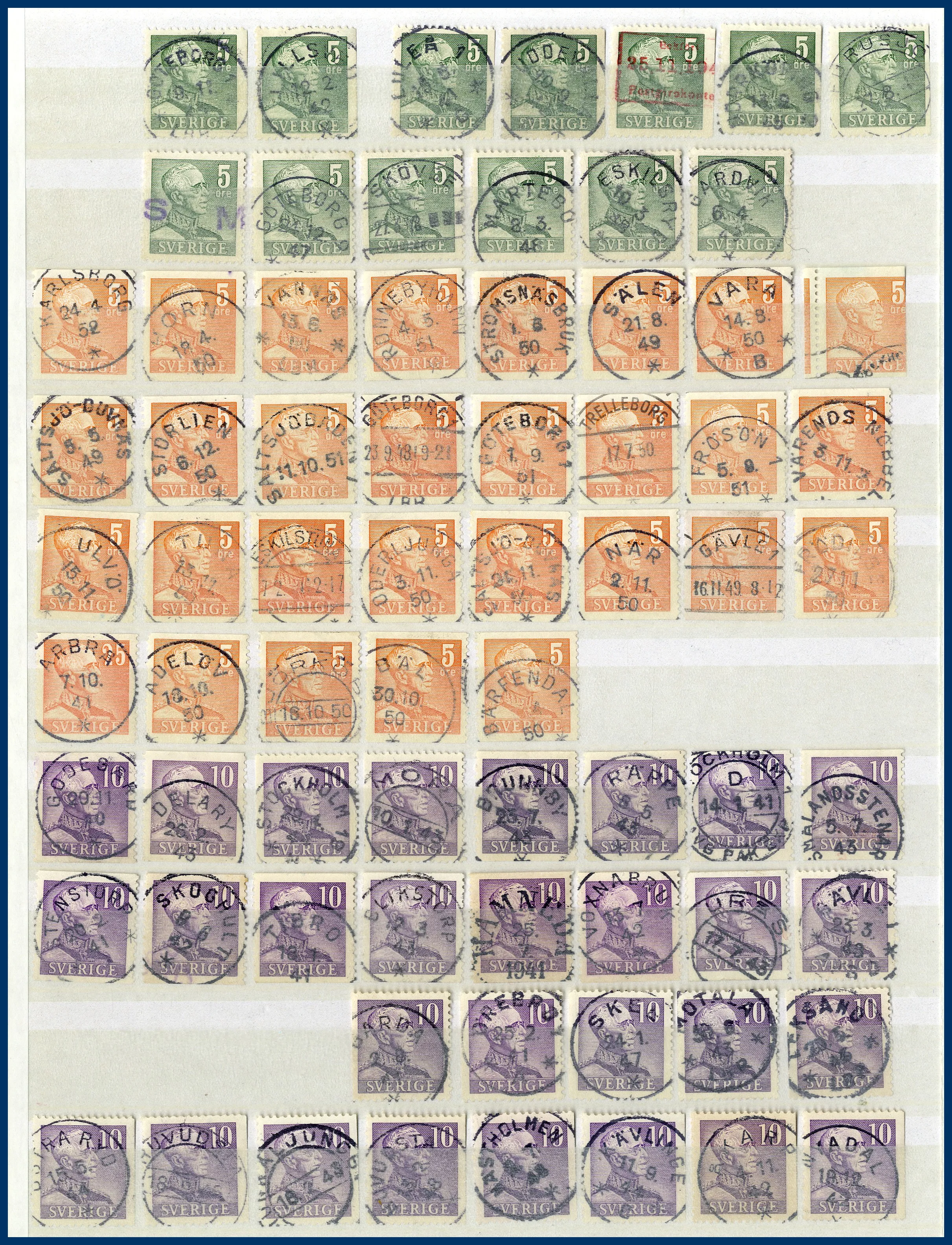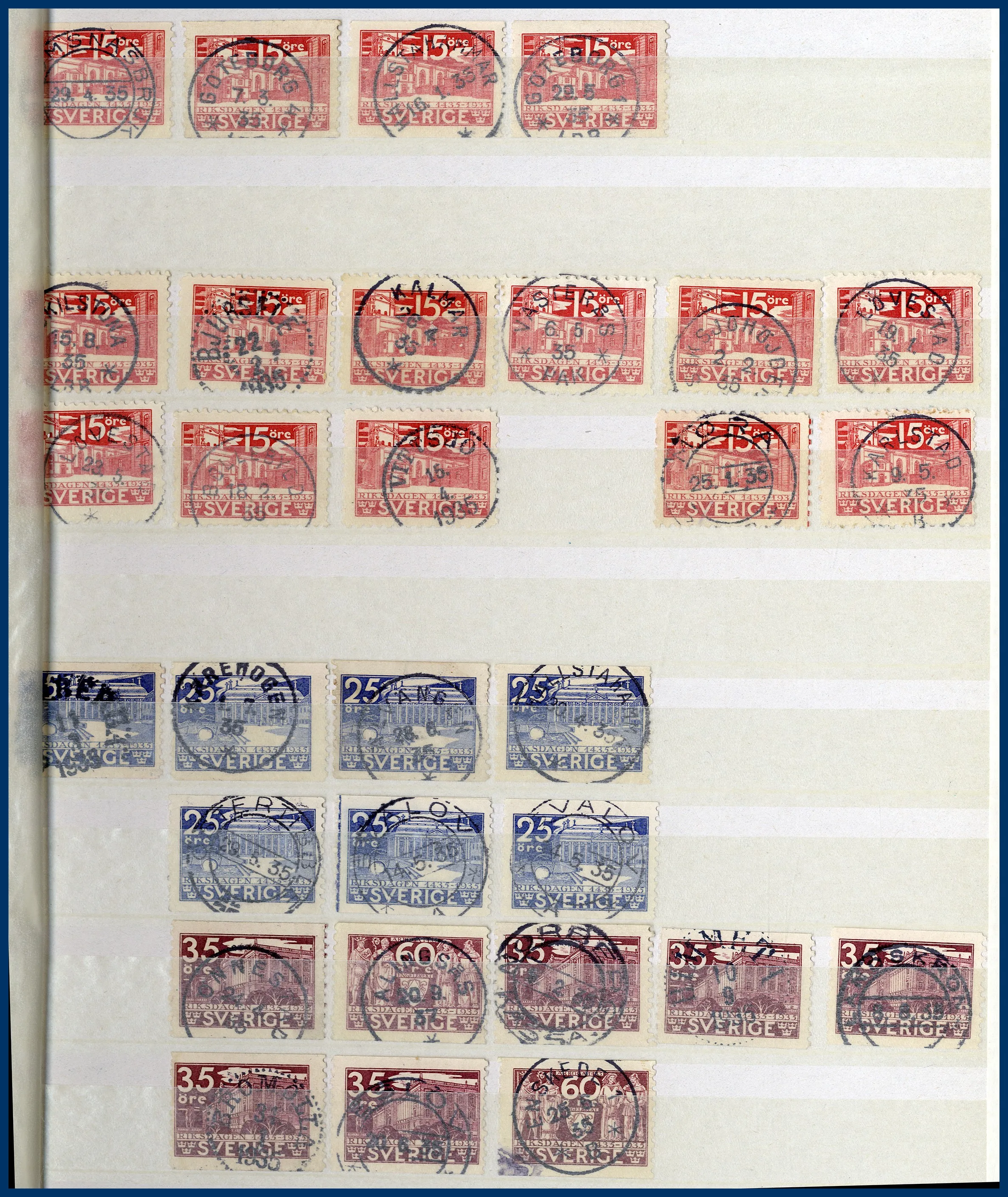 7. (D) Drygt 5.000 st ortsstämplar 1932-1987 i 4 välfyllda