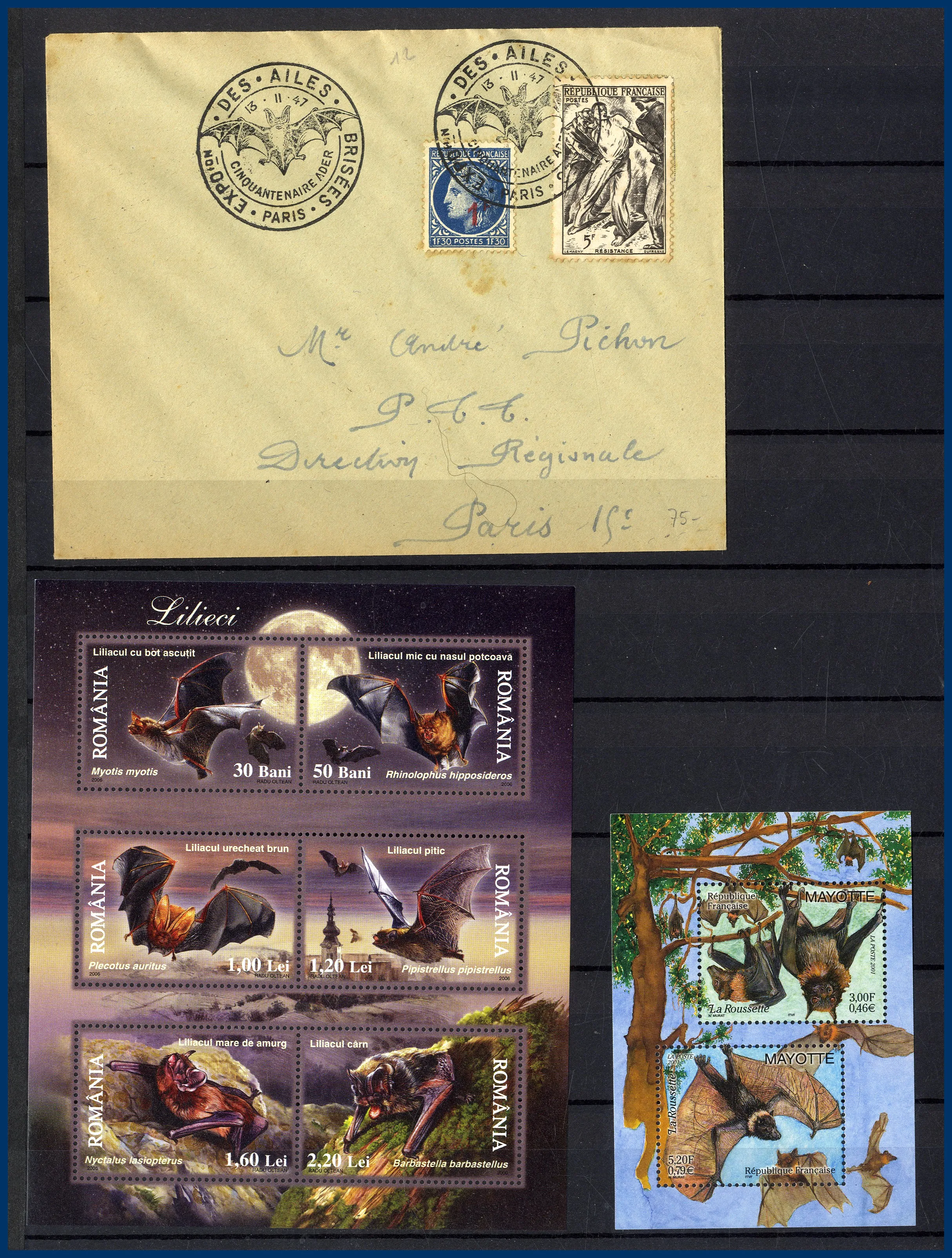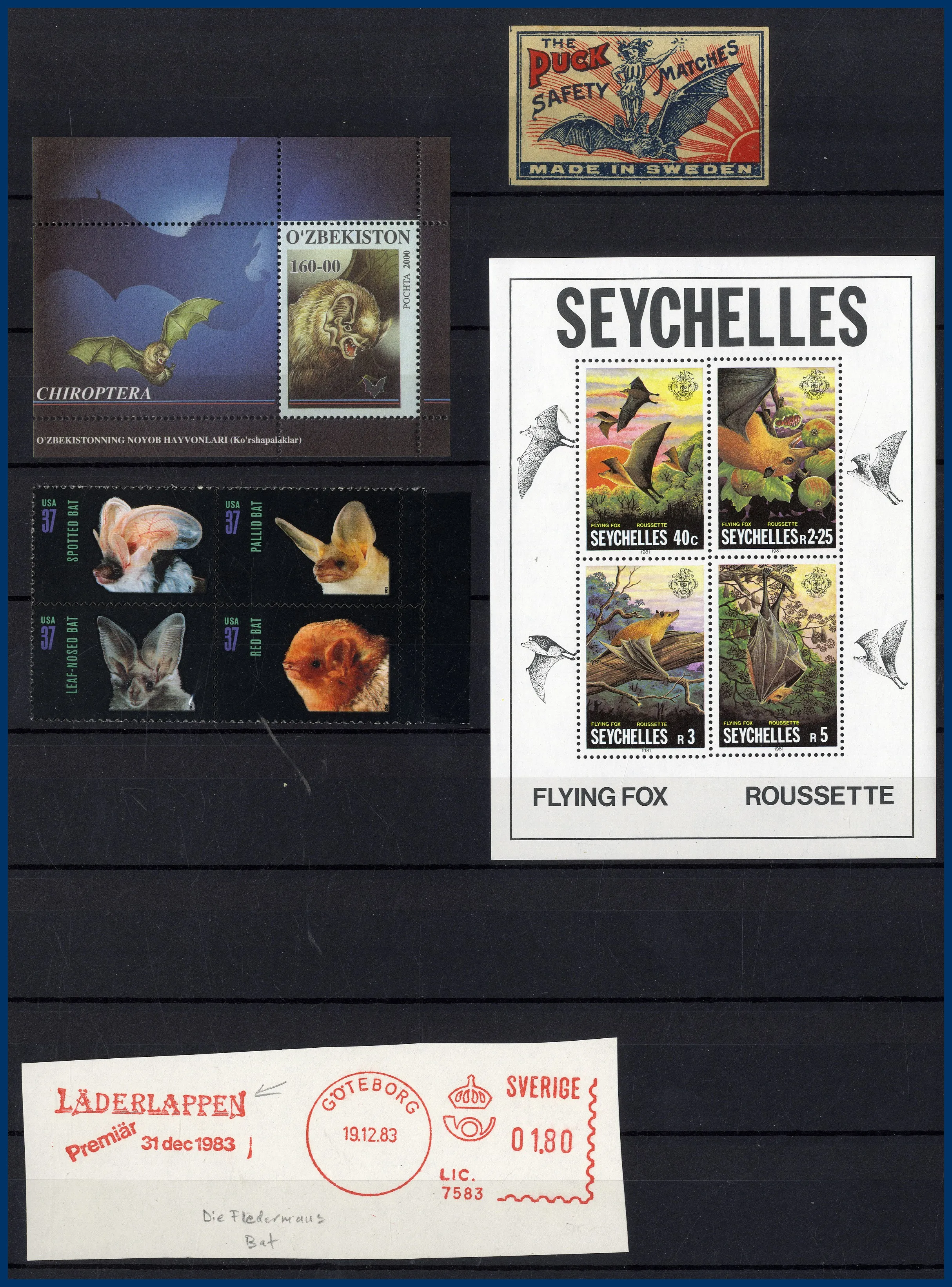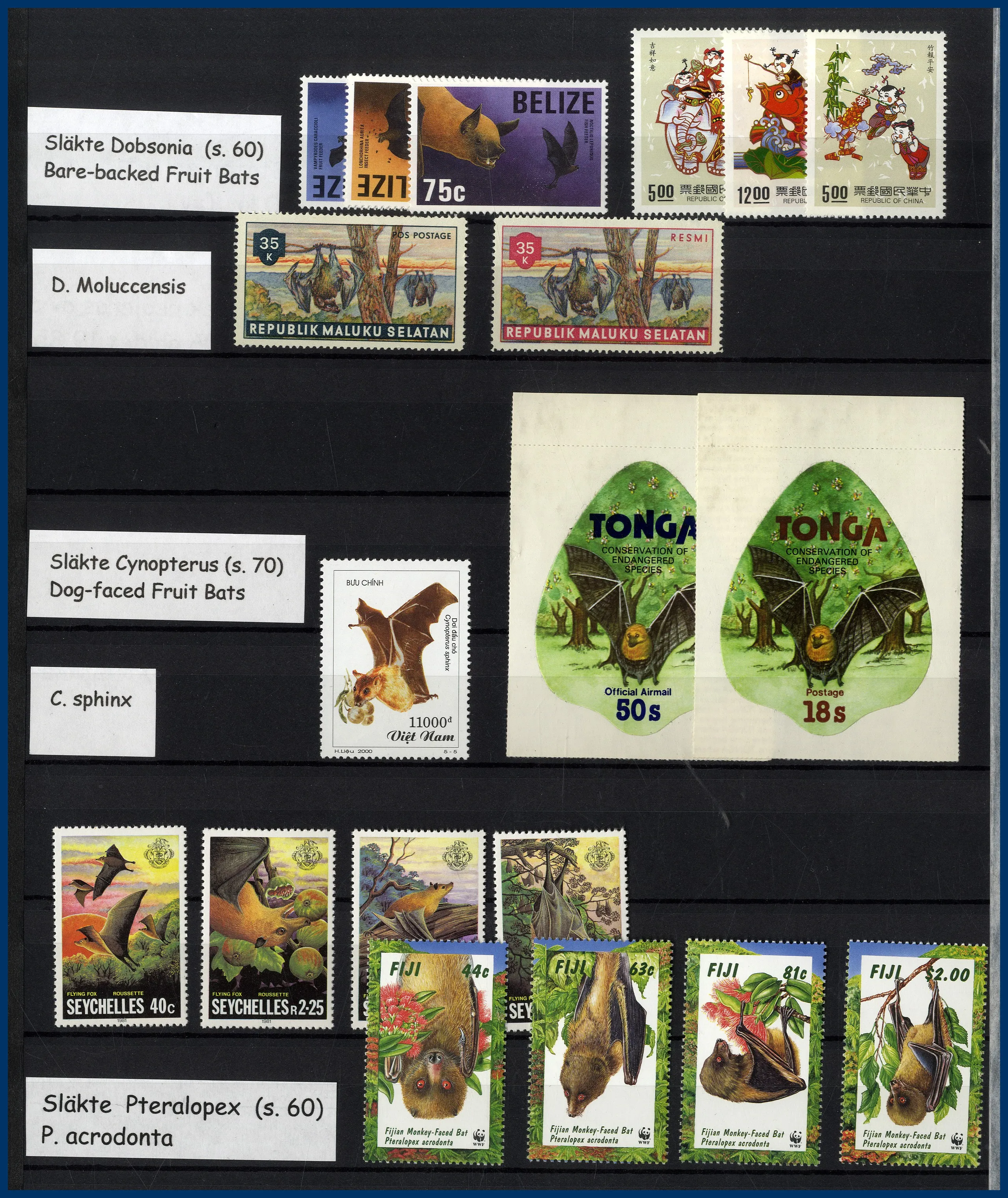 153. (D) Motivsamling Fladdermöss O/**/* med frimärken,
