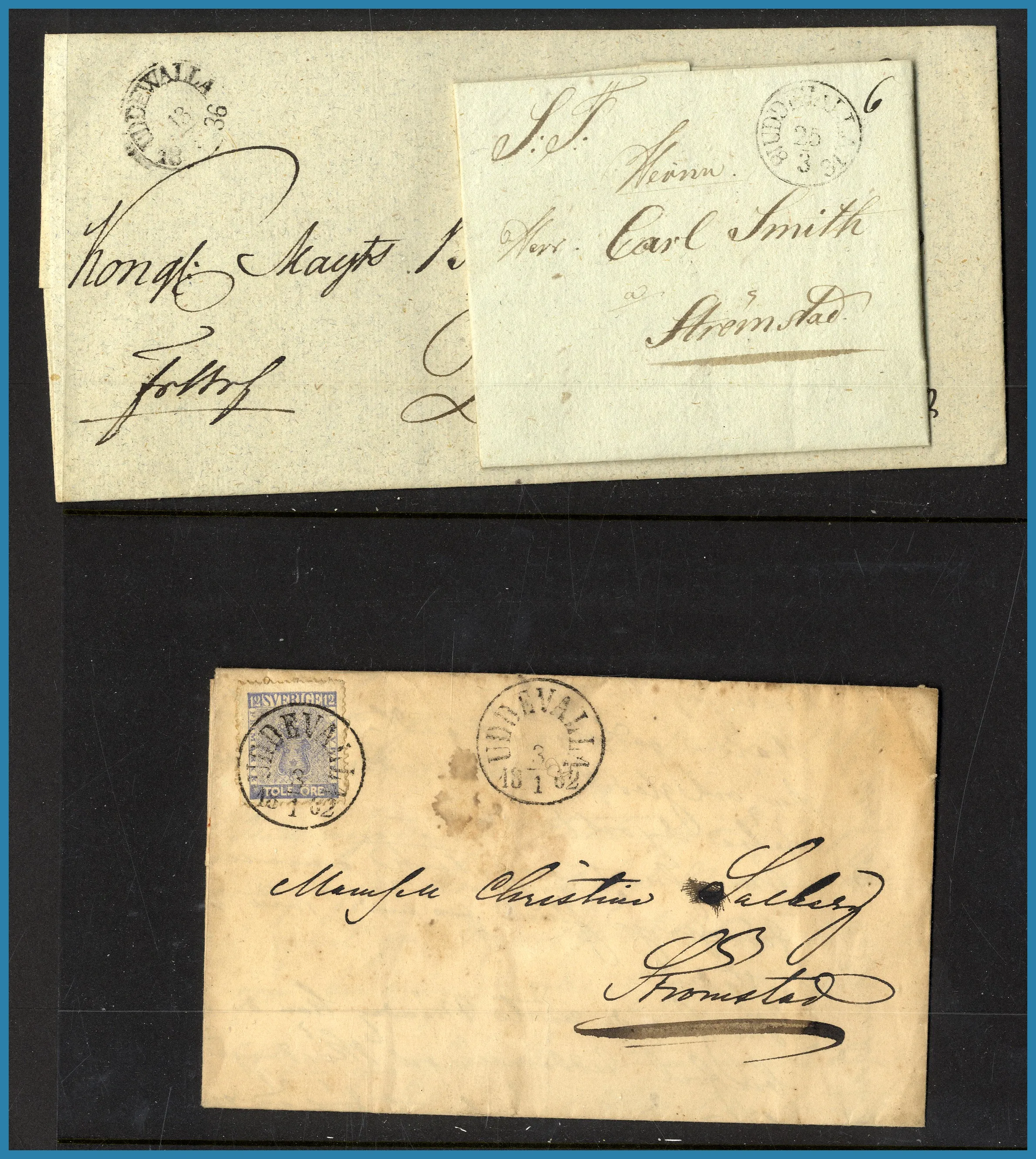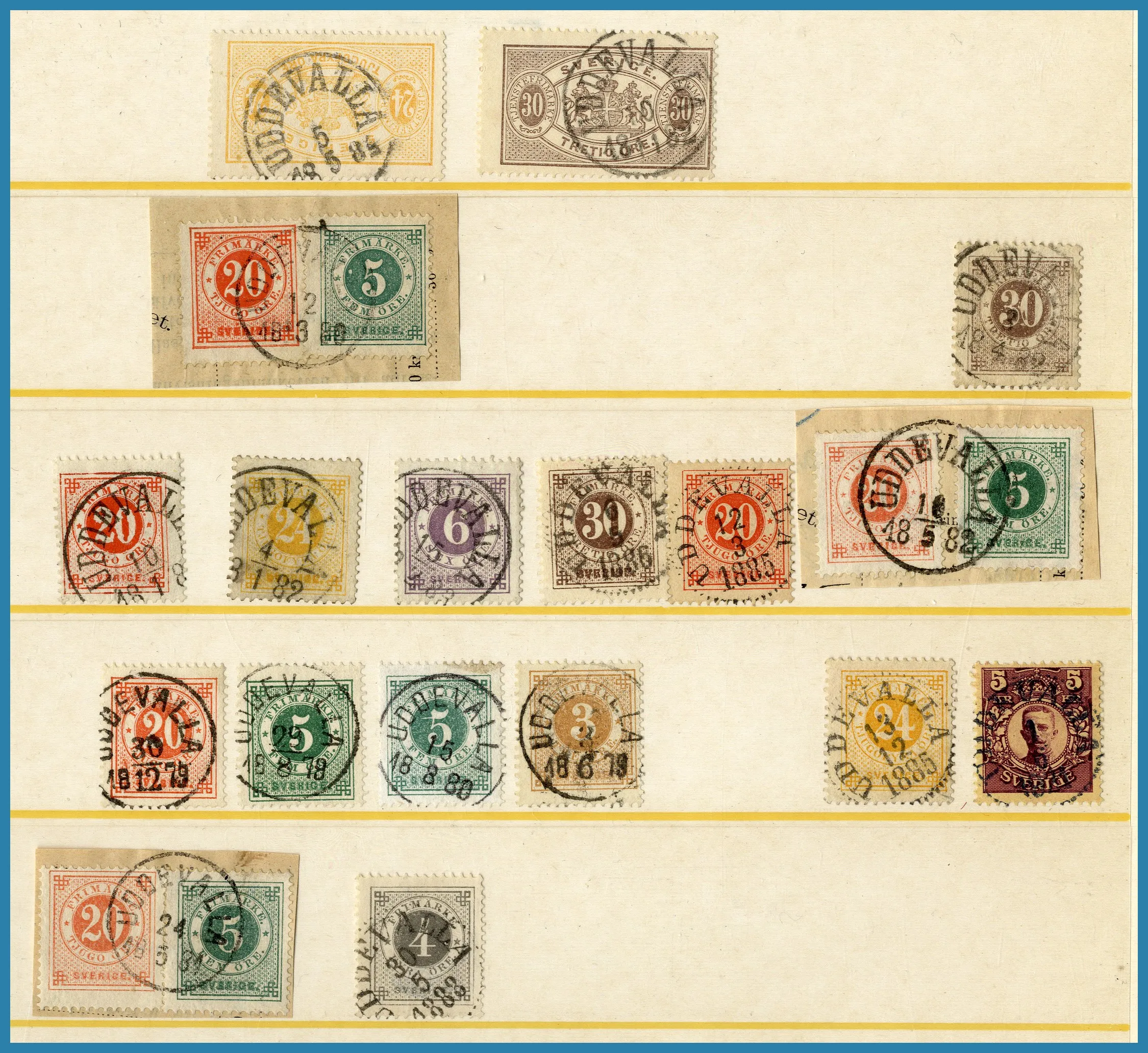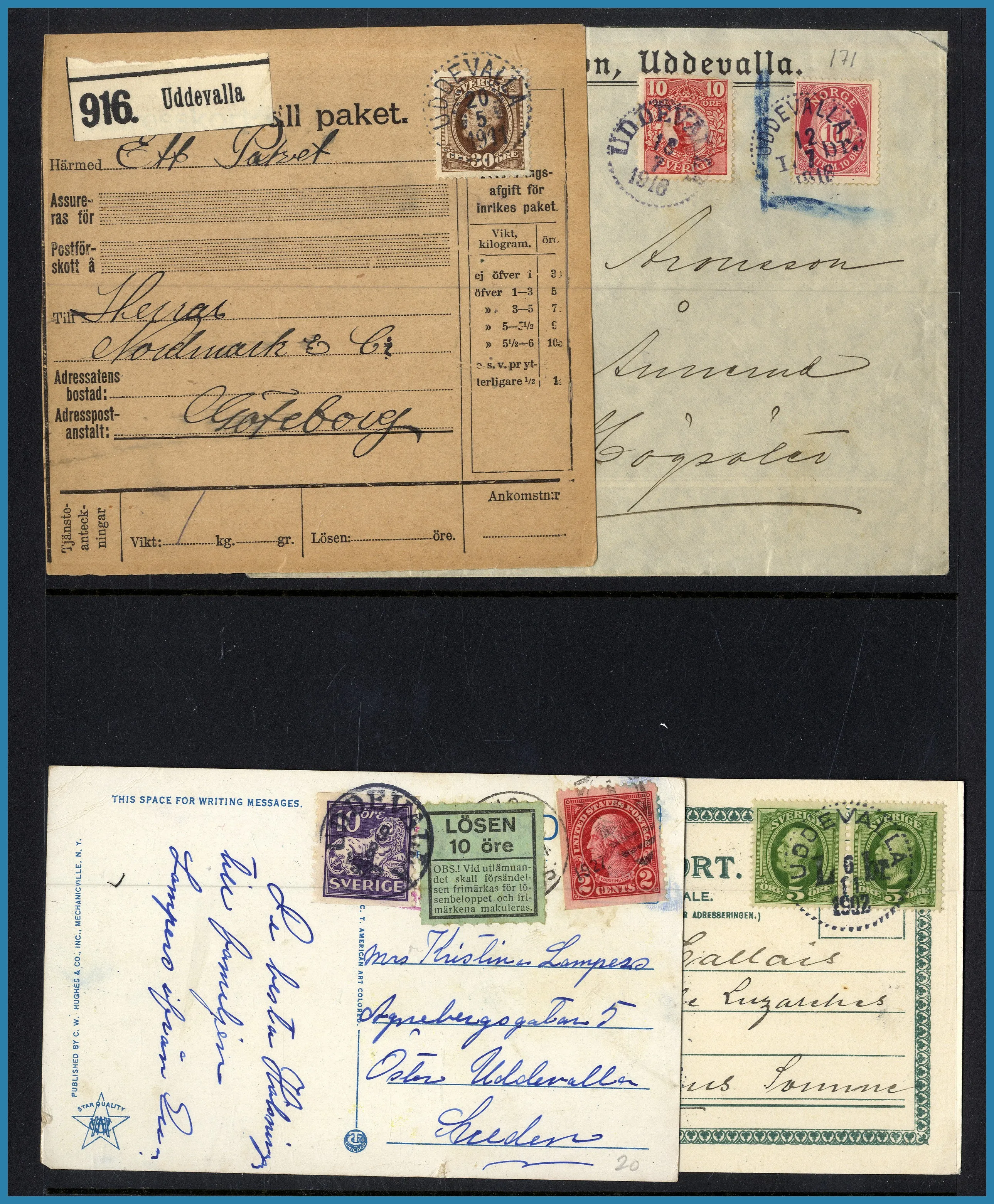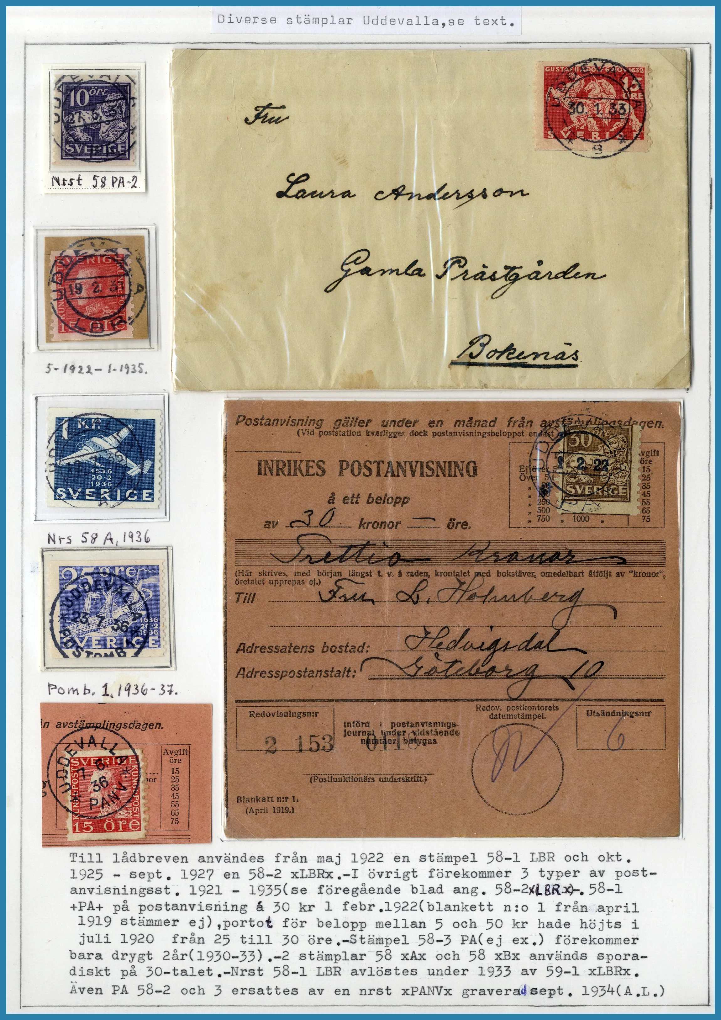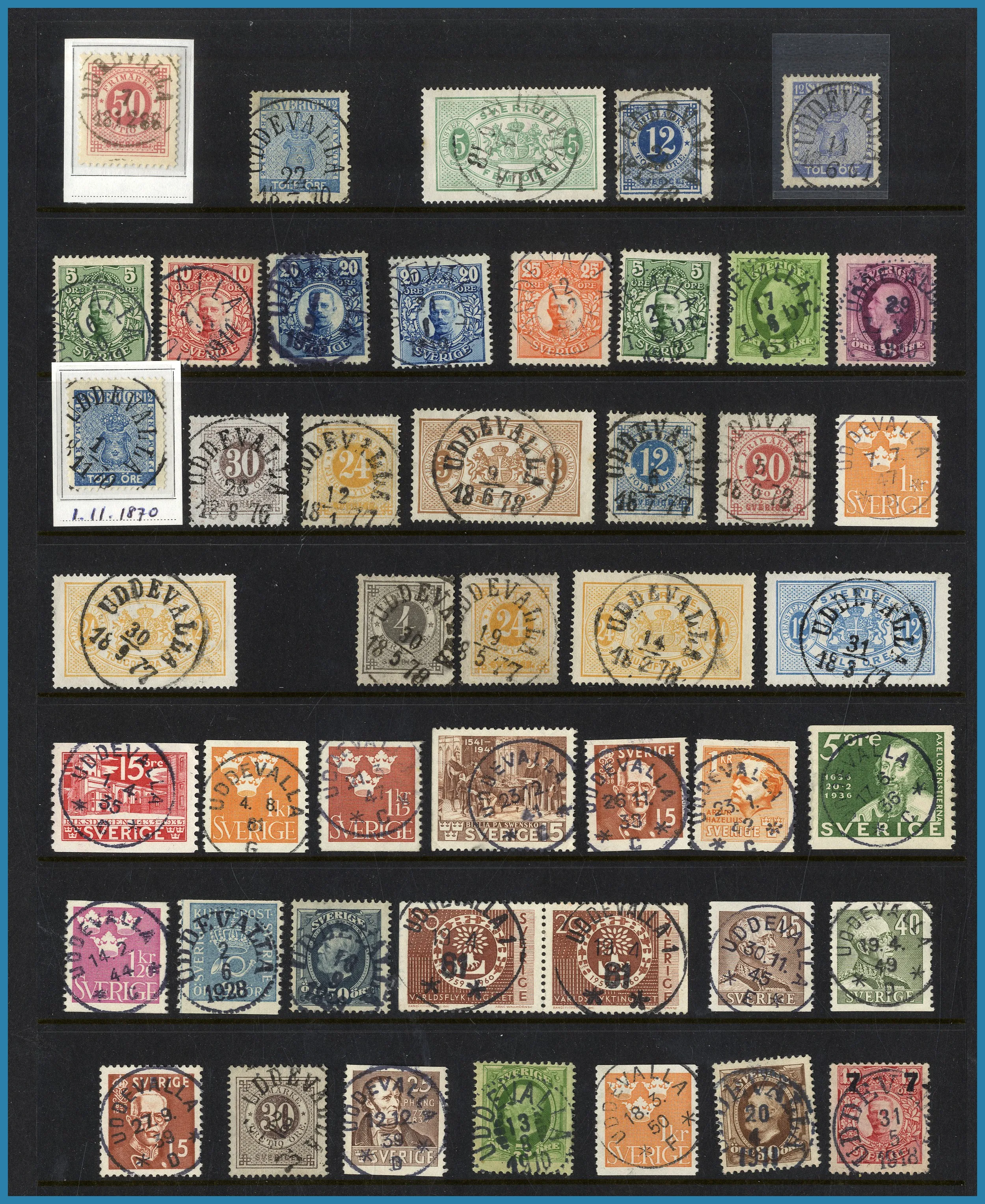 monterade blad i 1 album + extramaterial i ytterligare 2 album. Tillsammans ca 400 st märken och ca 210 st försändelser. Från förfilateli till modernt med många vackra stämplar.