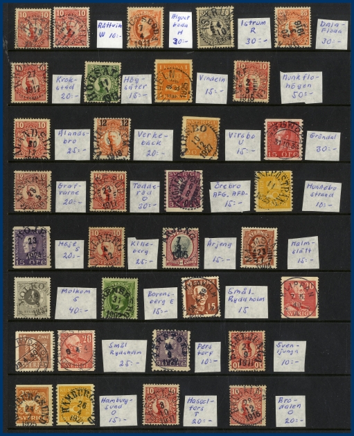 med ca 2.000 st stämplar Läsbart till LYX med några vanliga märken inemellan. Delvis prismärkt med försäljningspriser.