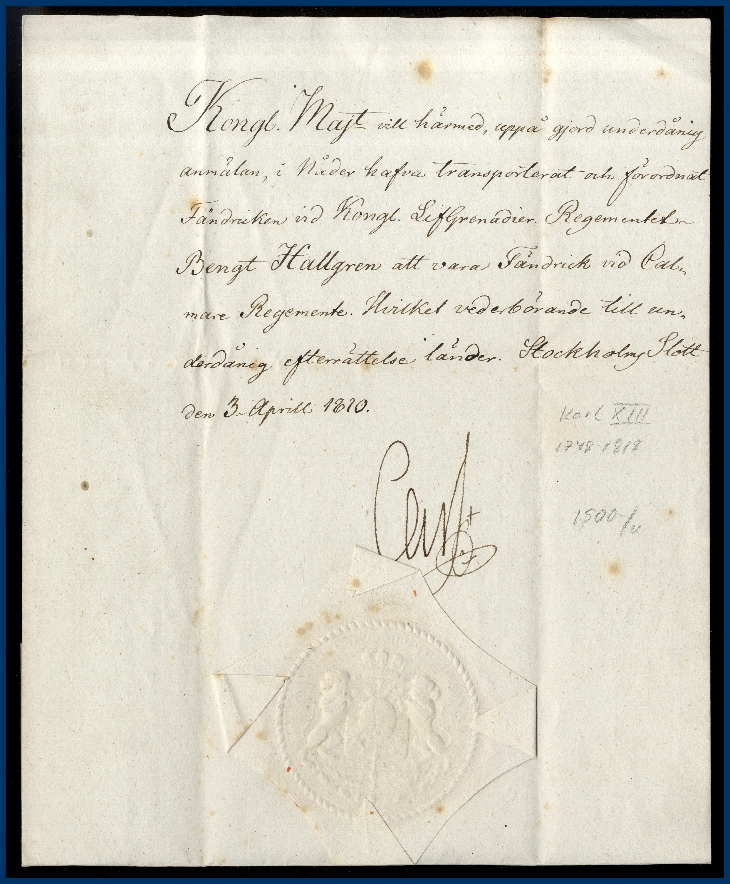 51. (D) Samling 15 st dokument signerade av svenska kungar.