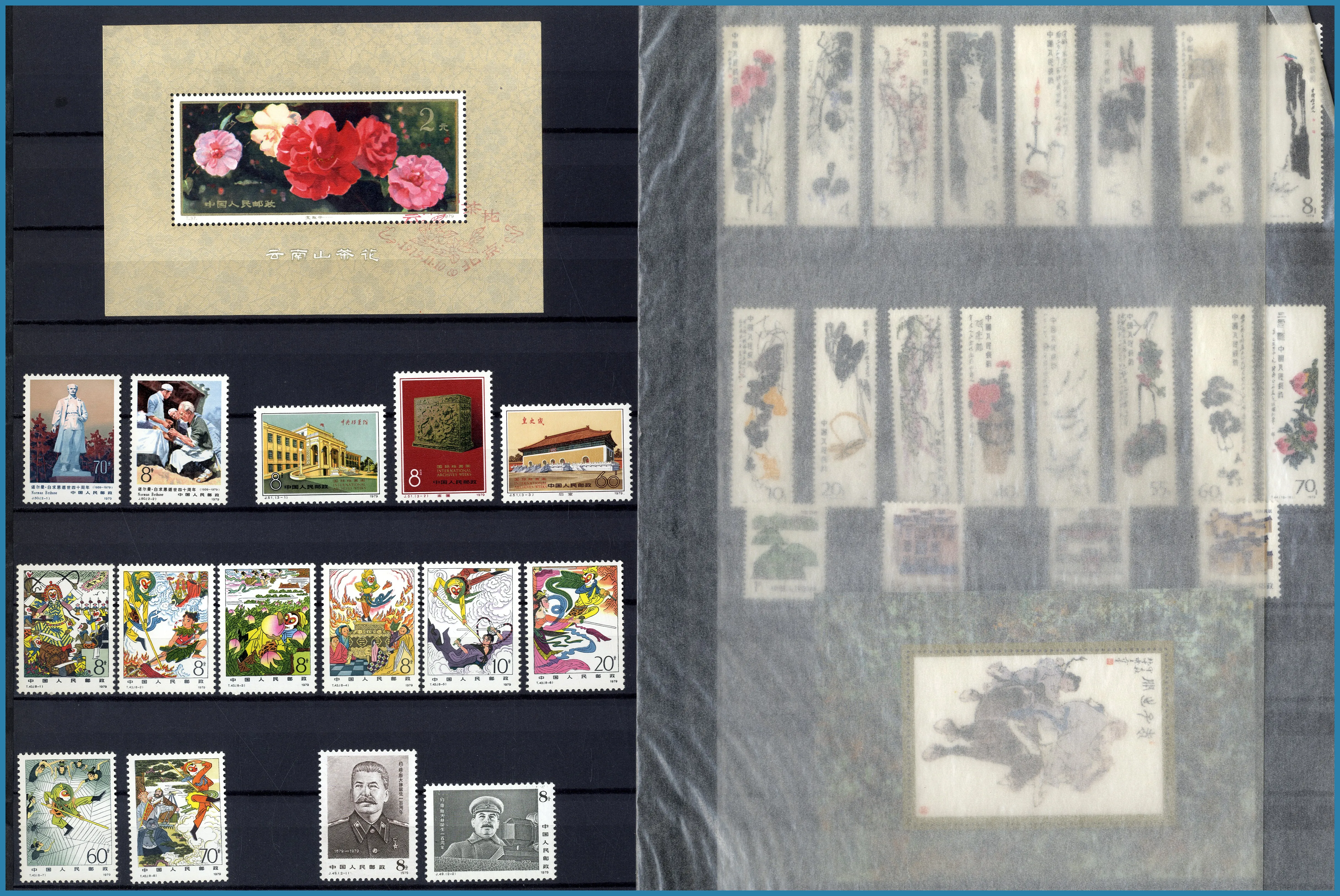 välfyllda insticksalbum med enstaka stämplade märken inemellan. Många bättre märken och block med höga katalogvärden.