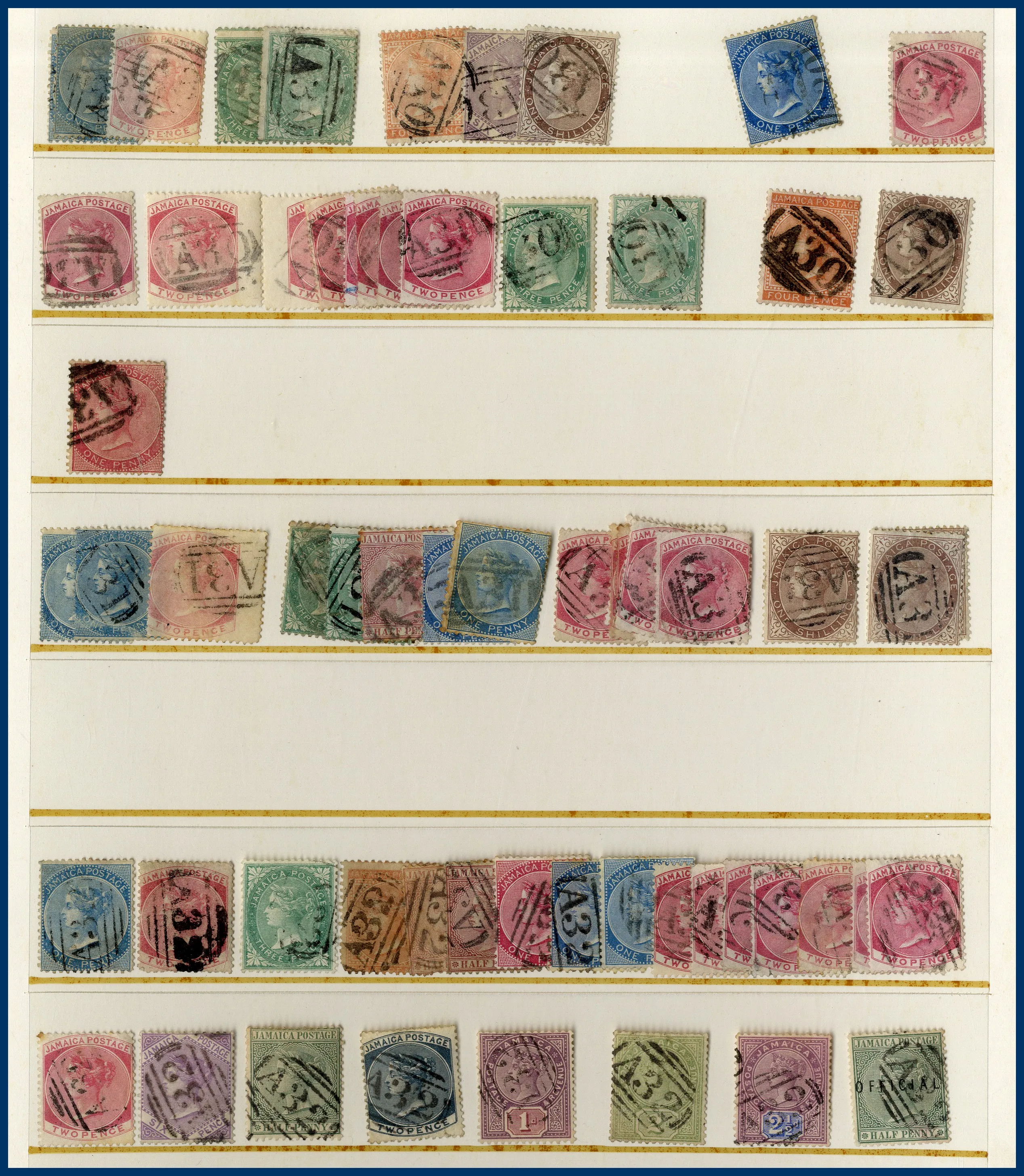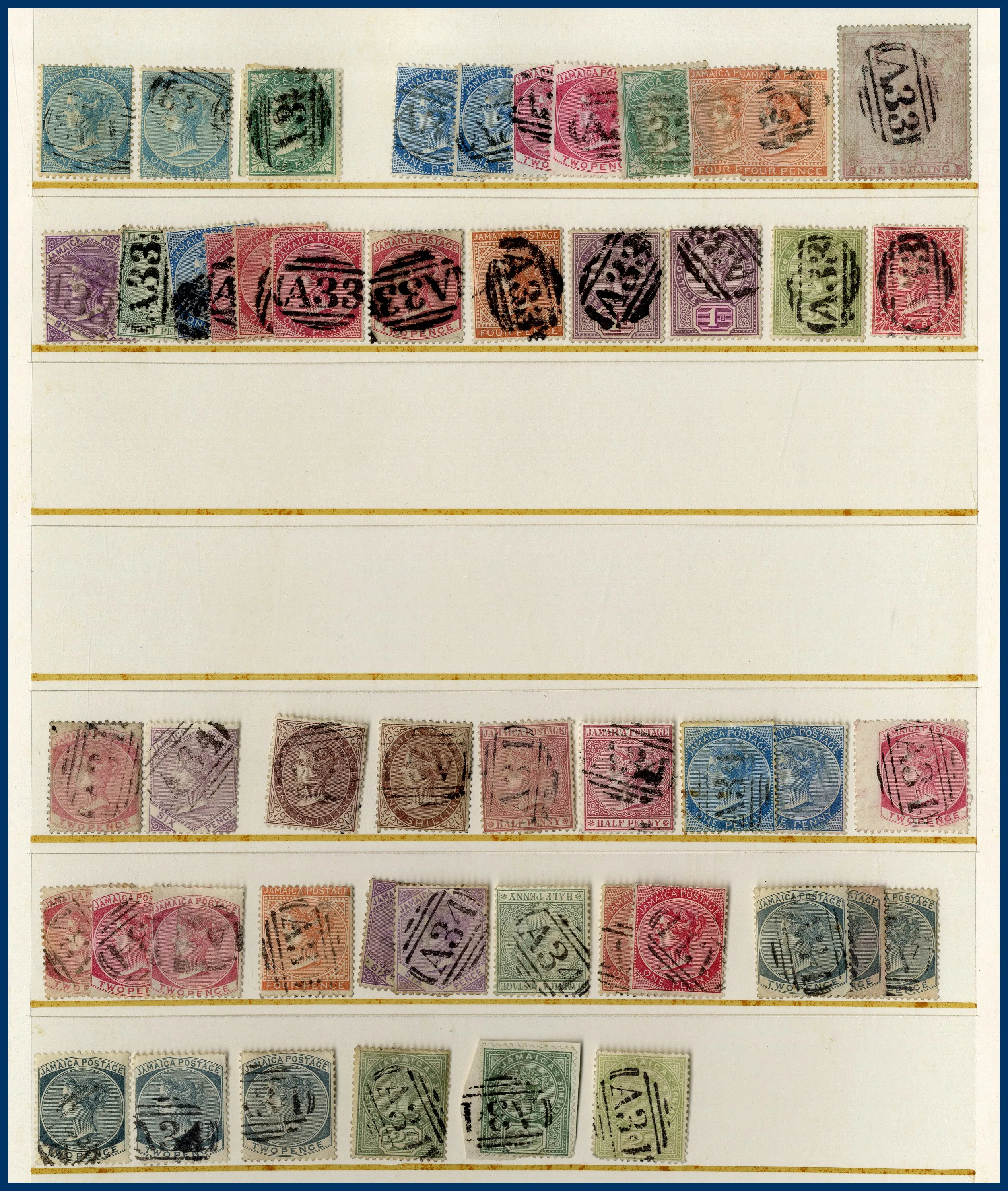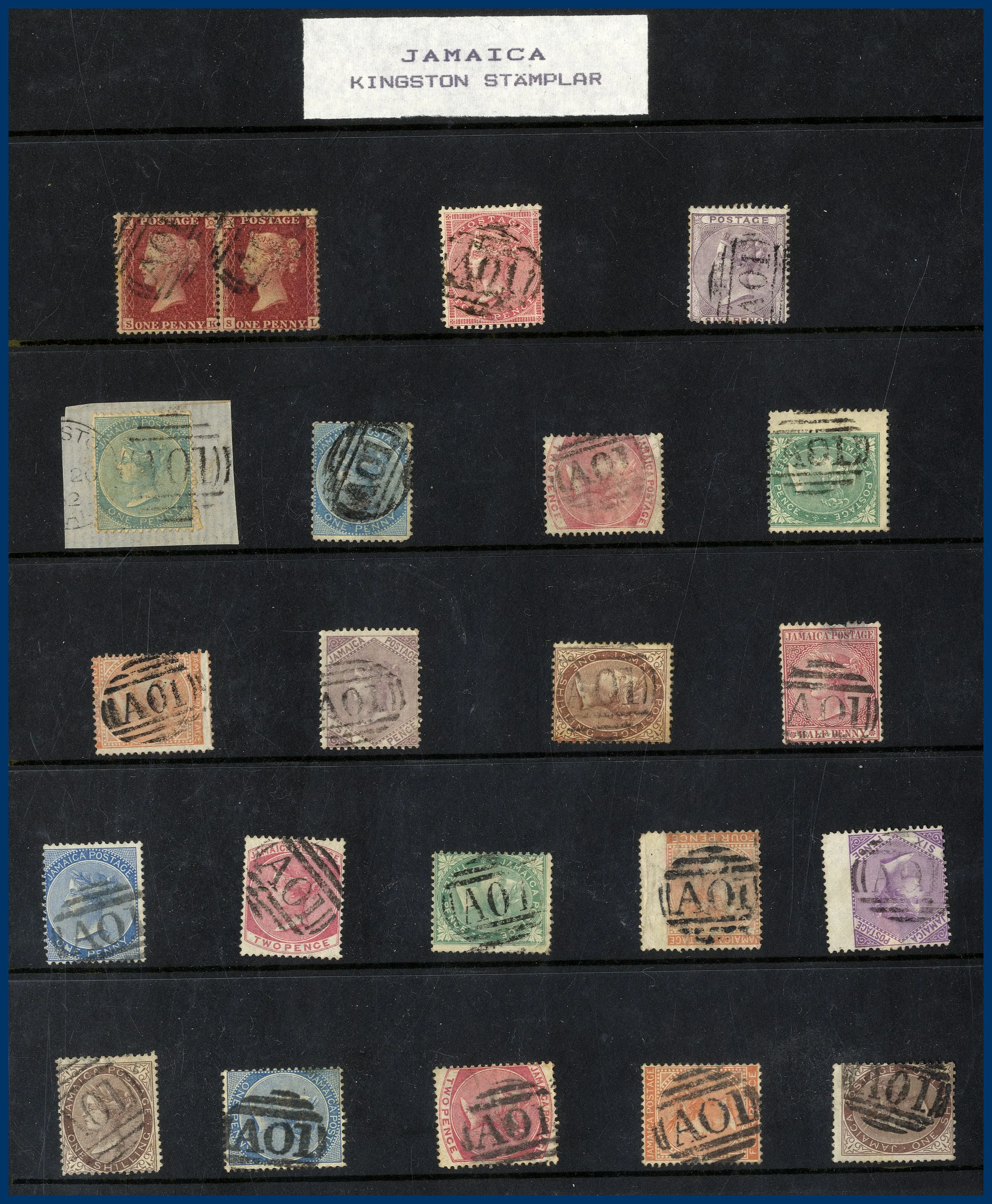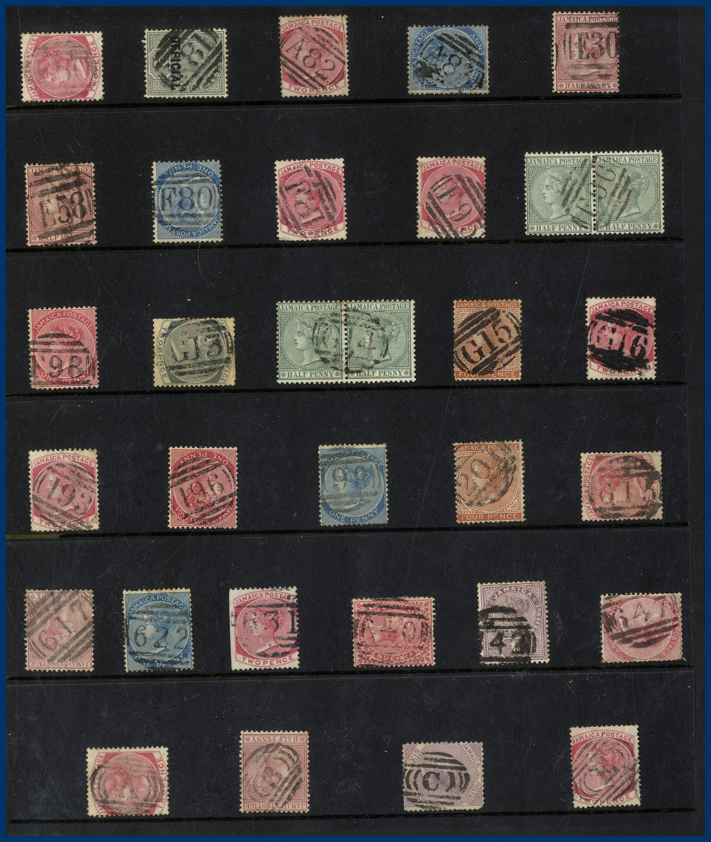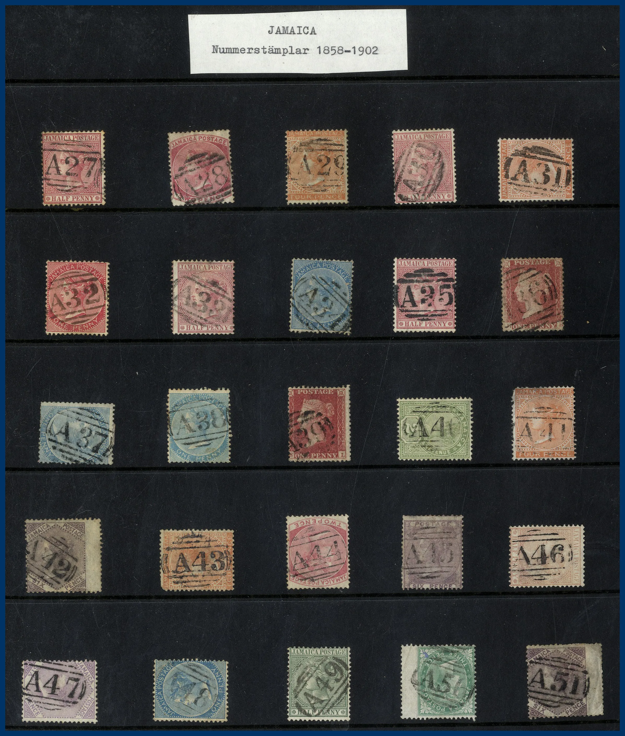 142. (D) Samling Jamaica nummerstämplar 1858-1902 från
