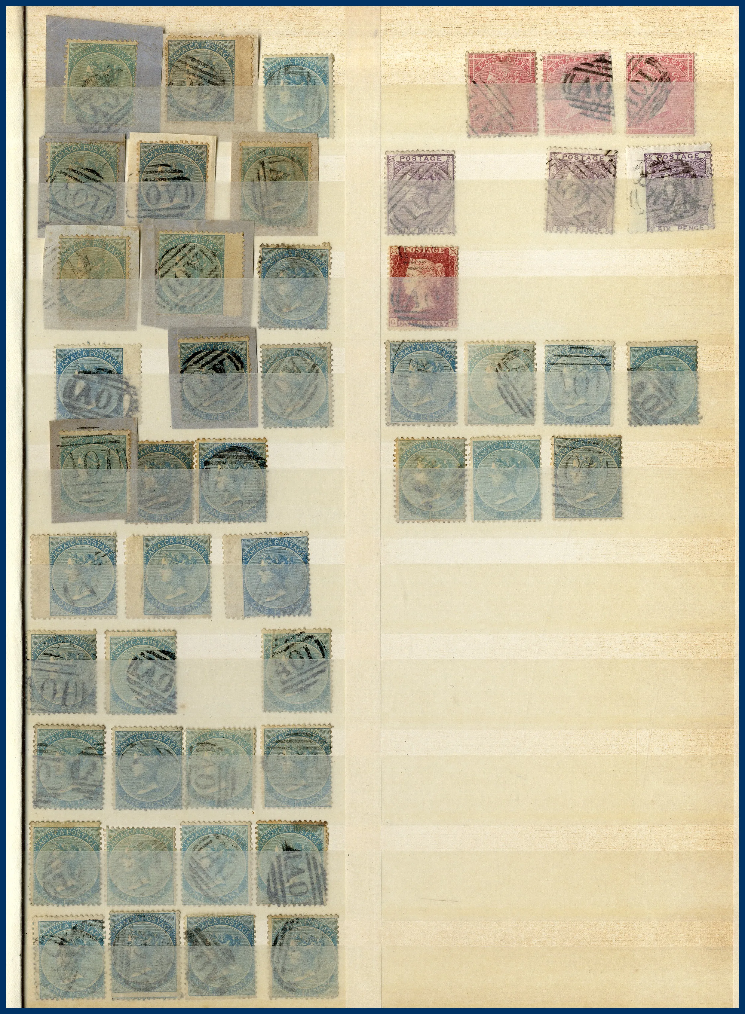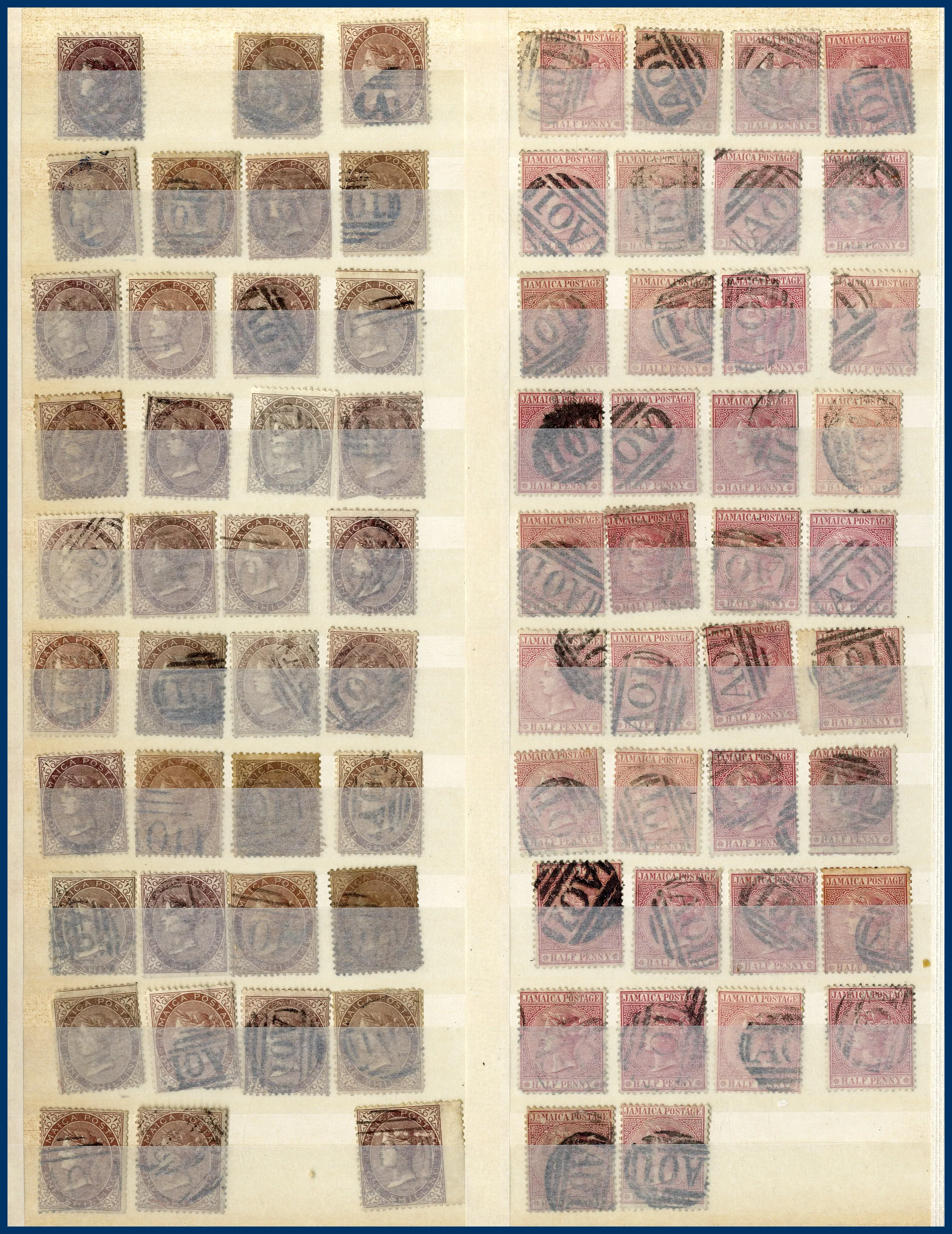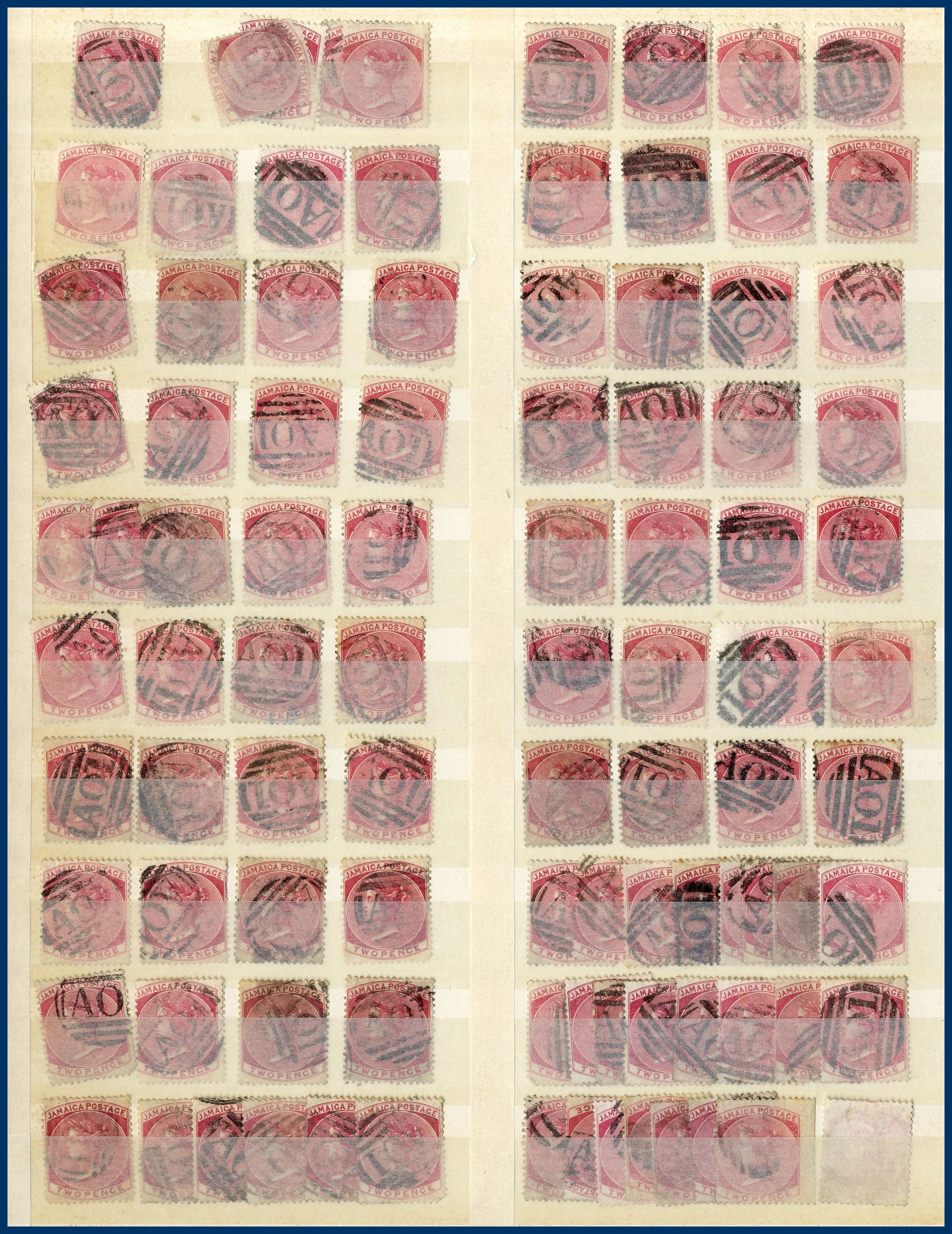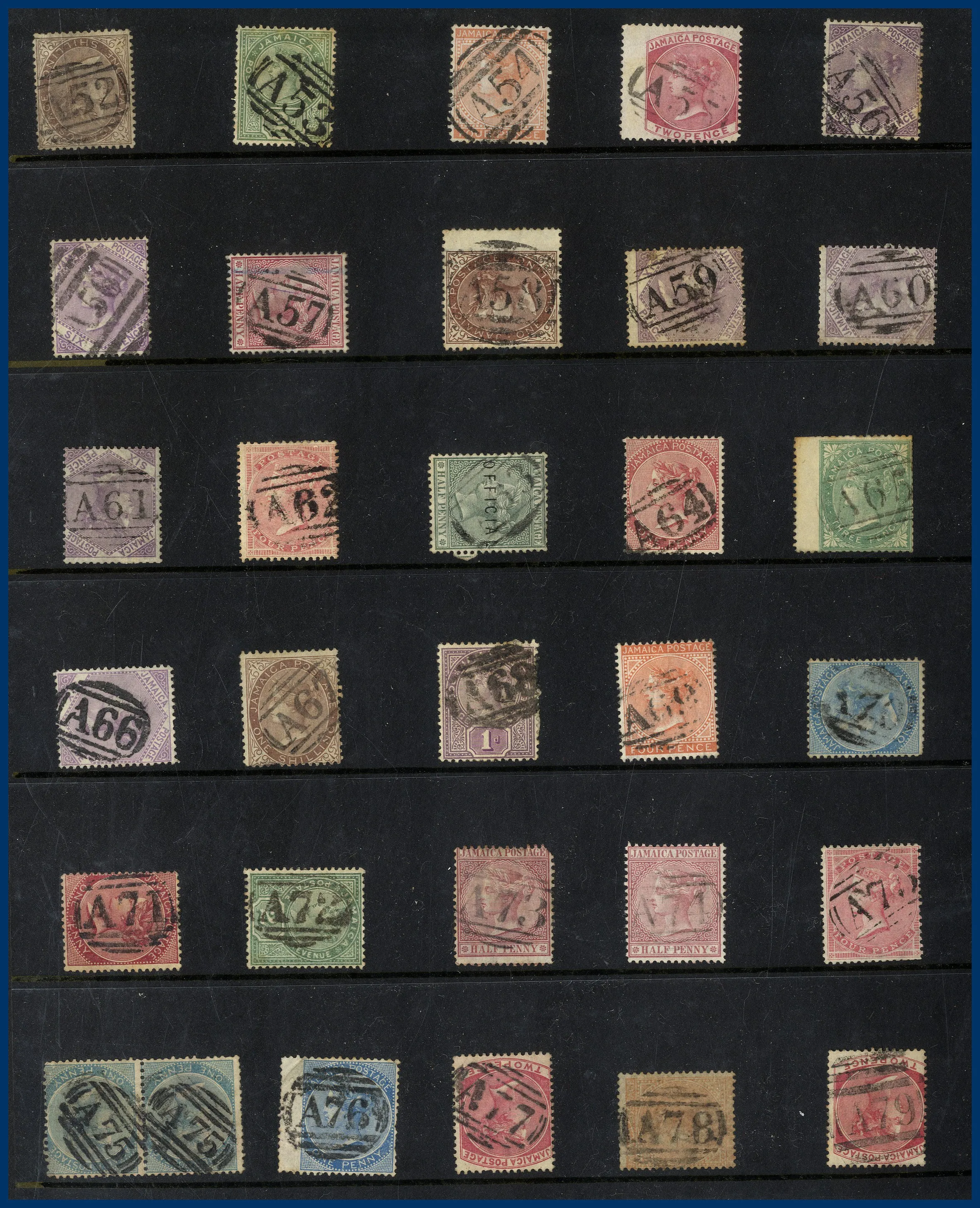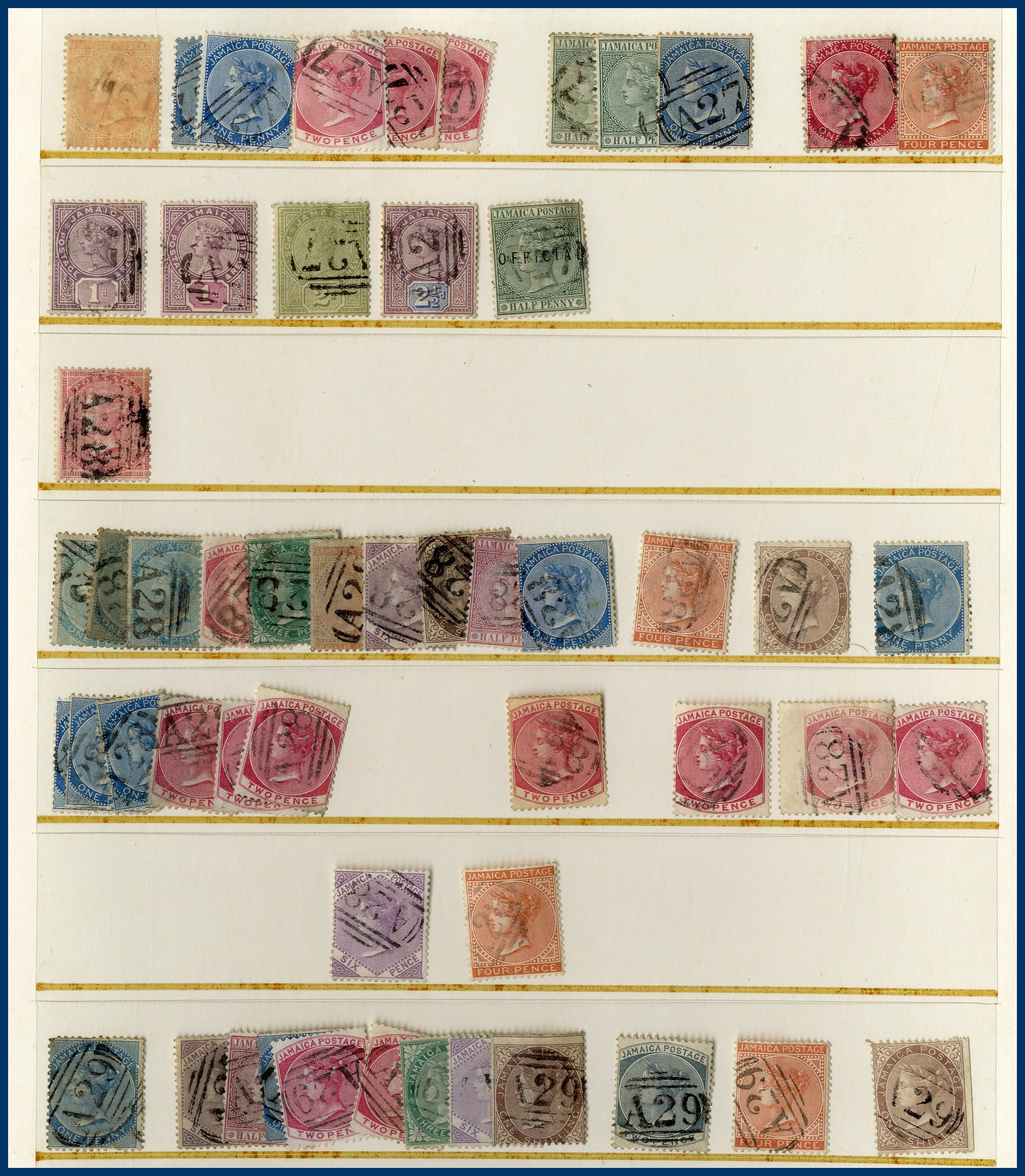 142. (D) Samling Jamaica nummerstämplar 1858-1902 från