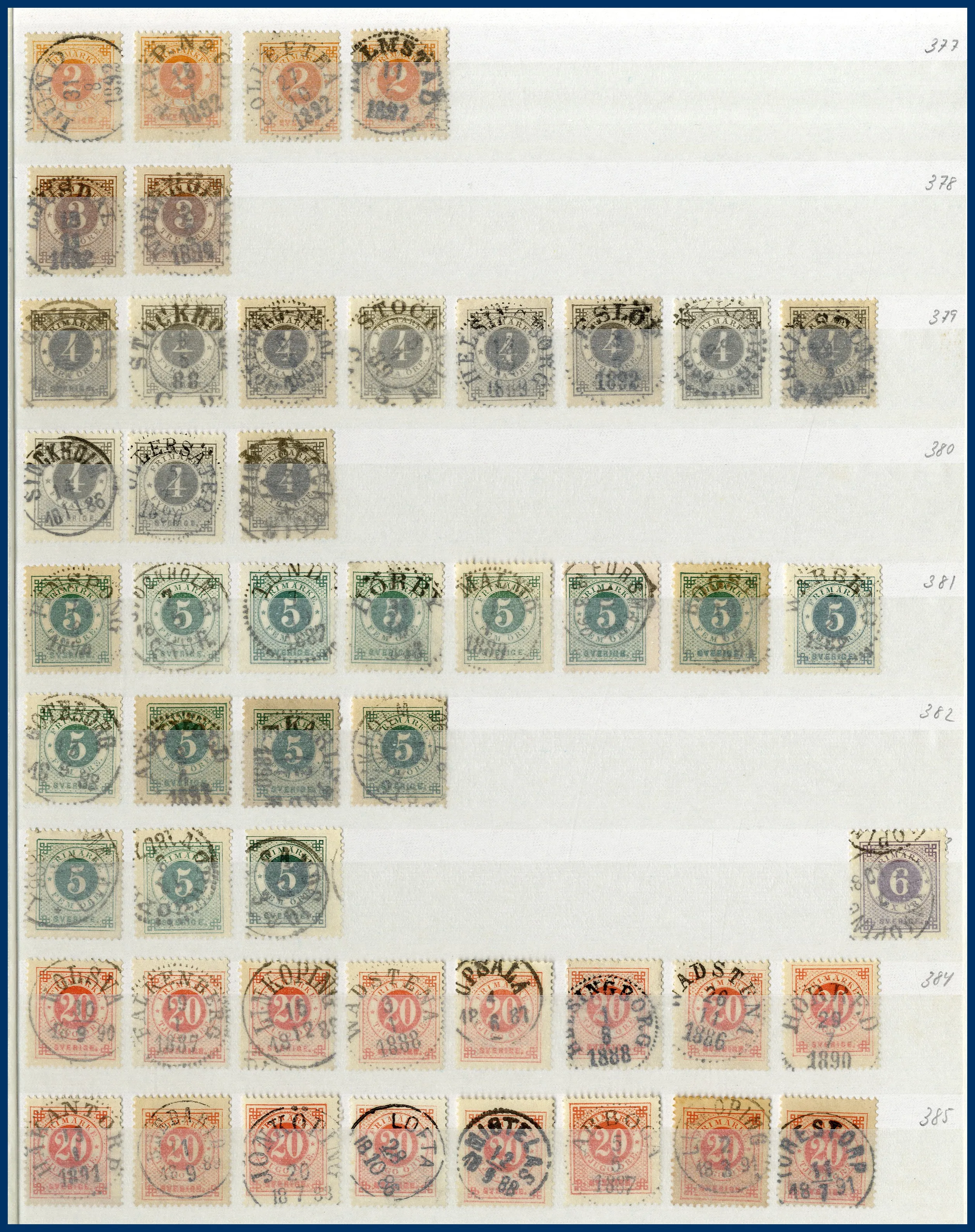 441. (D) Samling klassiskt Sverige stämplat från 5x4 Skilling,