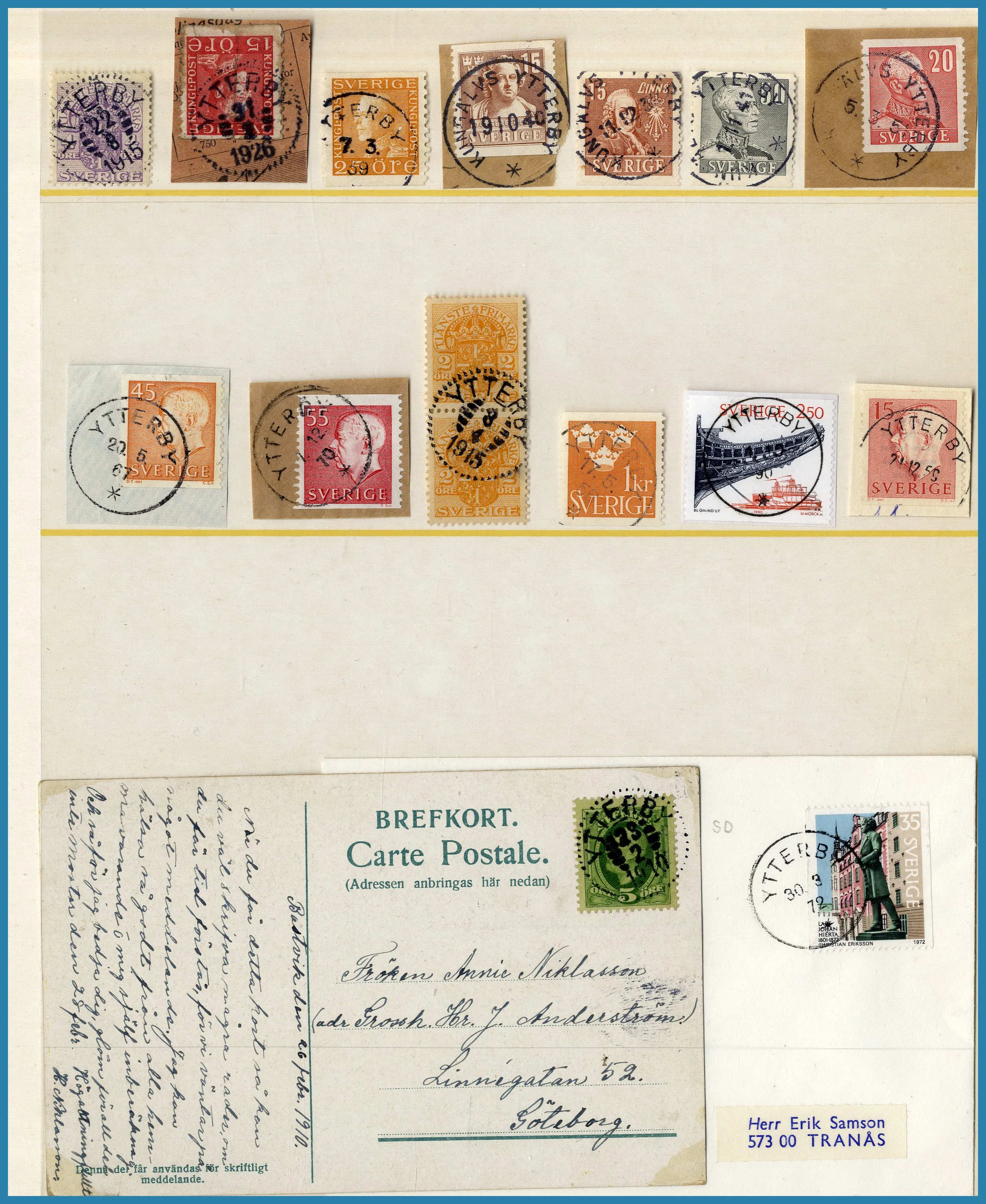 i visiralbum med ca 210 st märken och ca 80 st försändelser. Många vackra stämplar med lite klipp inemellan.
