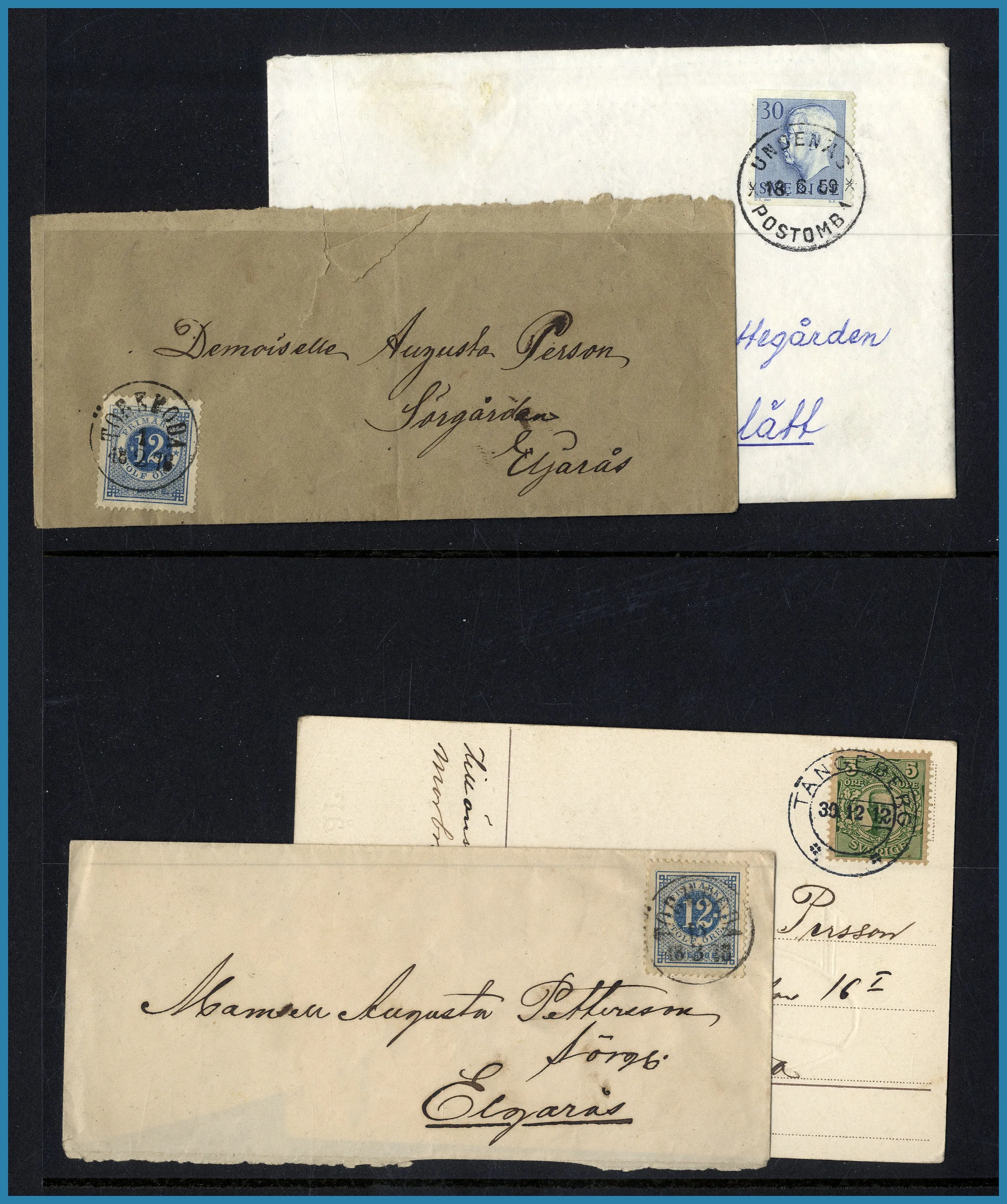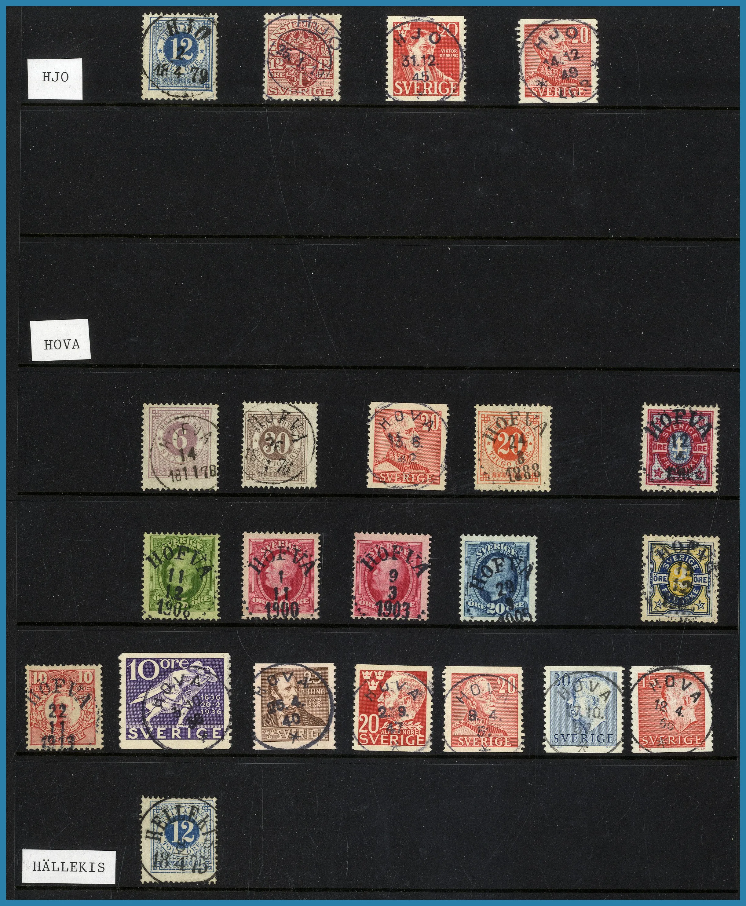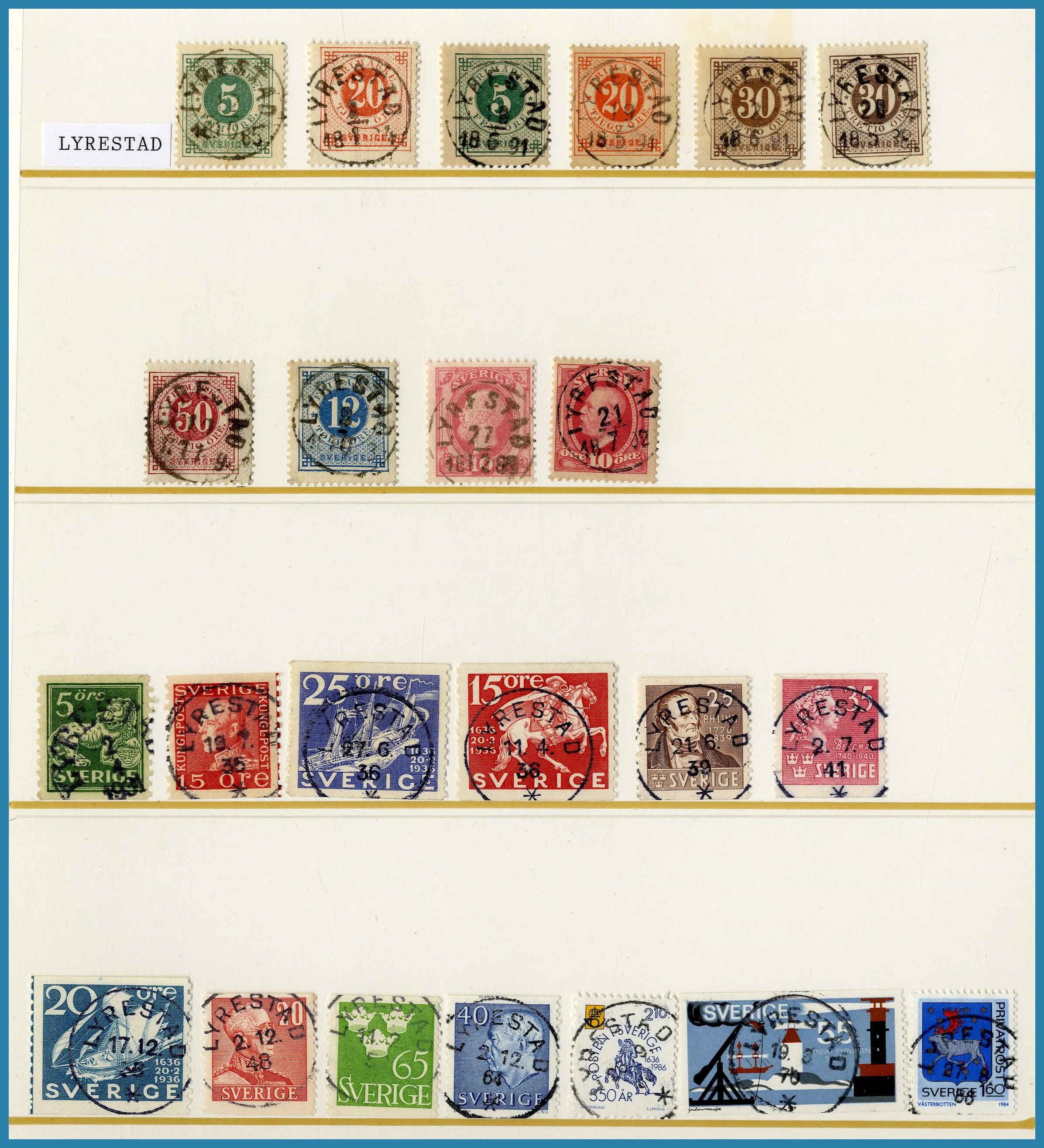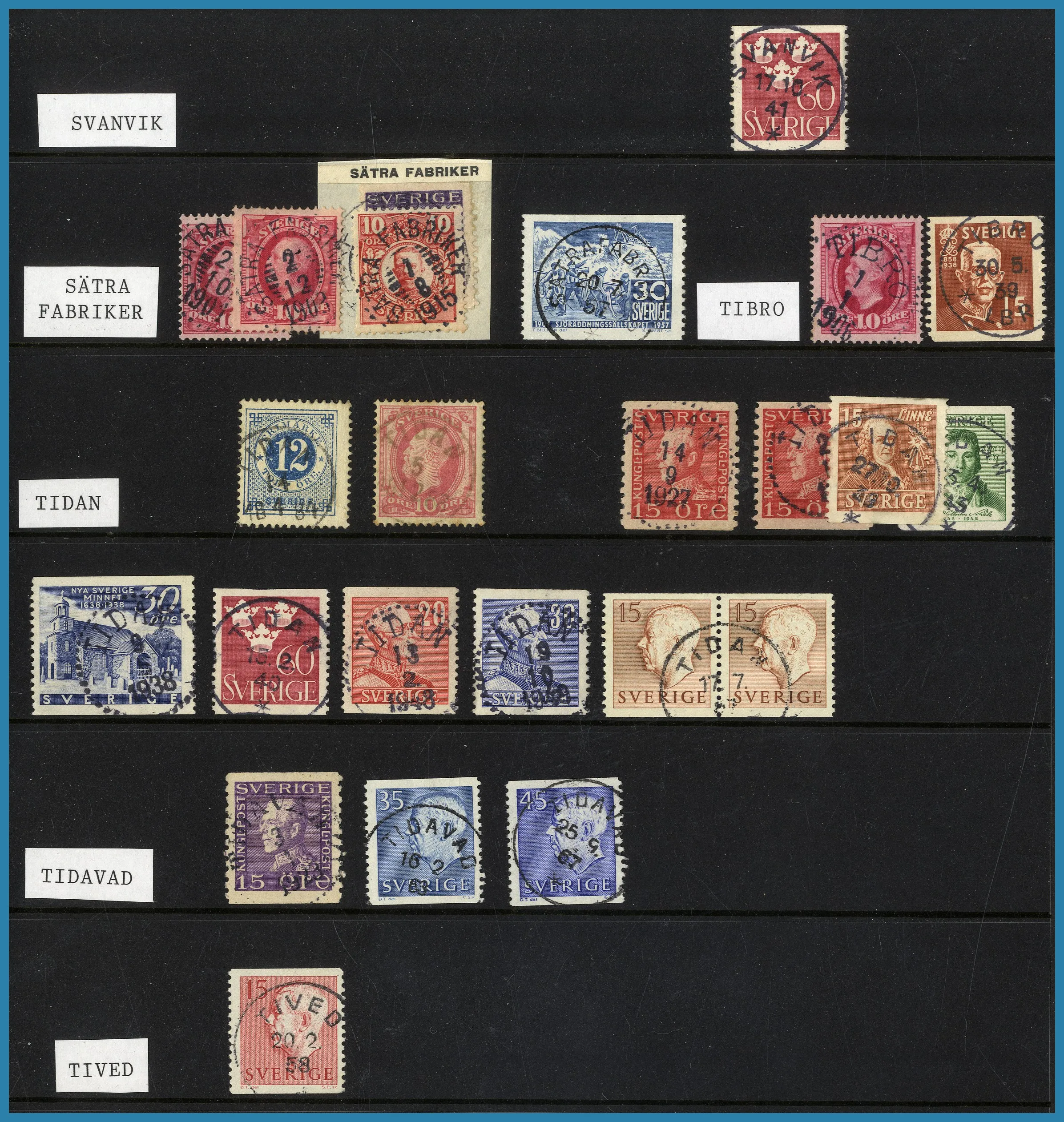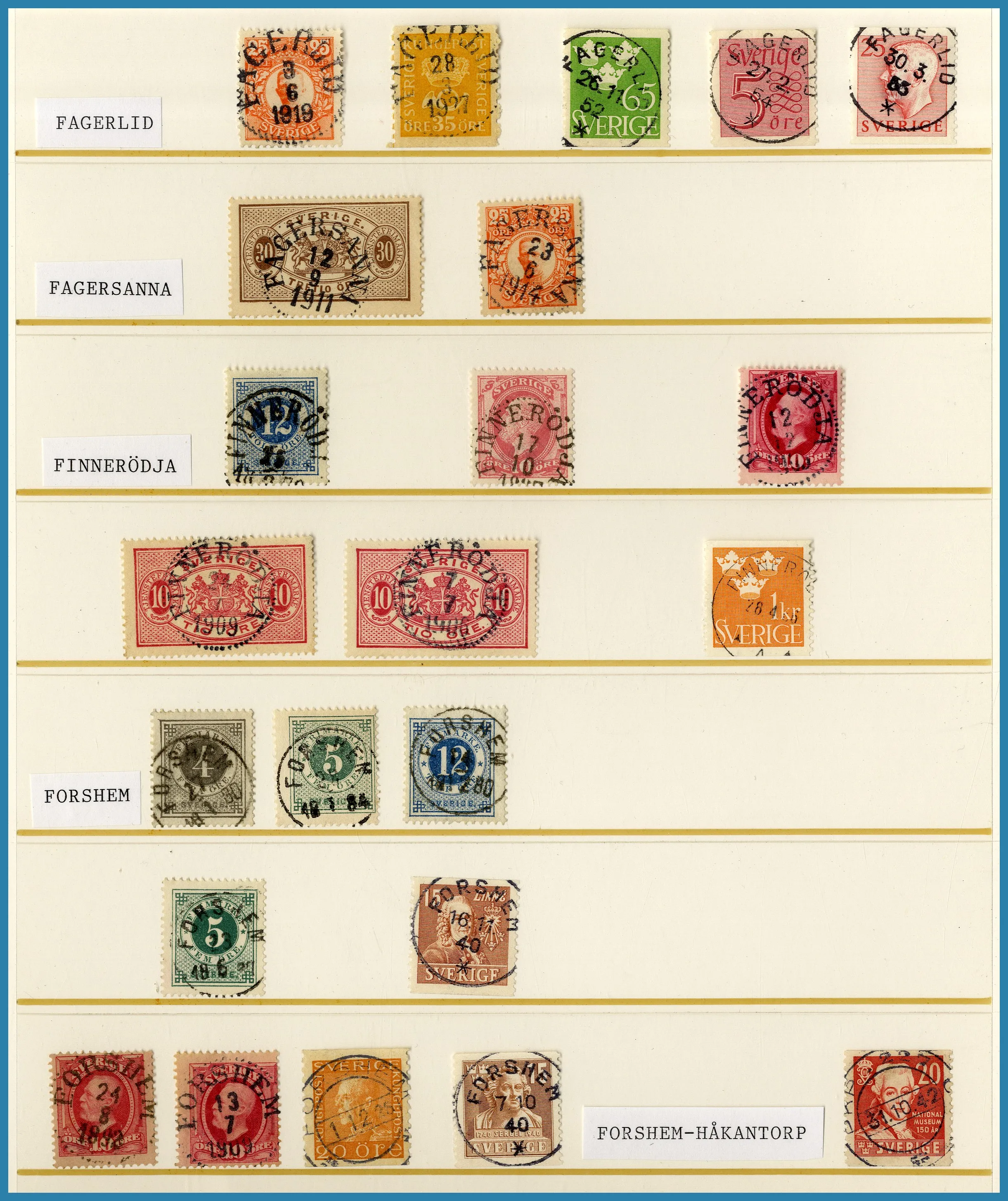 de flesta orter inom nuvarande Västergötland. Mest vapentyp till 1950-talet med enstaka moderna märken. Ungefär 450 st märken och drygt 50 försändelser. En hel del prakt/lyx.