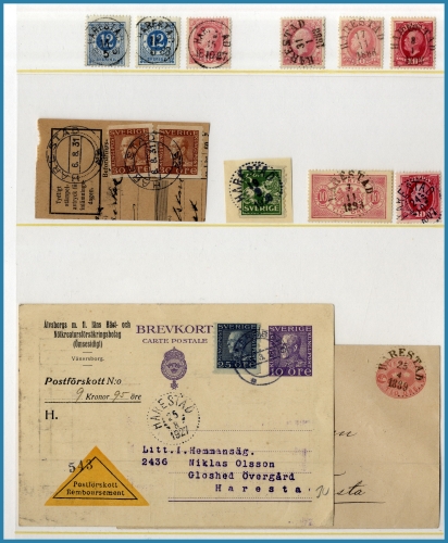 i visiralbum med ca 210 st märken och ca 80 st försändelser. Många vackra stämplar med lite klipp inemellan.