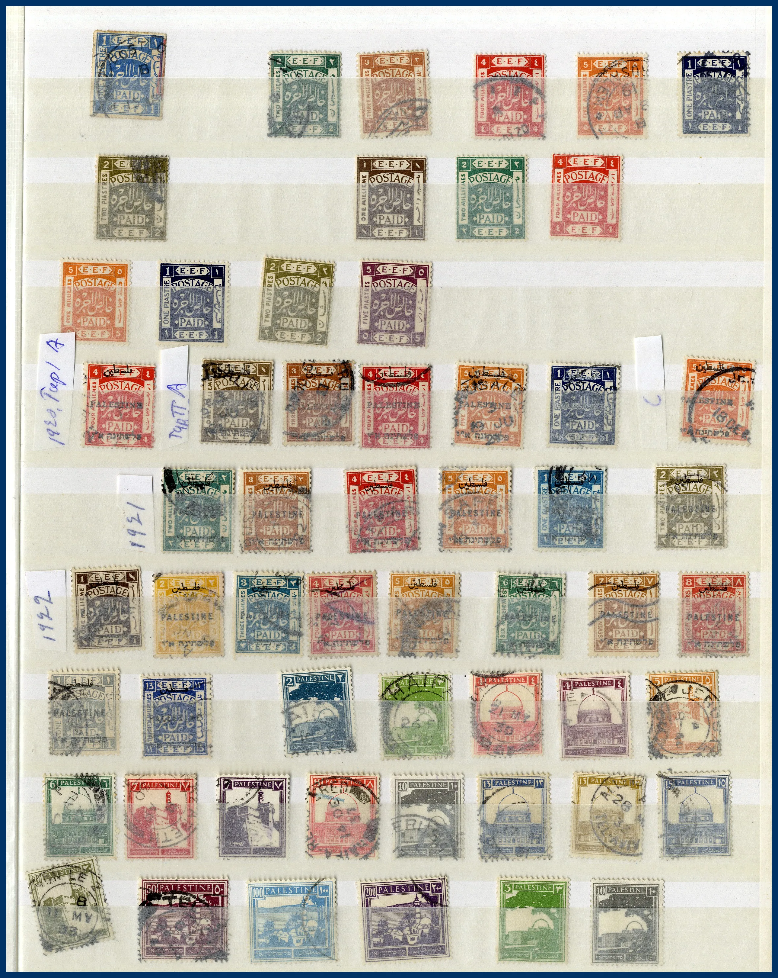 Israel, Palestina och franska Dahomey. Allt i 4 insticksböcker där en del sidor är glesa eller tomma. Övervägande stämplat. Sammantaget en trevlig post med mycket att gå igenom.