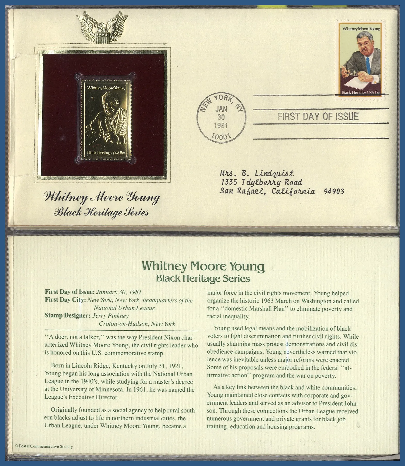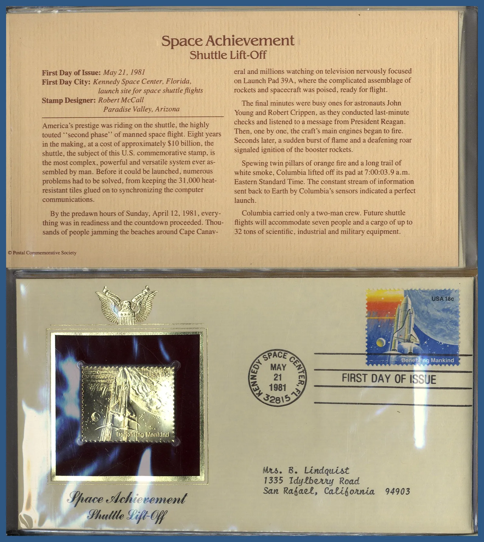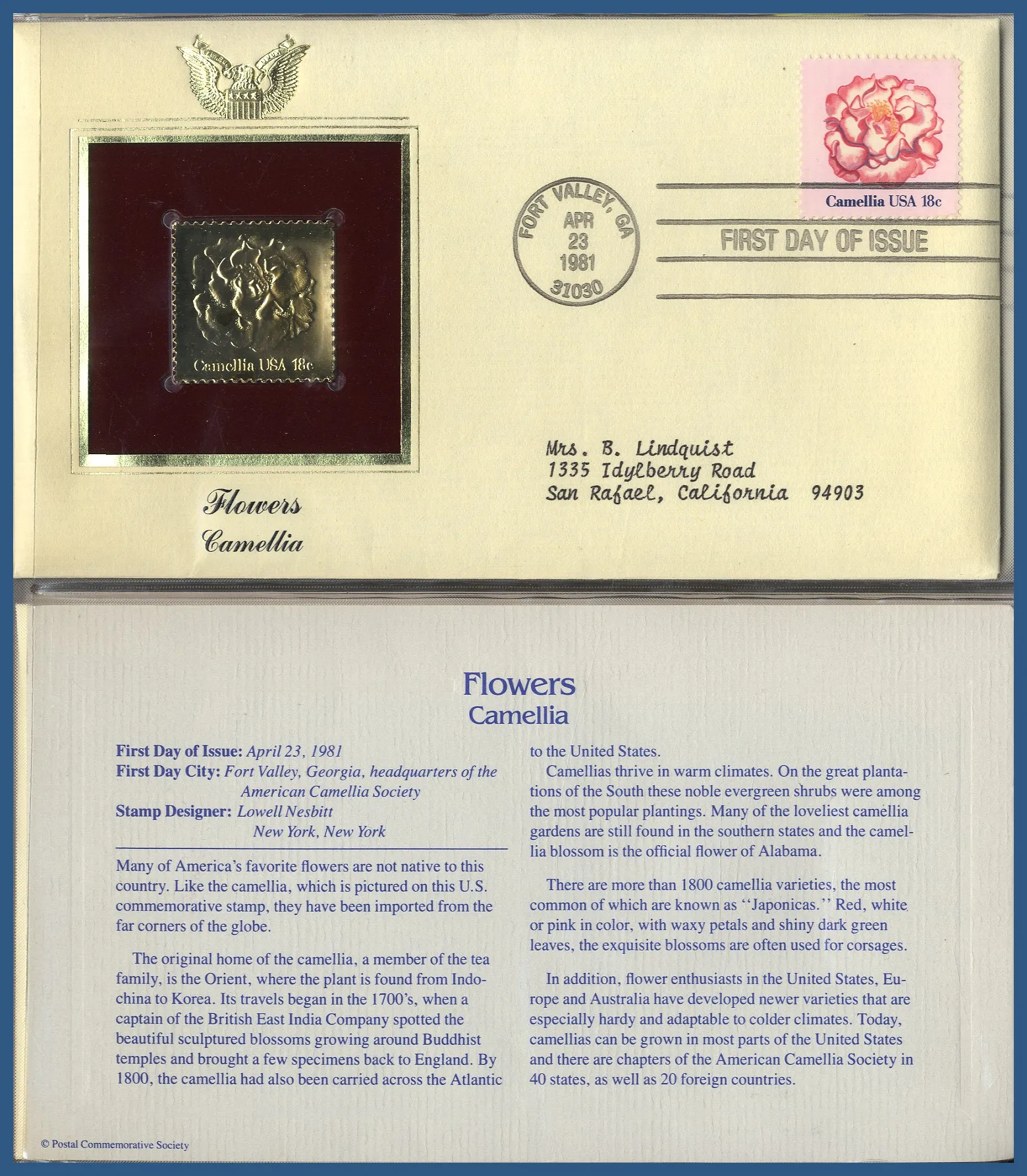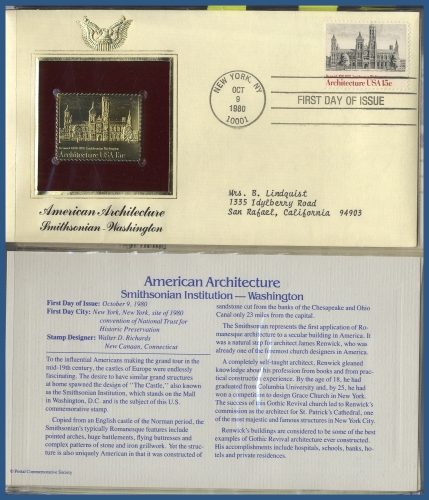262. (D) Specialalbum USA FDC med 36 st guld-repliker 1980-1981