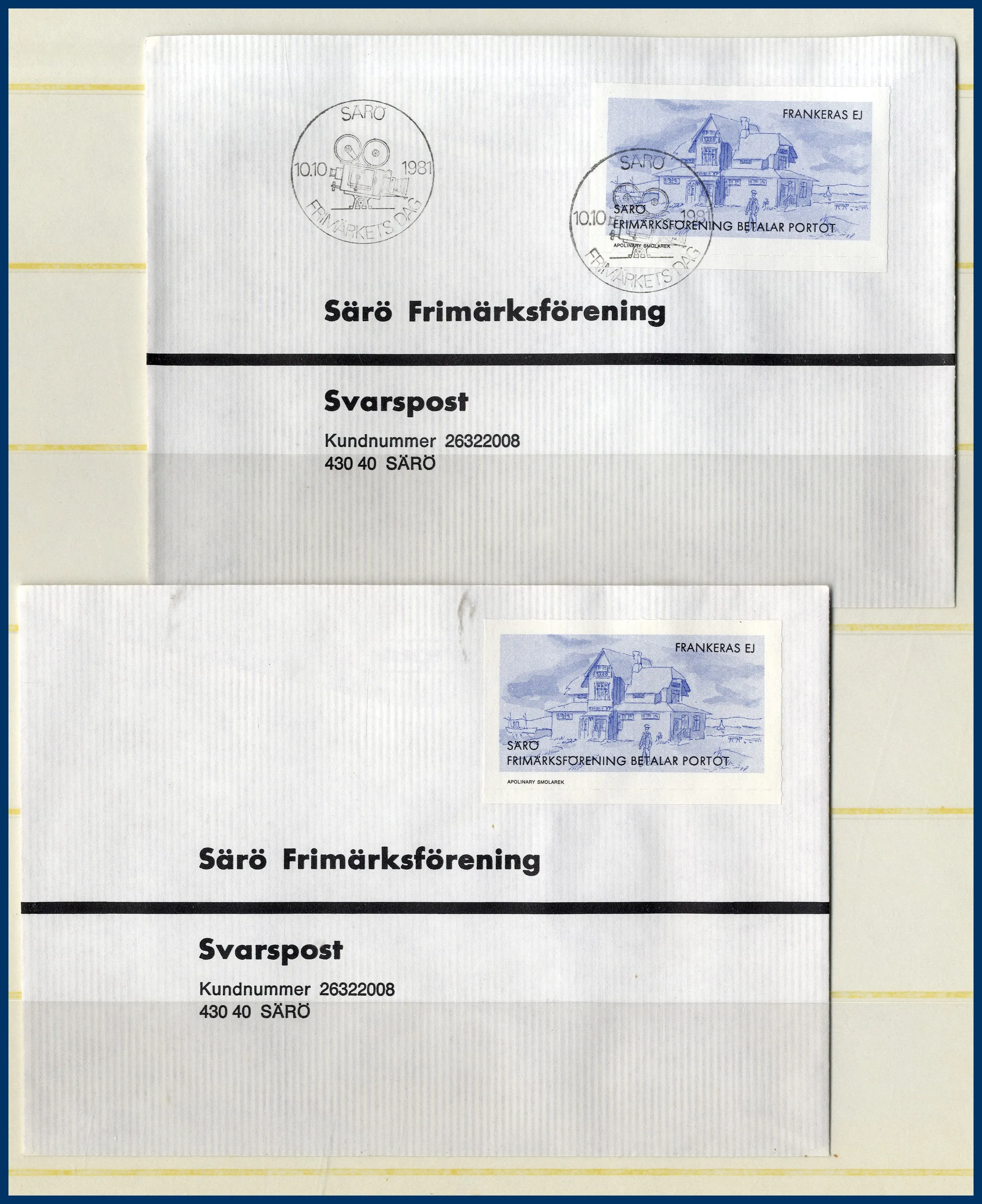 48. (D) Specialsamling Särö FF Porto betalt märke som