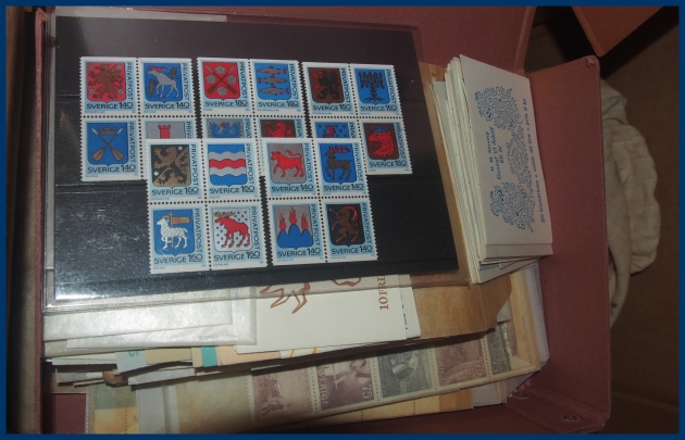 äldre häften, inklusive 20 st rabattfrimärken, oräknad nominal. Även säck med ca 1,5 kg äldre klipp mest Sverige 1910-1940 talet.