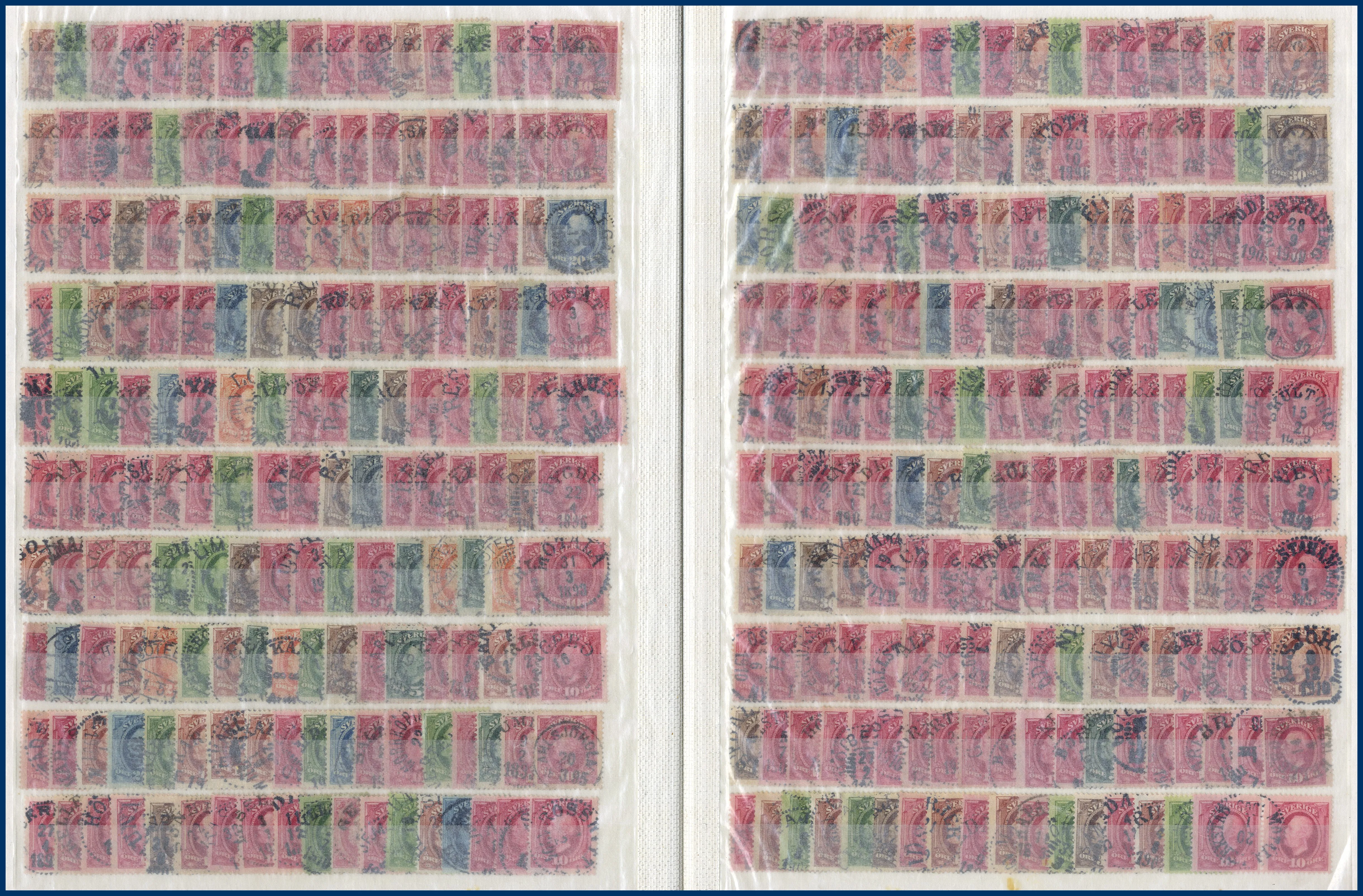 225. (D) Sverige stämplar på Oscar och Medaljong i 64-sidigt insticksalbum
