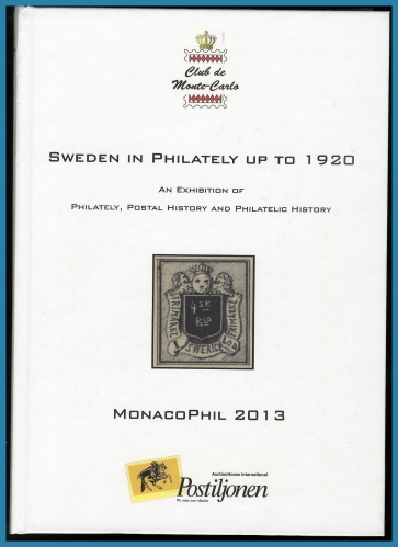 An Exhibition of Philately, Postal History and Philatelic History". Med introduktion på Franska och Engelska, övrig text på Engelska. Boken visar ett urval av de främsta svenska exponaten från Förfilateli, Kronopost etc fram till ca 1920, Utgiven MonacoPhil 2013. Inbunden, 279 sidor. Nära nyskick.