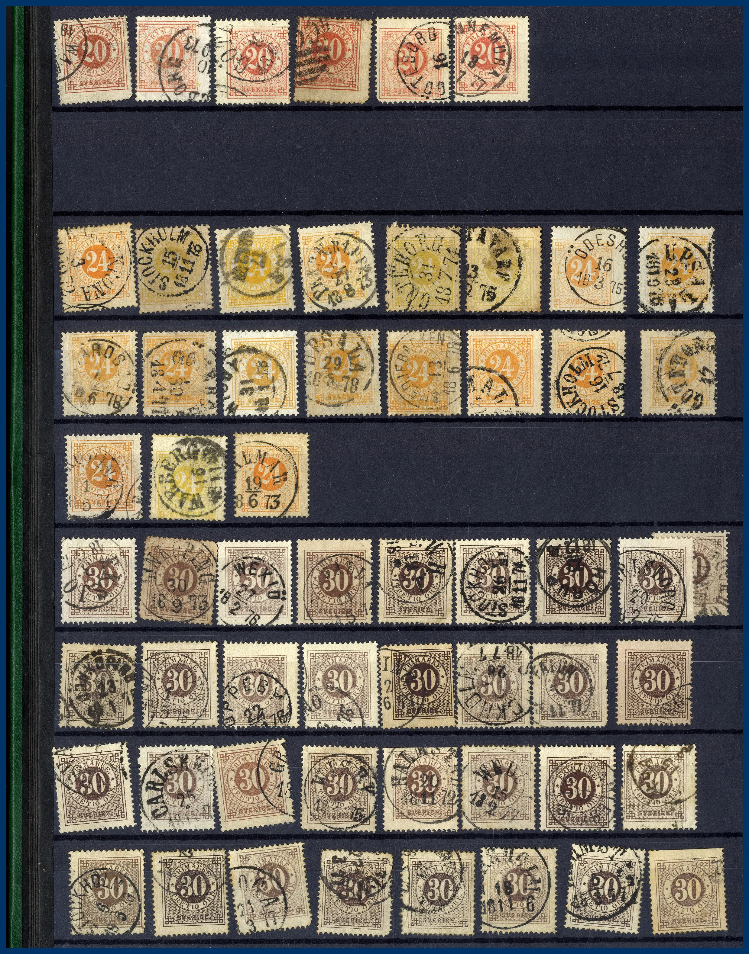 140. (D) Trevligt parti Sverige stämplat på 33 sidor i ett