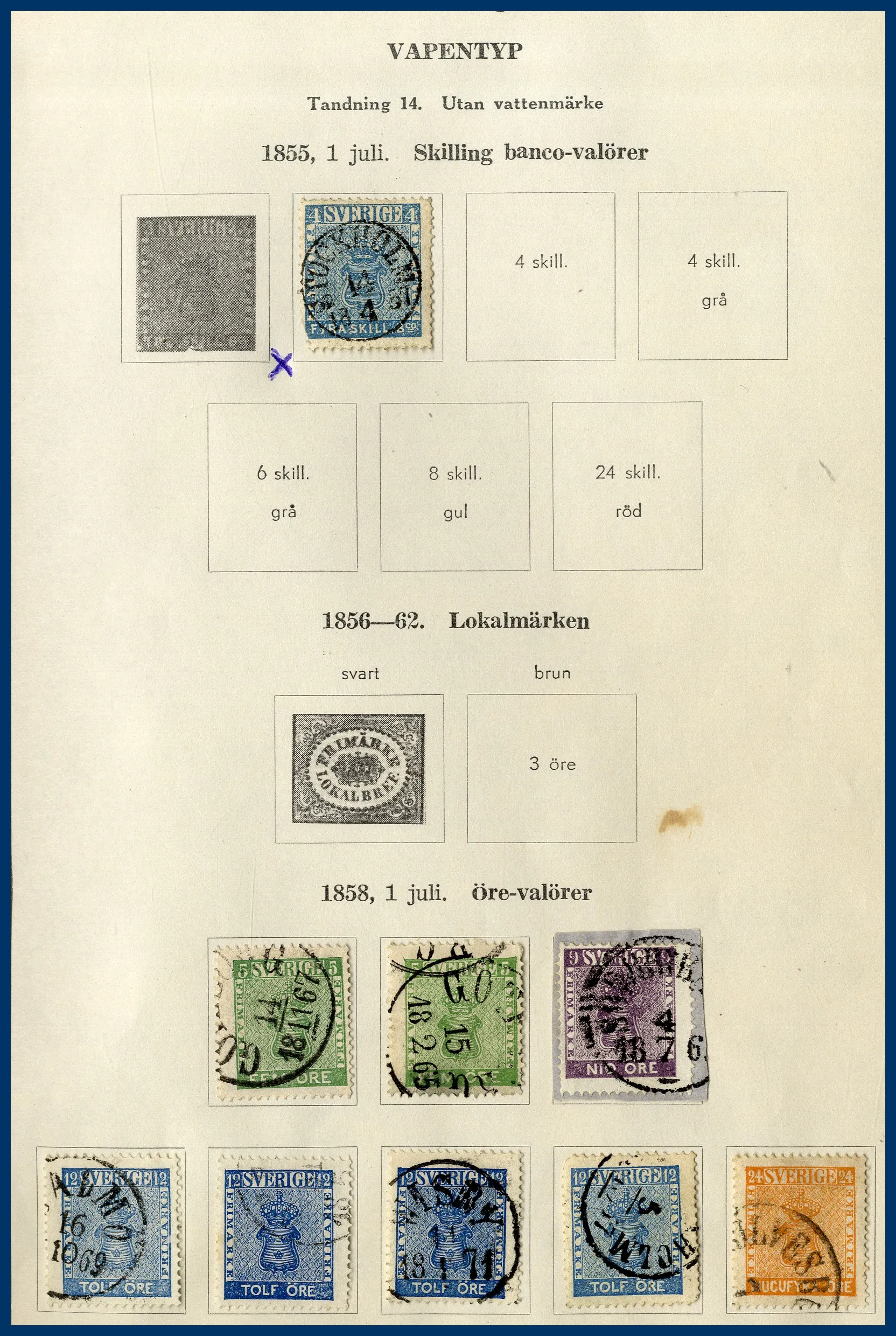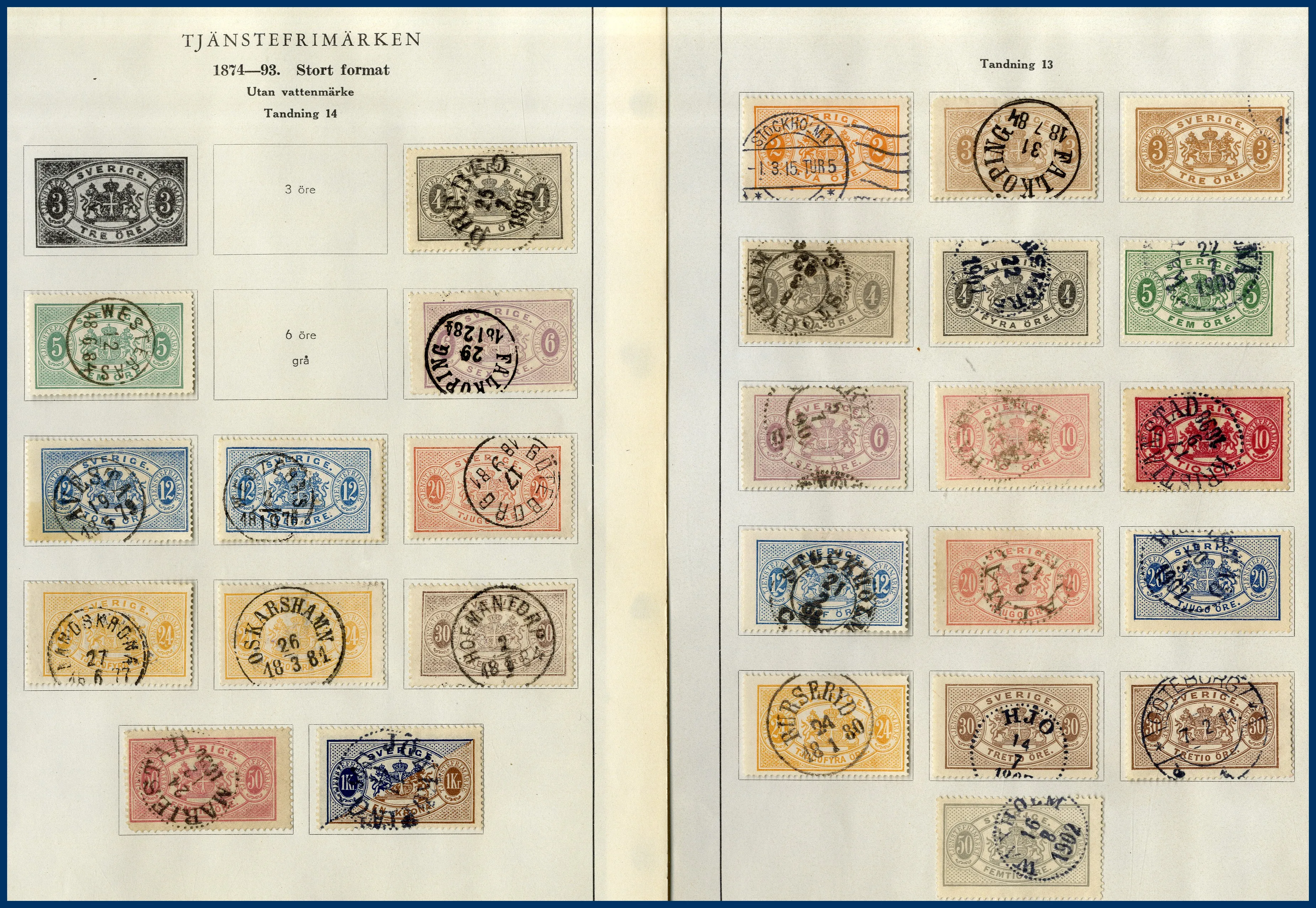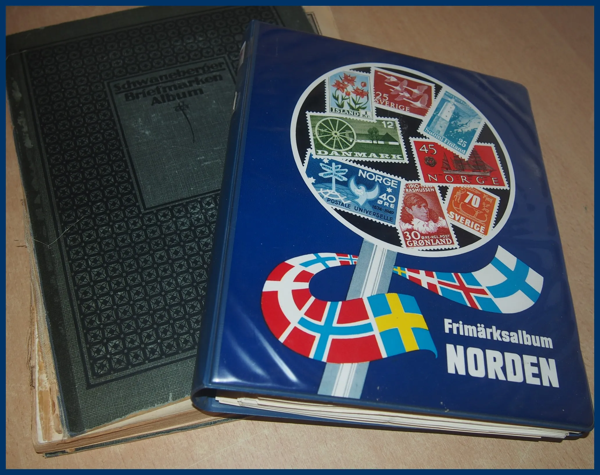 Tjänste och Lösen. Flera bättre märken ingår och det finns också gott om vackra stämplar, varav ett par riktiga pärlor. 2. Äldre Schwaneberger hela världen-album med märken fram till tidigt 1910-tal. Ingenting alltför märkvärdigt men åtminstone ett par tusen olika märken i albumet.