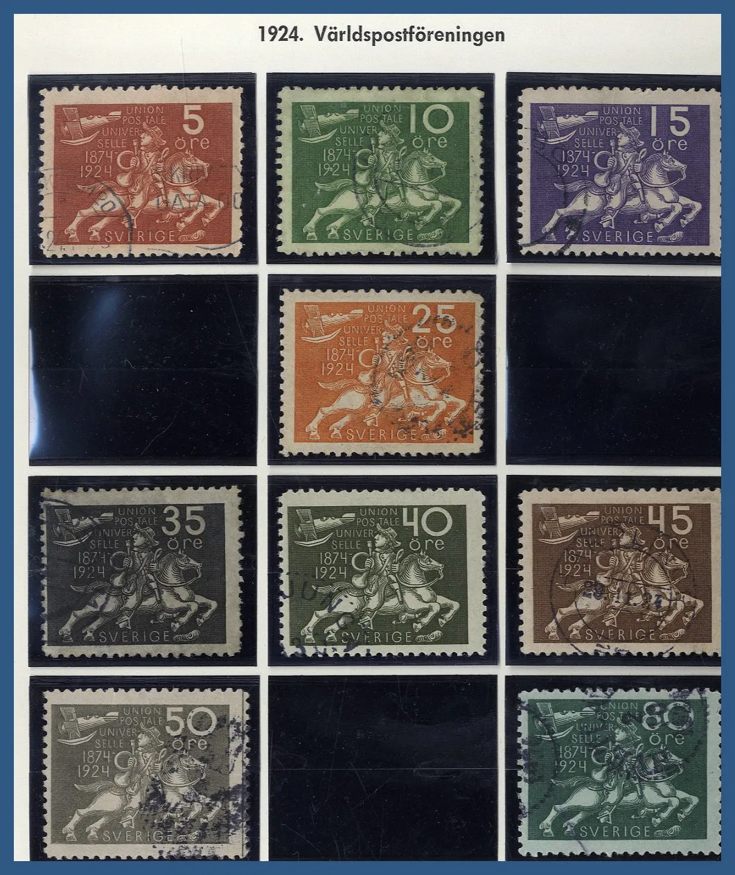 stämplat 1872-1974 (börjar med enstaka Ringtyp t.14 därefter genomgående relativt välfyllt), dels ett Verbisalbum **/* 1951-1984.