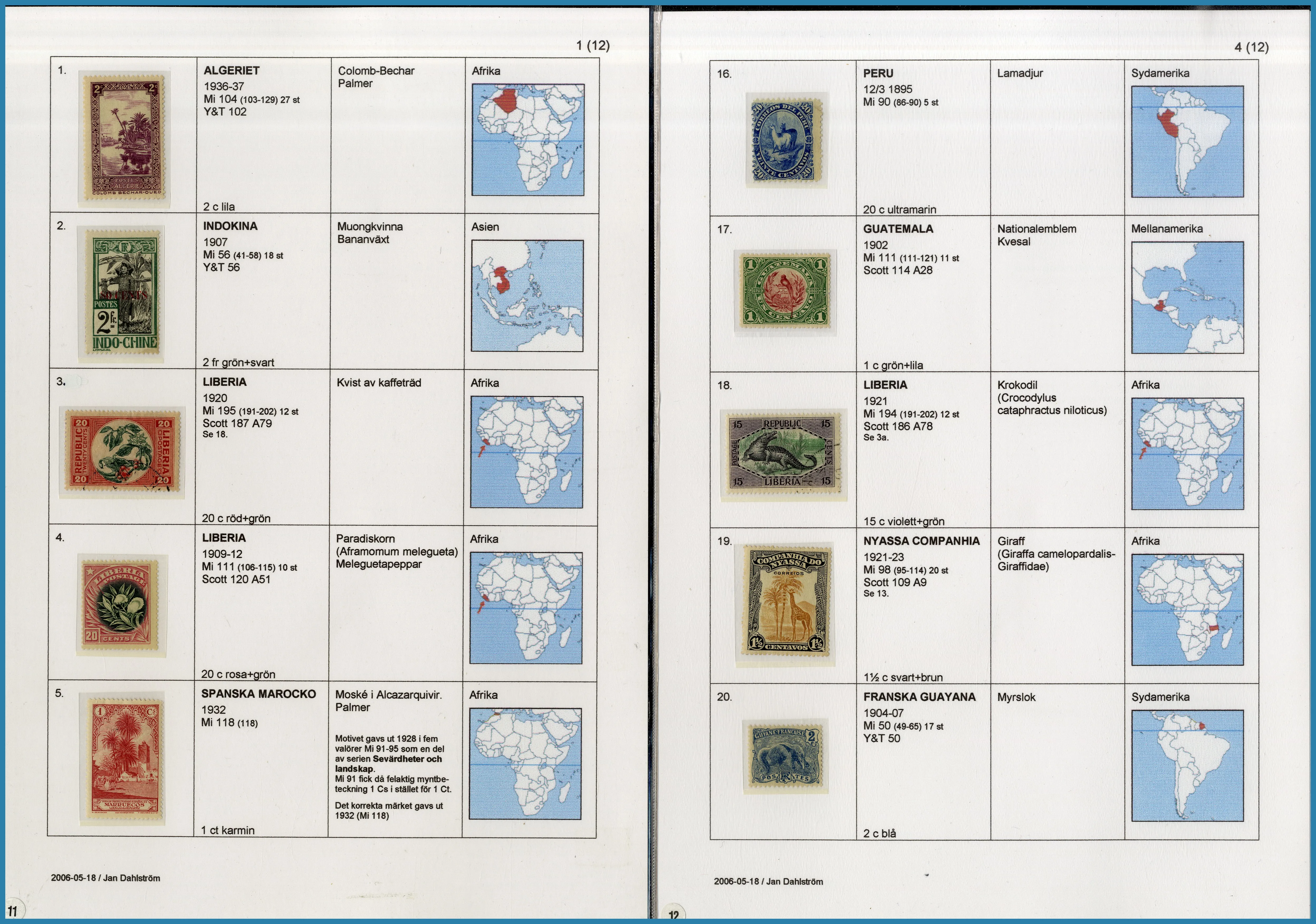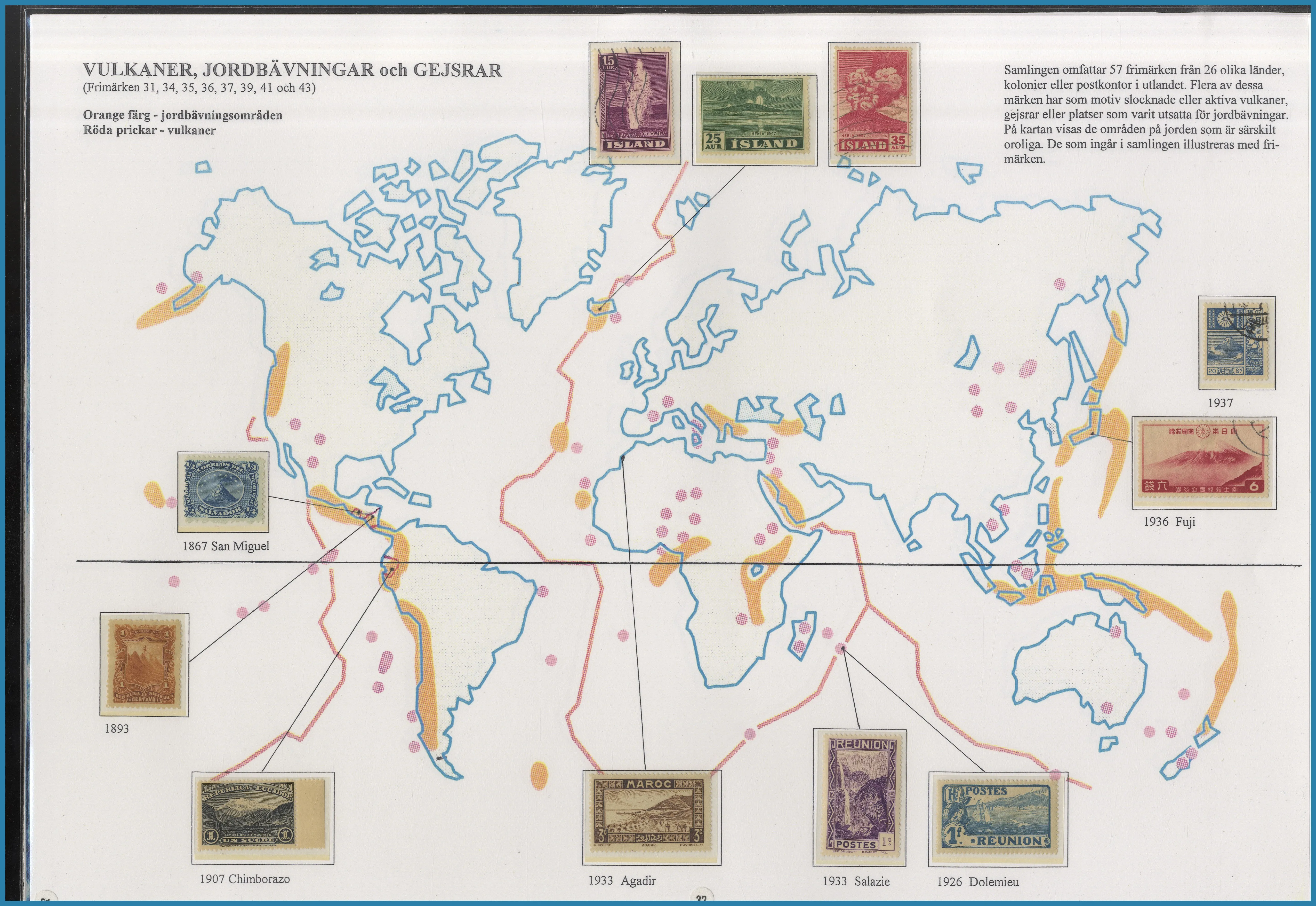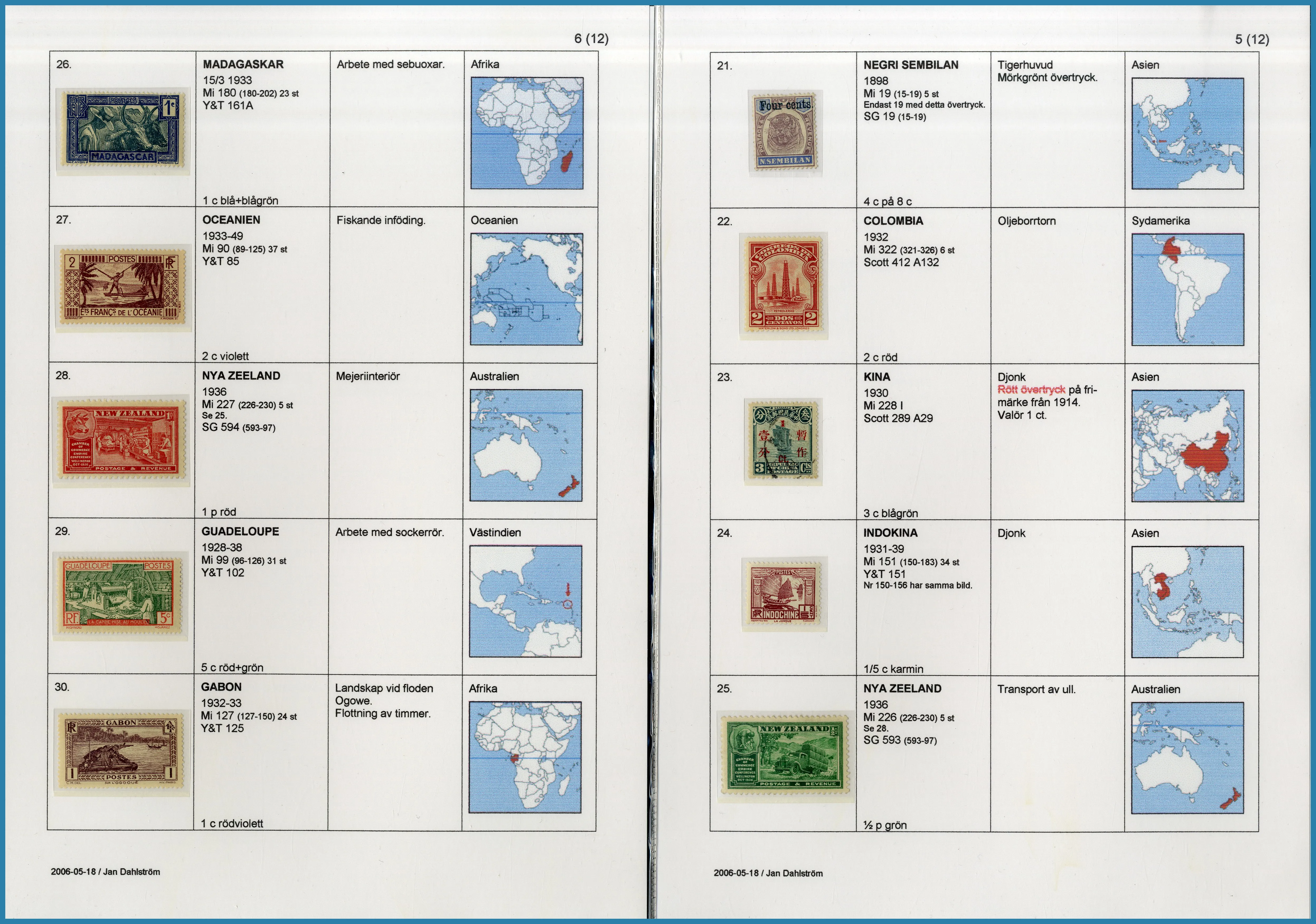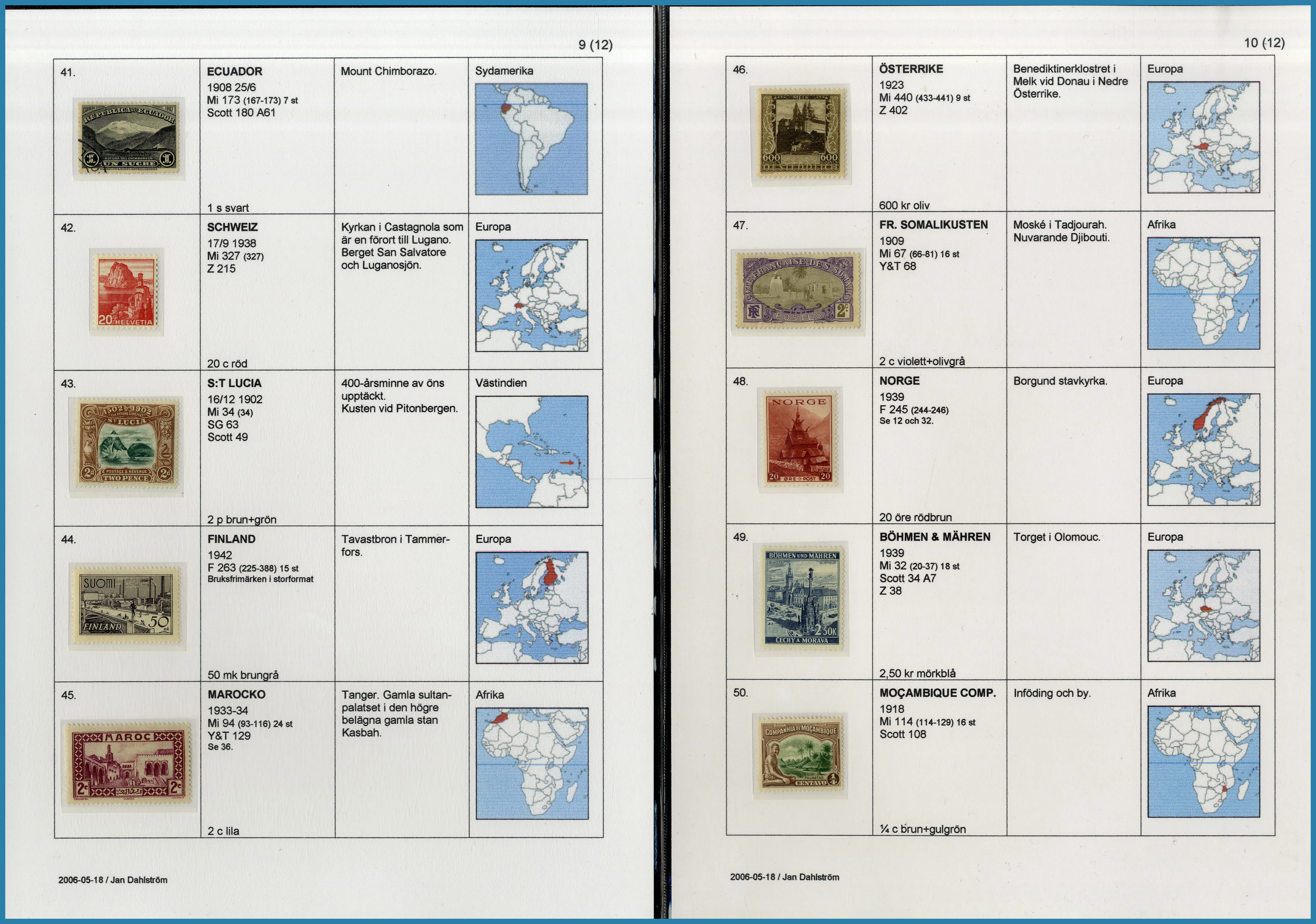 på 6 ramar, här säljs ram 1 plus extramaterial på totalt 25 blad som berättar historien om Frimärkshandlaren Harry Wennberg och hans utgivning av boken geografiboken "Frimärksgalleri" (medföljer) som är den röda tråden i samlingen. Frimärken från Hela världen **/*/O med bla bra Japan samt Landstorm II med F.121 **, F.124 ** samt F.125 ** fyrblock med arkmarginal av 5 kr Posthuset i Praktkvalitet.