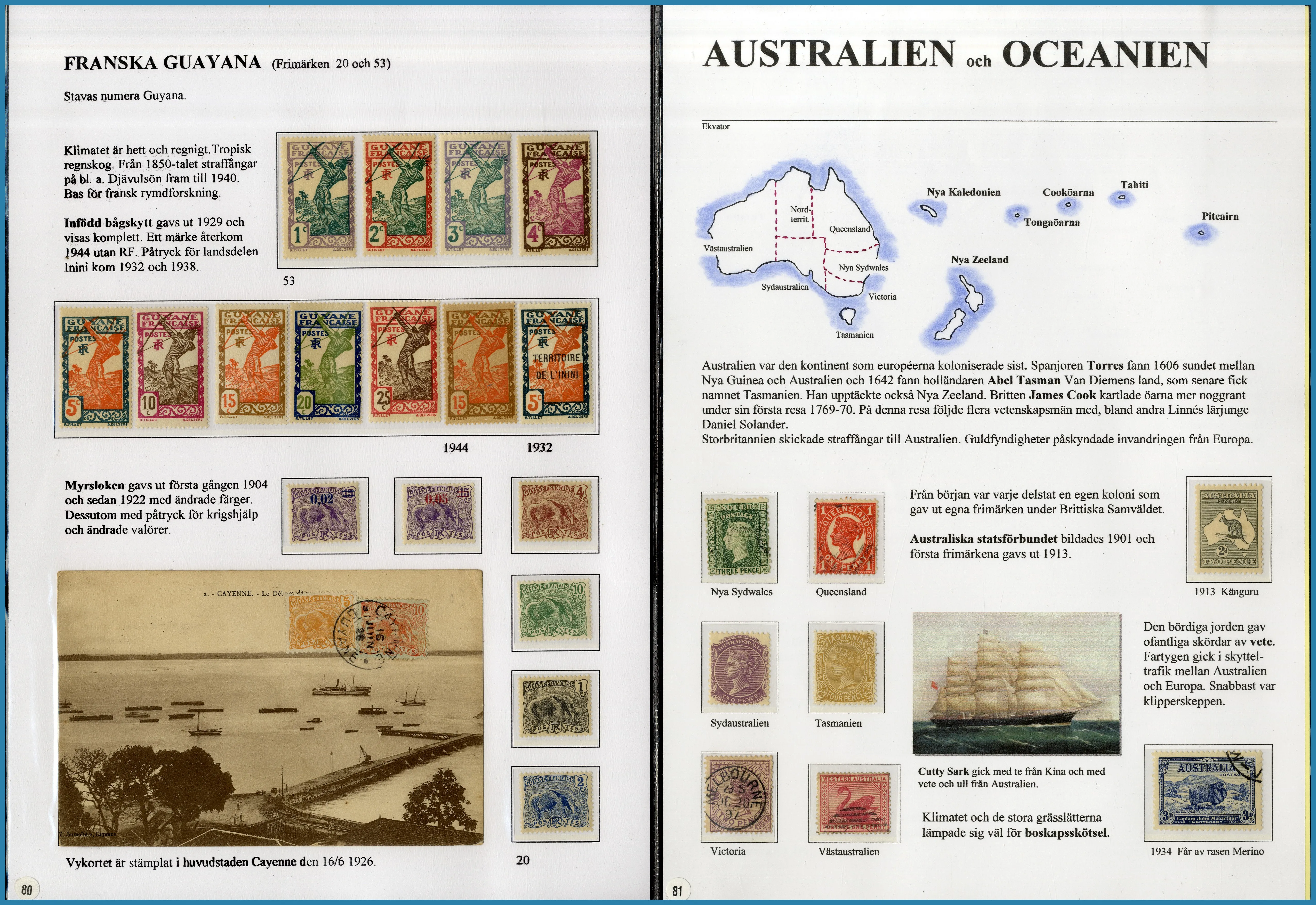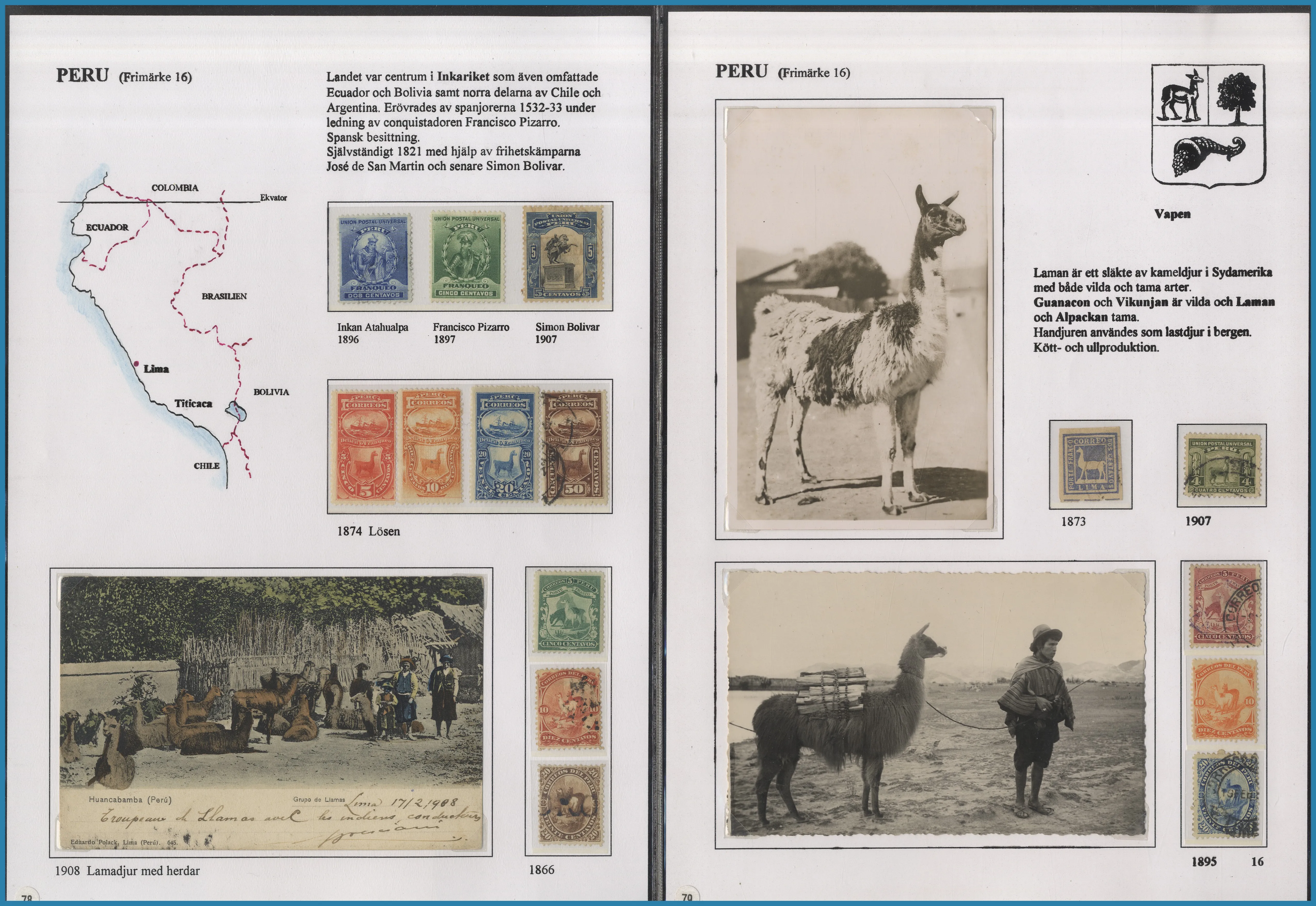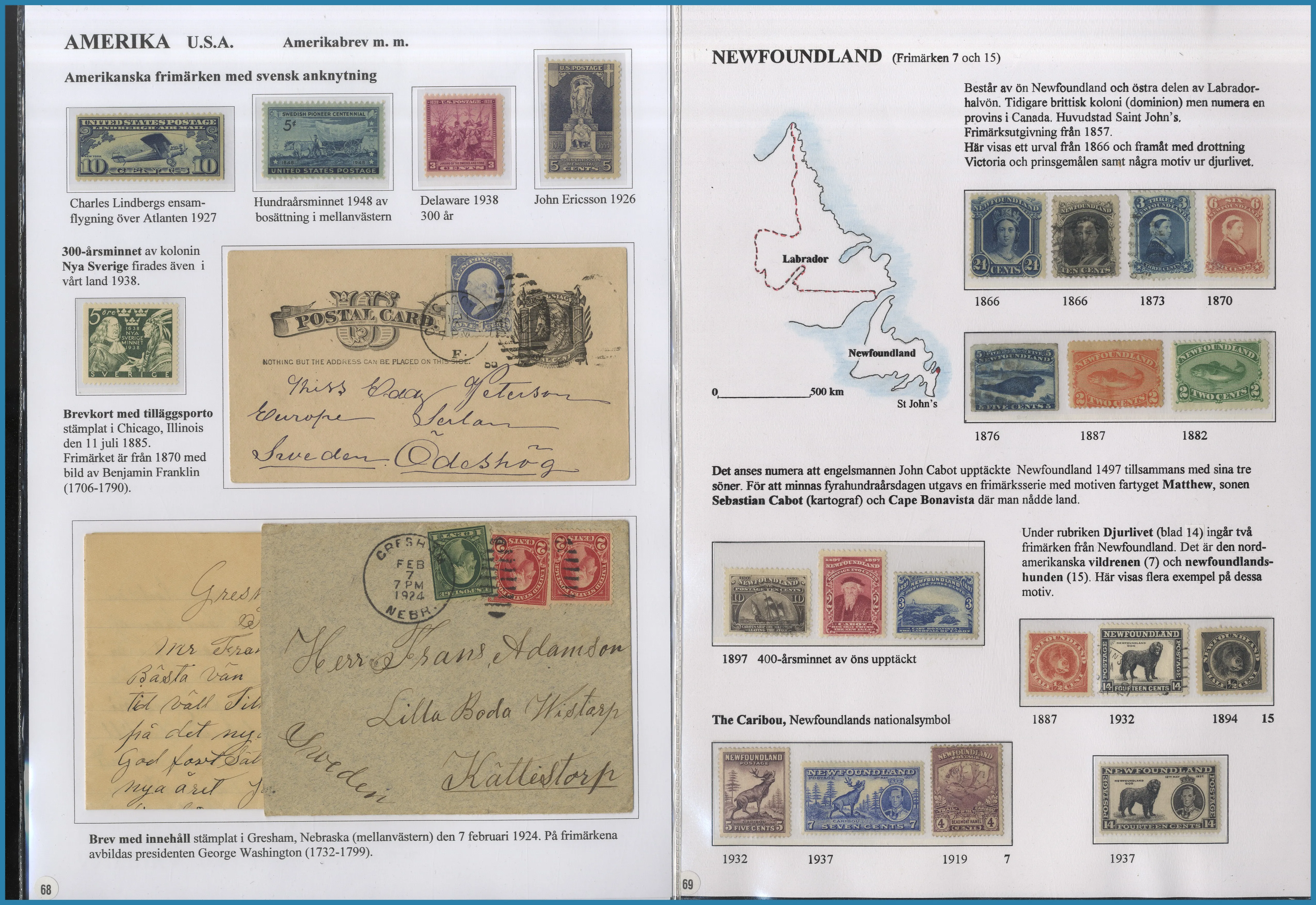 på 6 ramar. Här säljs ram 5-6 på totalt 29 st A4 blad med frimärken och försändelser från Amerika, Newfoundland, Västindien med S:t Lucia, Guatemala, Per, Franska Guayana samt Australien och Oceanien med tyska kolonier.