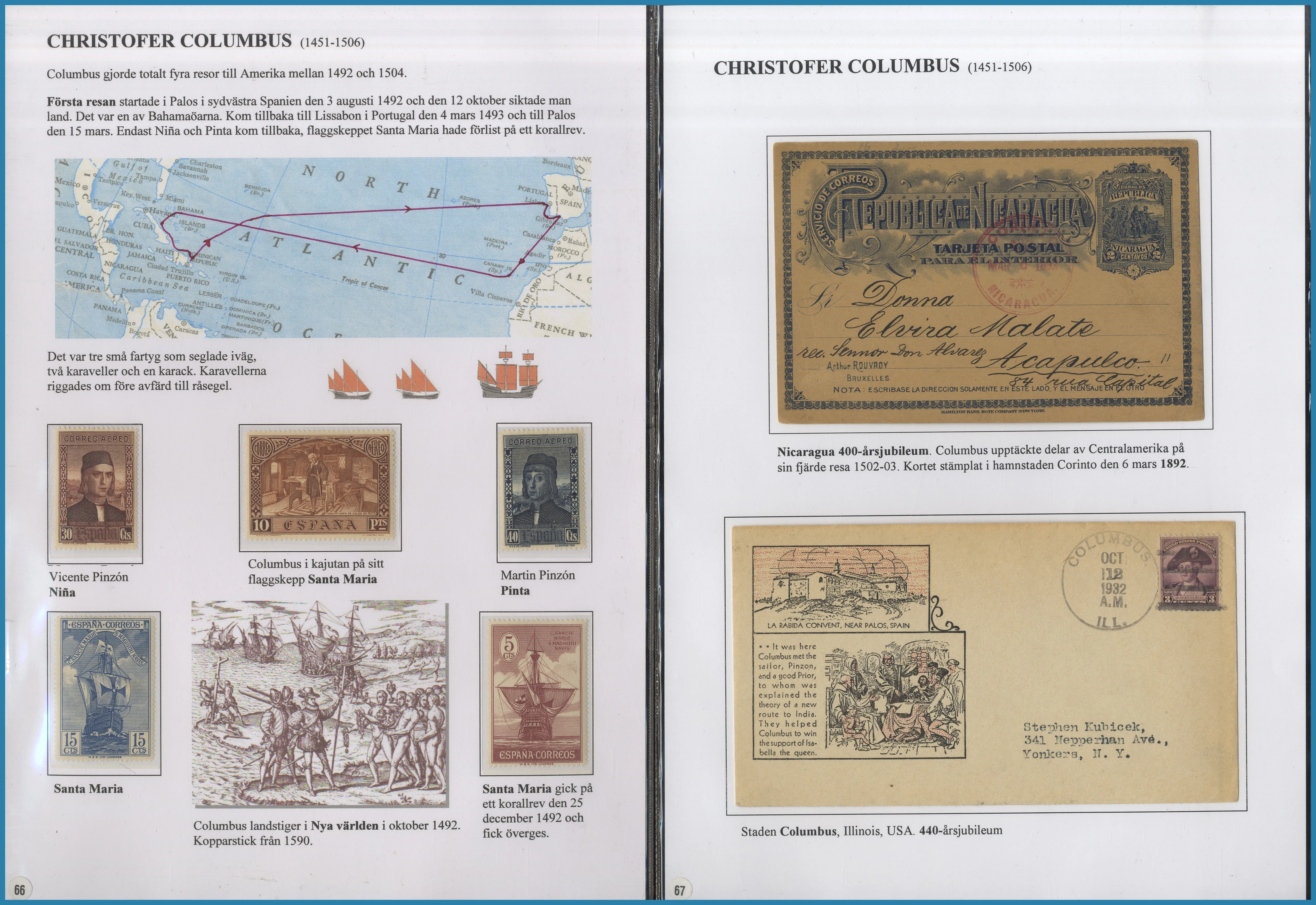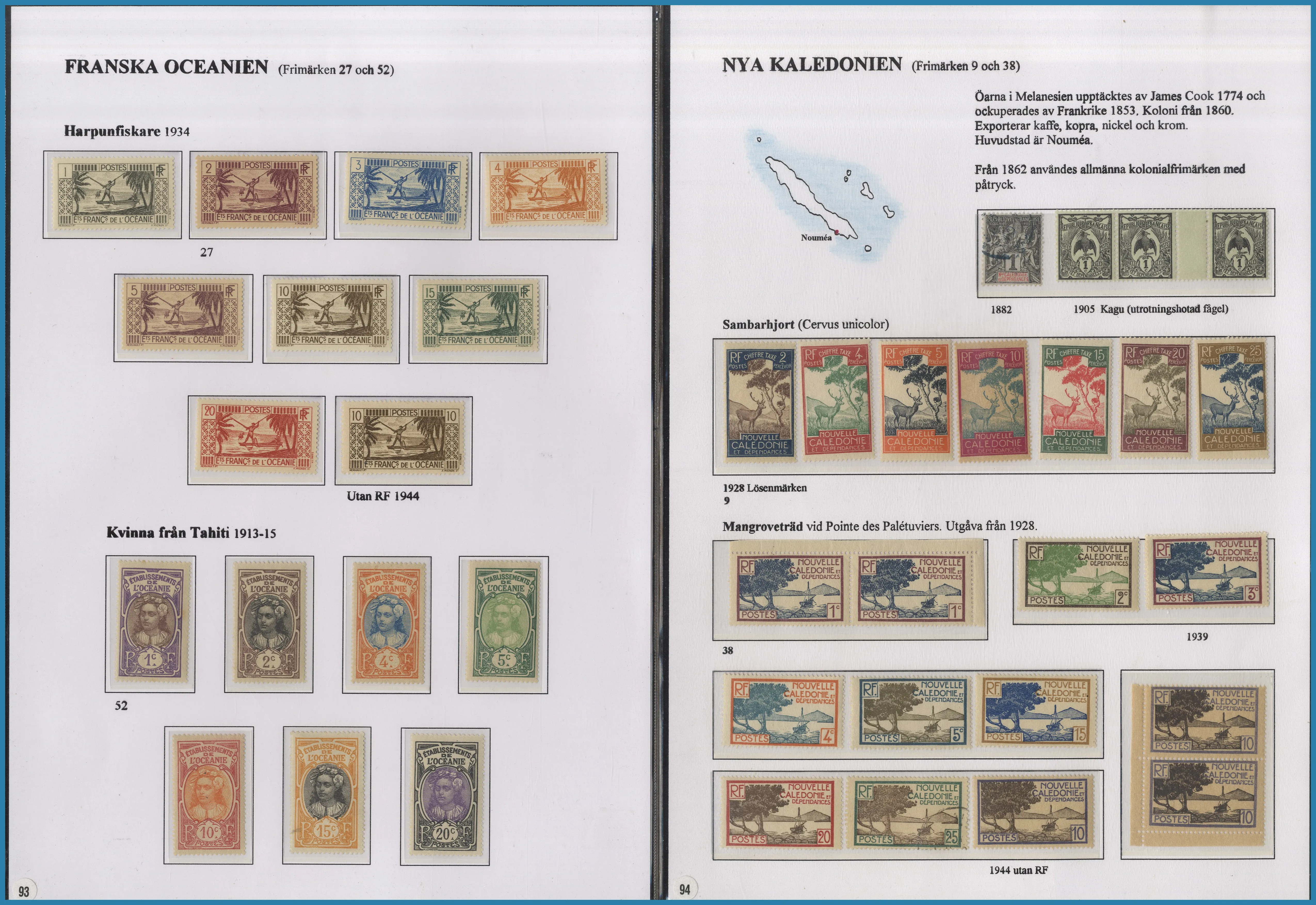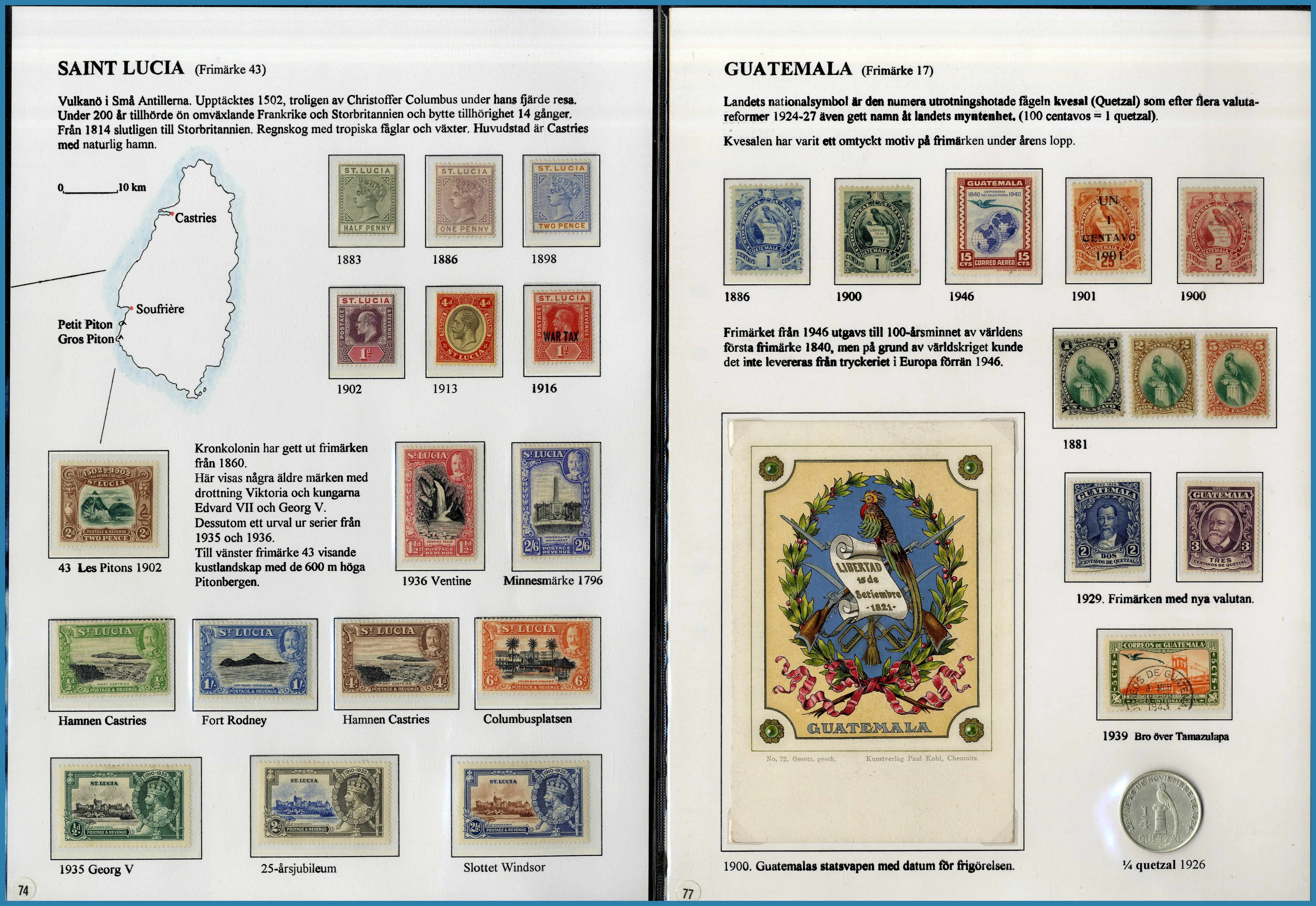 på 6 ramar. Här säljs ram 5-6 på totalt 29 st A4 blad med frimärken och försändelser från Amerika, Newfoundland, Västindien med S:t Lucia, Guatemala, Per, Franska Guayana samt Australien och Oceanien med tyska kolonier.