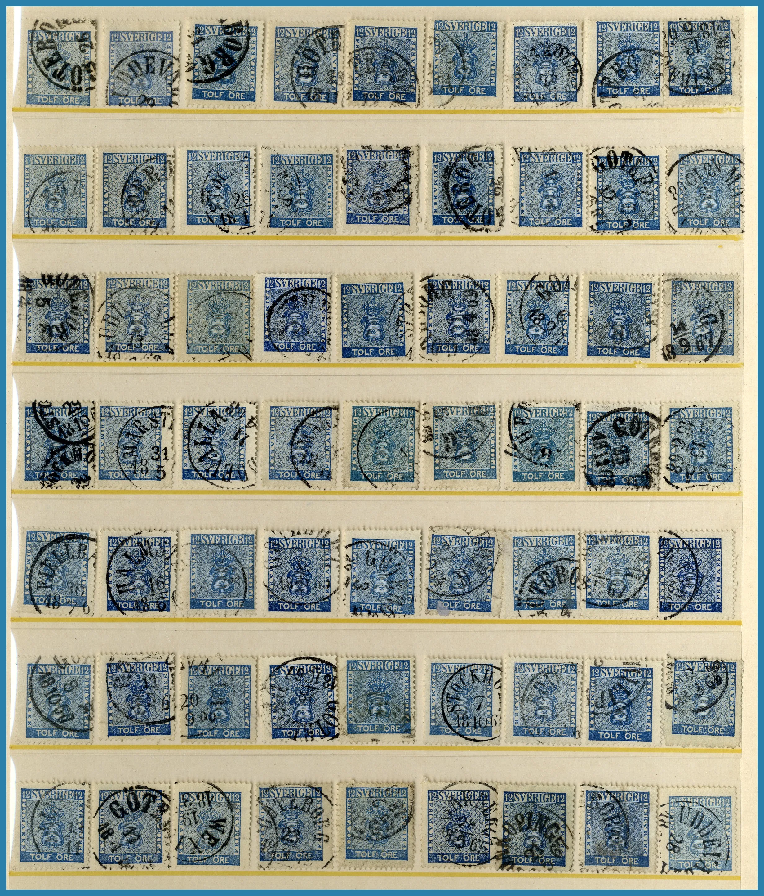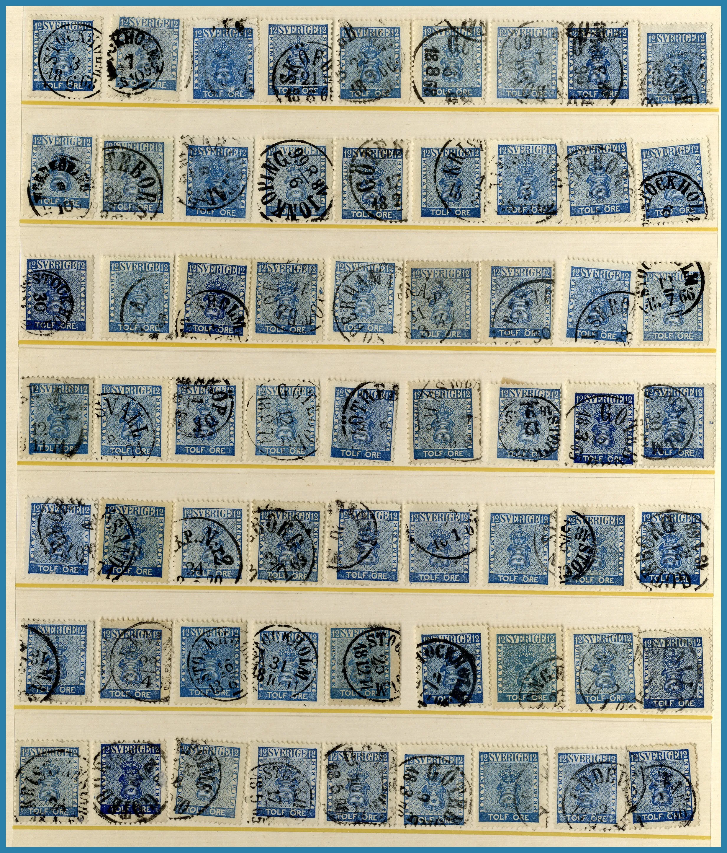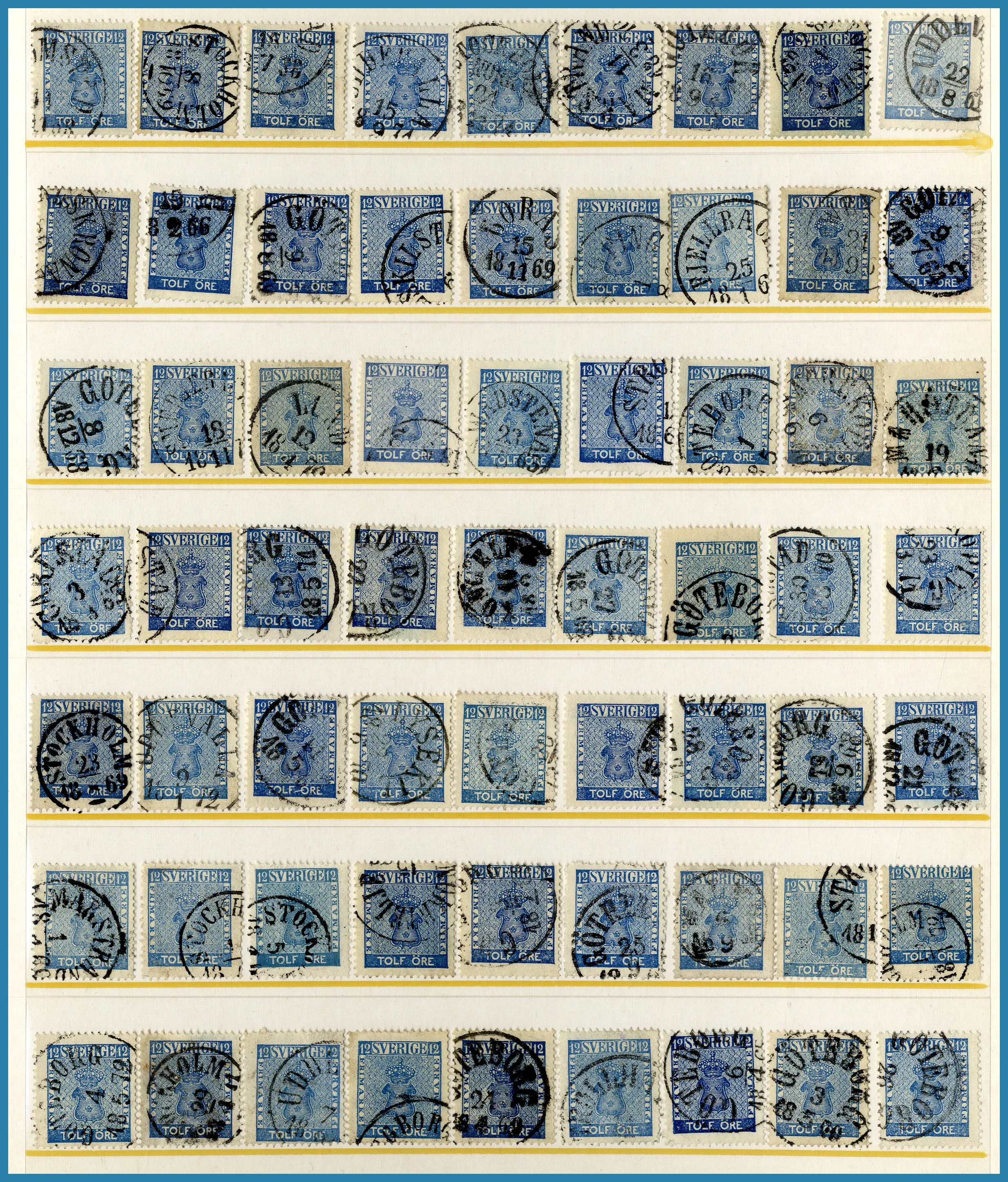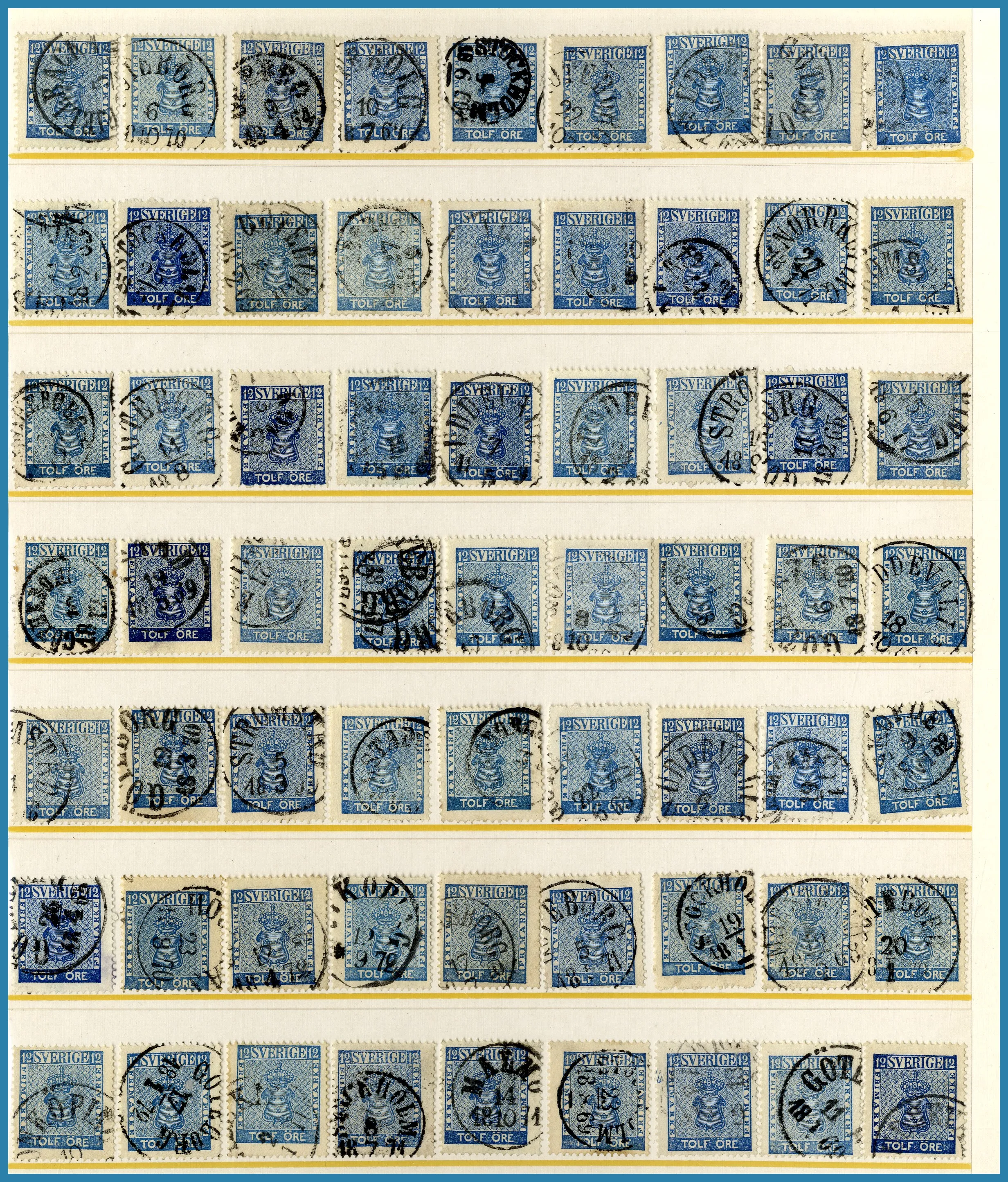 12 öre Vapen. Några enstaka av märkena sitter på klipp. Något blandad kvalitet.