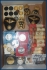 med bla 3 svenska minnesmynt i silver (totalt 300 kr), 1 US silverdollar 2020. 1 Bitcoin, många olika svenska lokalmynt, påse med drygt 20 st myntrullar med småvalörer (ej kollade av oss), 3 st äldre Engelska "tokens" i mässong: Georgivs III 1790, Exhibition building 1862, Cumberland Jack 1859. Även lite övrigt samt Järnvägsknappar och uniformsmärken. En trevligt blandad låda.