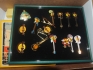 394. (E) Kuriosalåda med: Tavla med 15 st Hard Rock cafe pins,