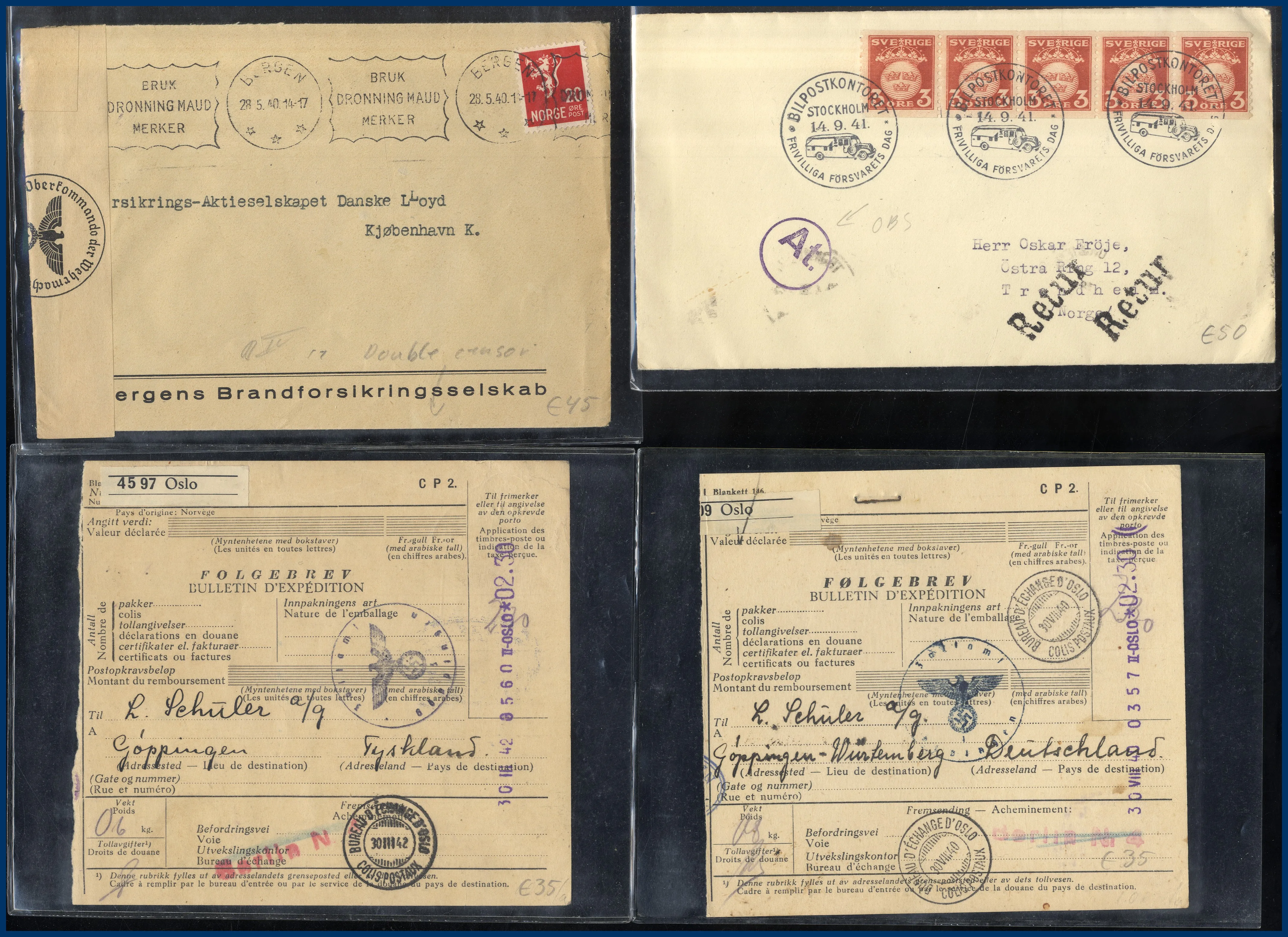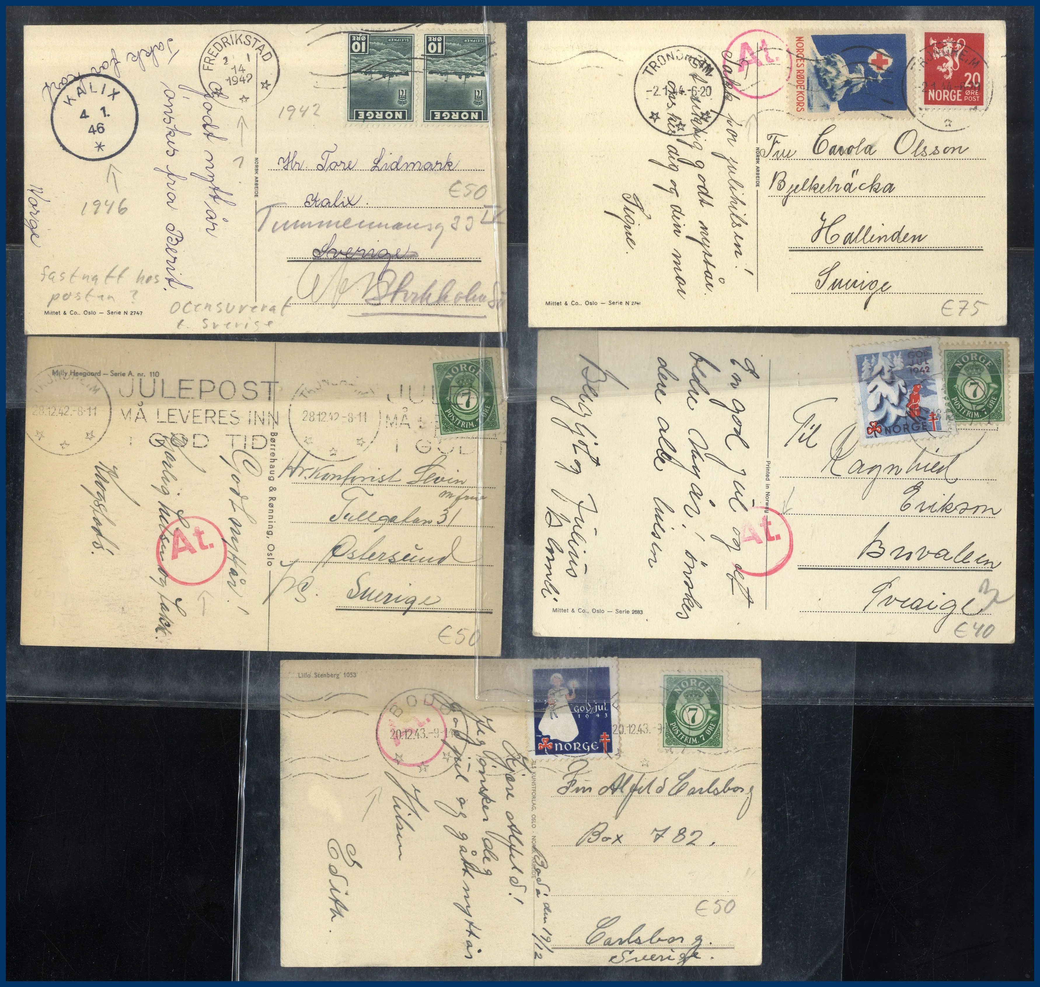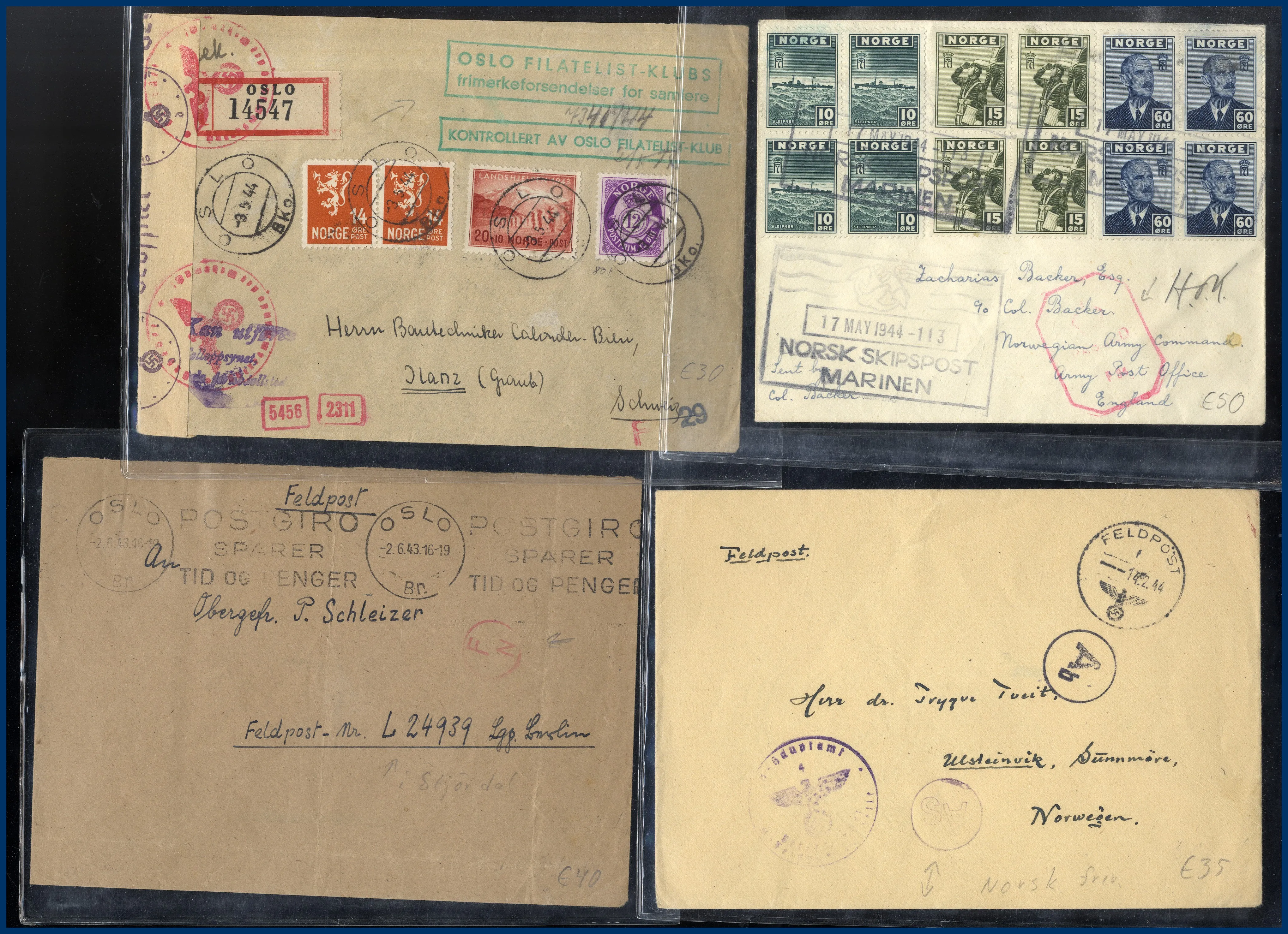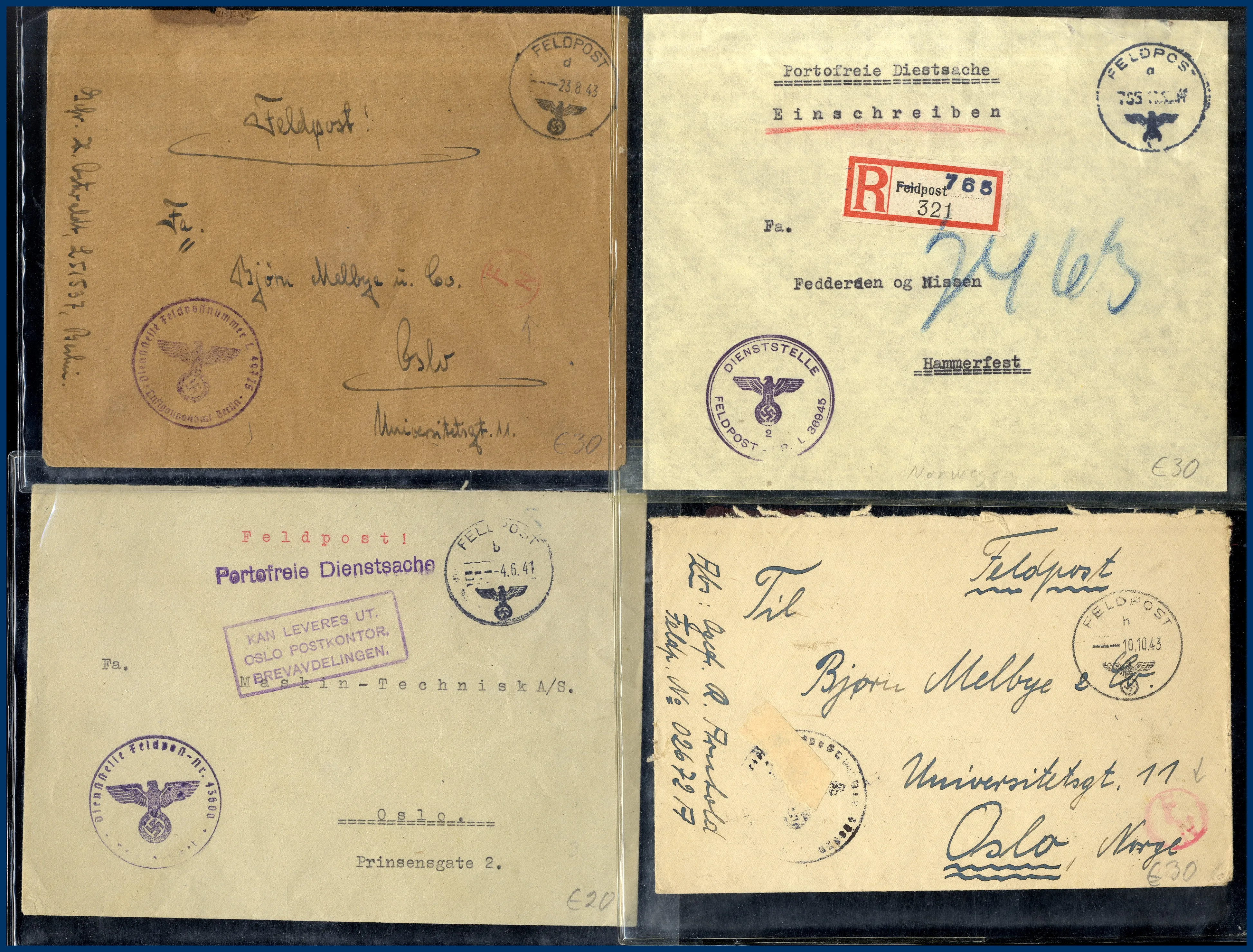 45 st Tysk fältpost i Norge. Alla prismärkta och i plastfickor. Ex. Göran Fredrikson.