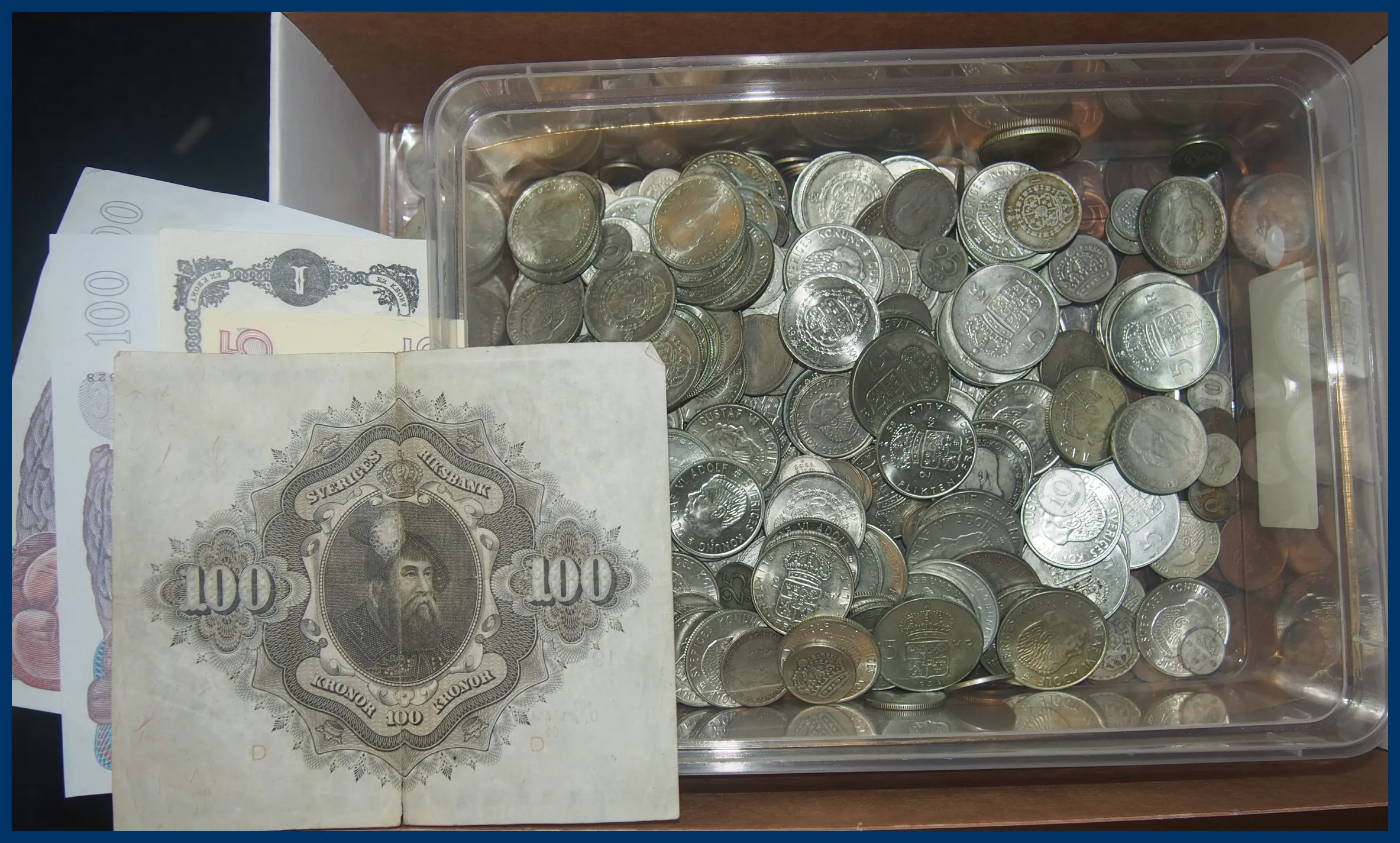 164. (E) Svenska silvermynt: 5 kr (11 st), 2 kr (82 st), 1 kr (51 st),