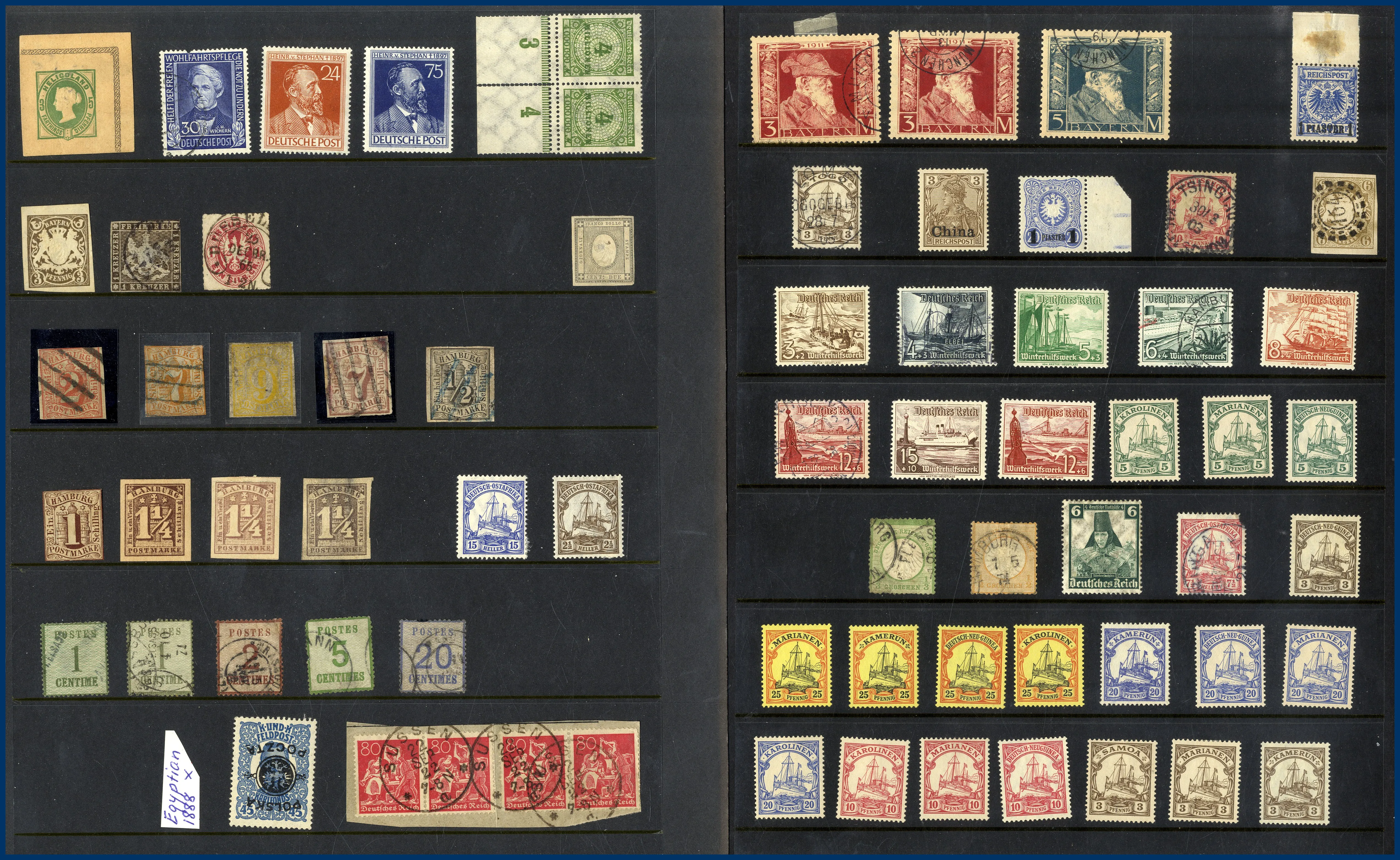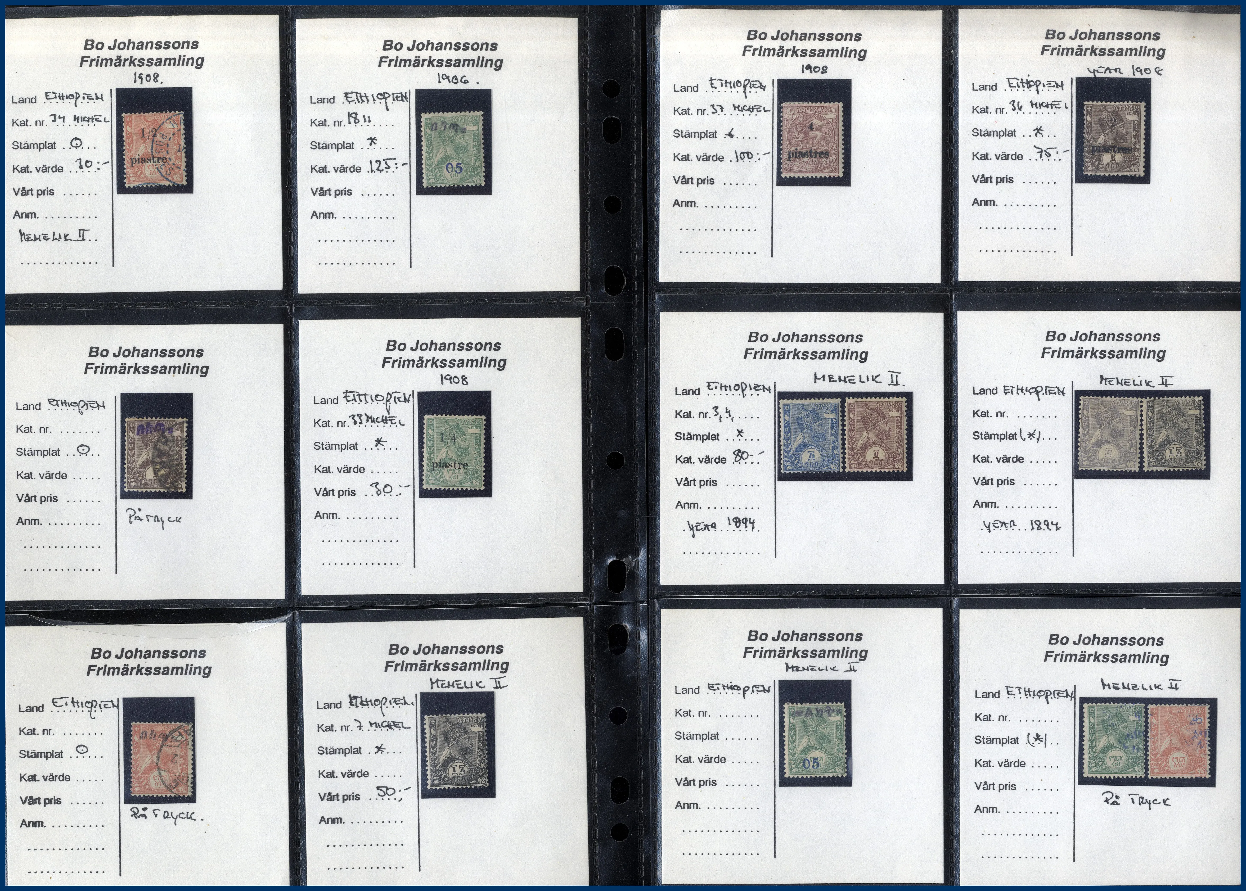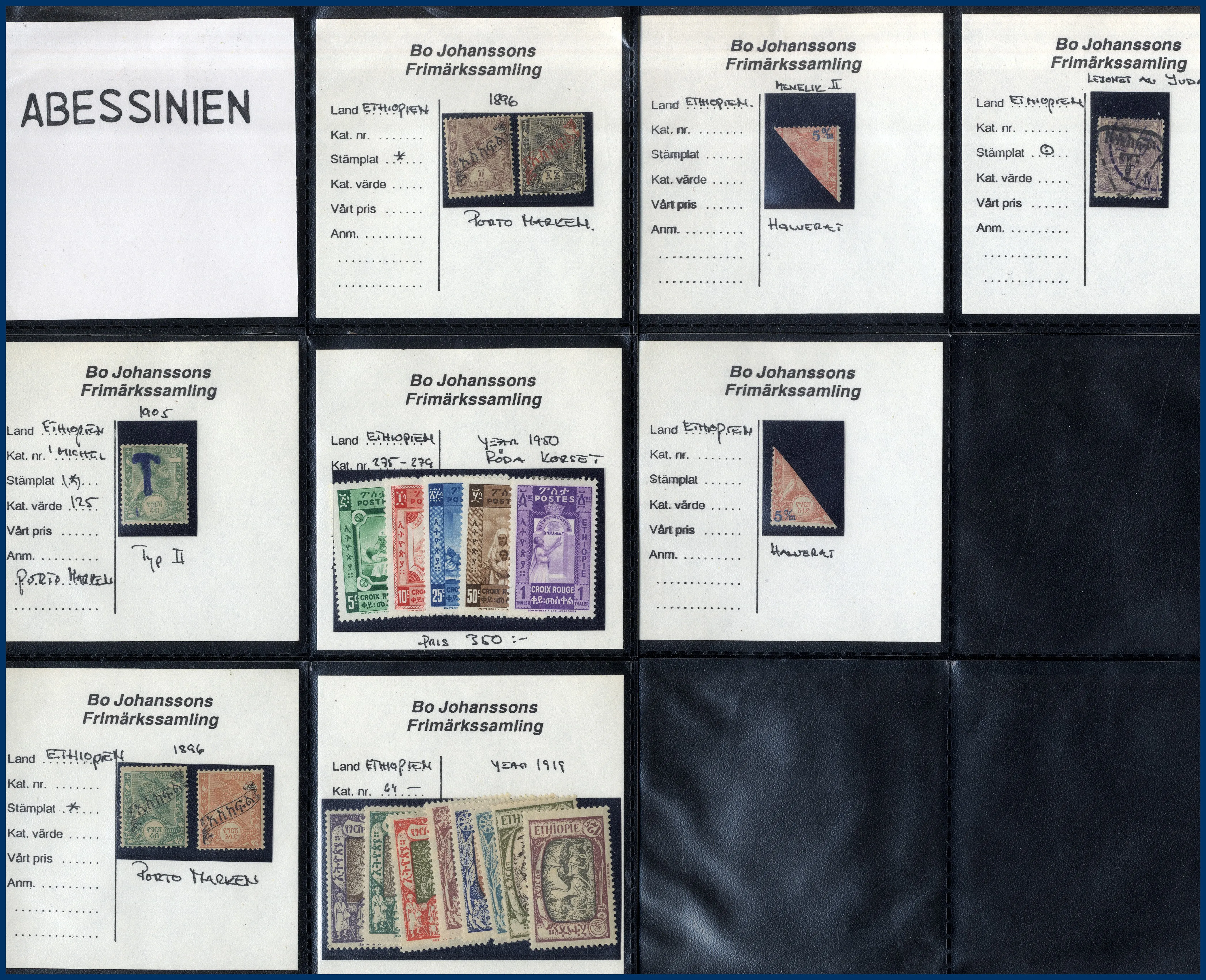album av olika typ, ibland med andra länder inemellan. T.ex. finns tidiga märken från Etiopien med halveringar, italienska och portugisiska kolonialfrimärken etc. Rolig låda att gå igenom.