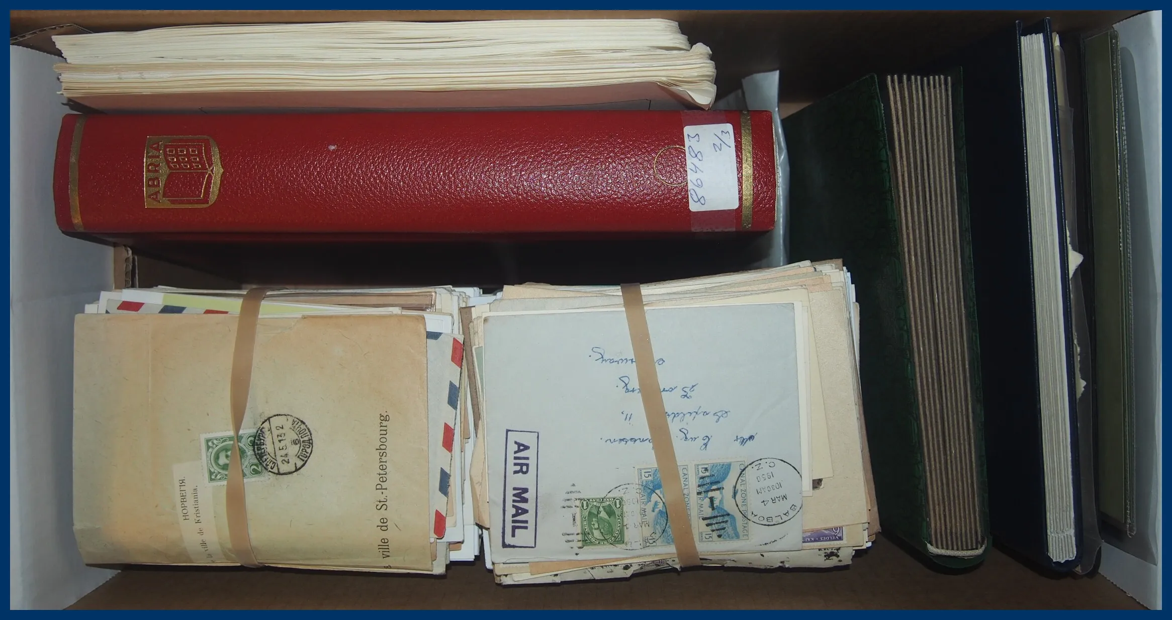 153. (F) Flyttlåda Hela världen O/**/* i 4 album + lösa blad,