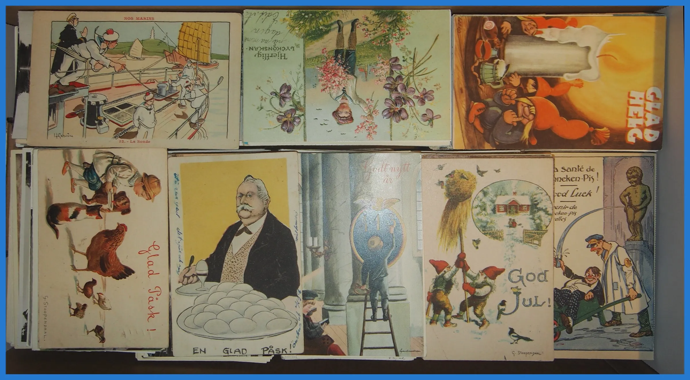 518. (F) Flyttlåda med ca 4.000 st gratulationsvykort från