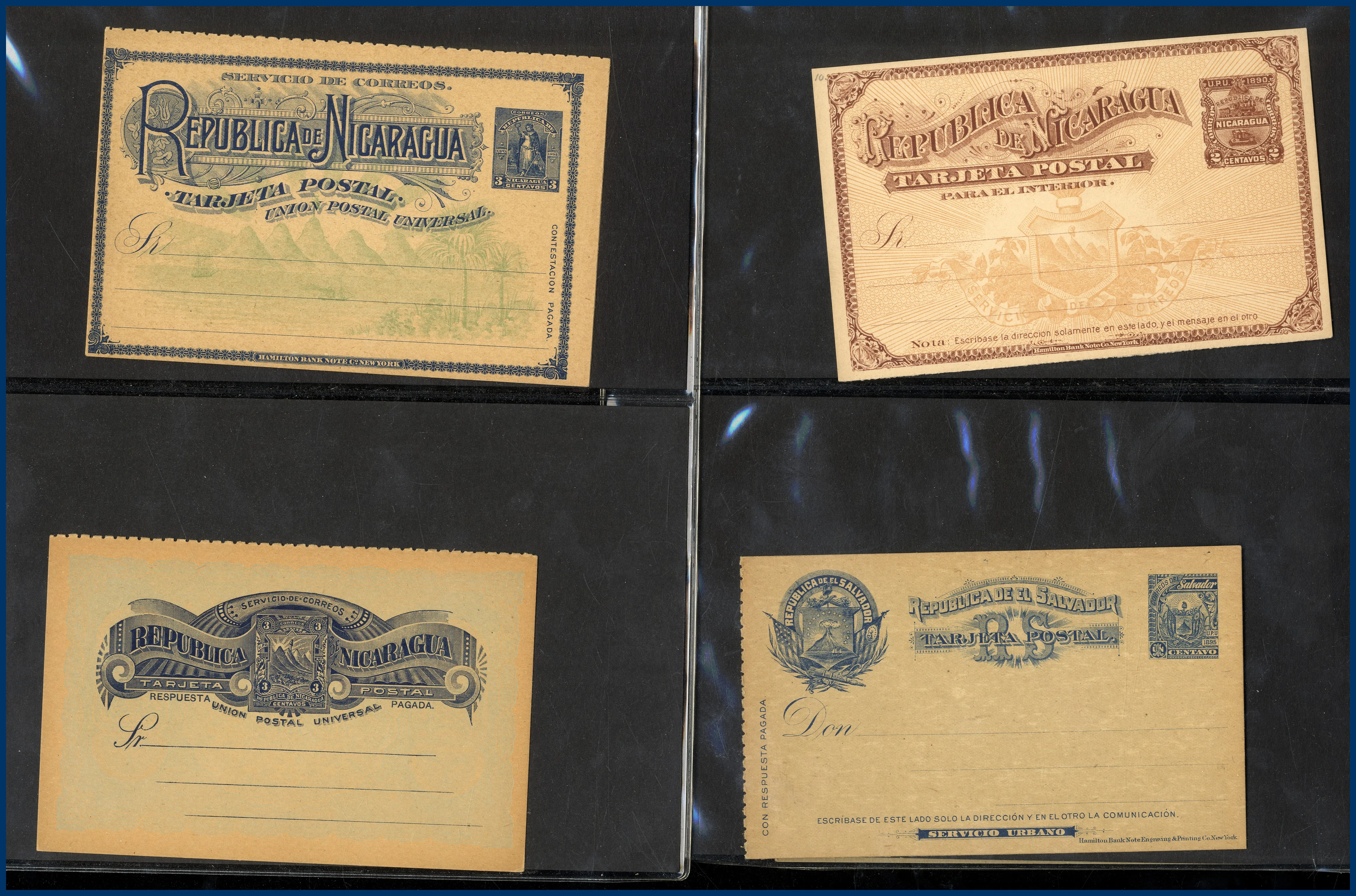 Österrike O/**/* i 2 album, ca 150 försändelser Österrike, ca 140 försändelser Kanada, album med helsaker från främst Nicaragua och El Salvador samt en kartong av typ skrivbordsrensning med vykort, brev och frimärken.