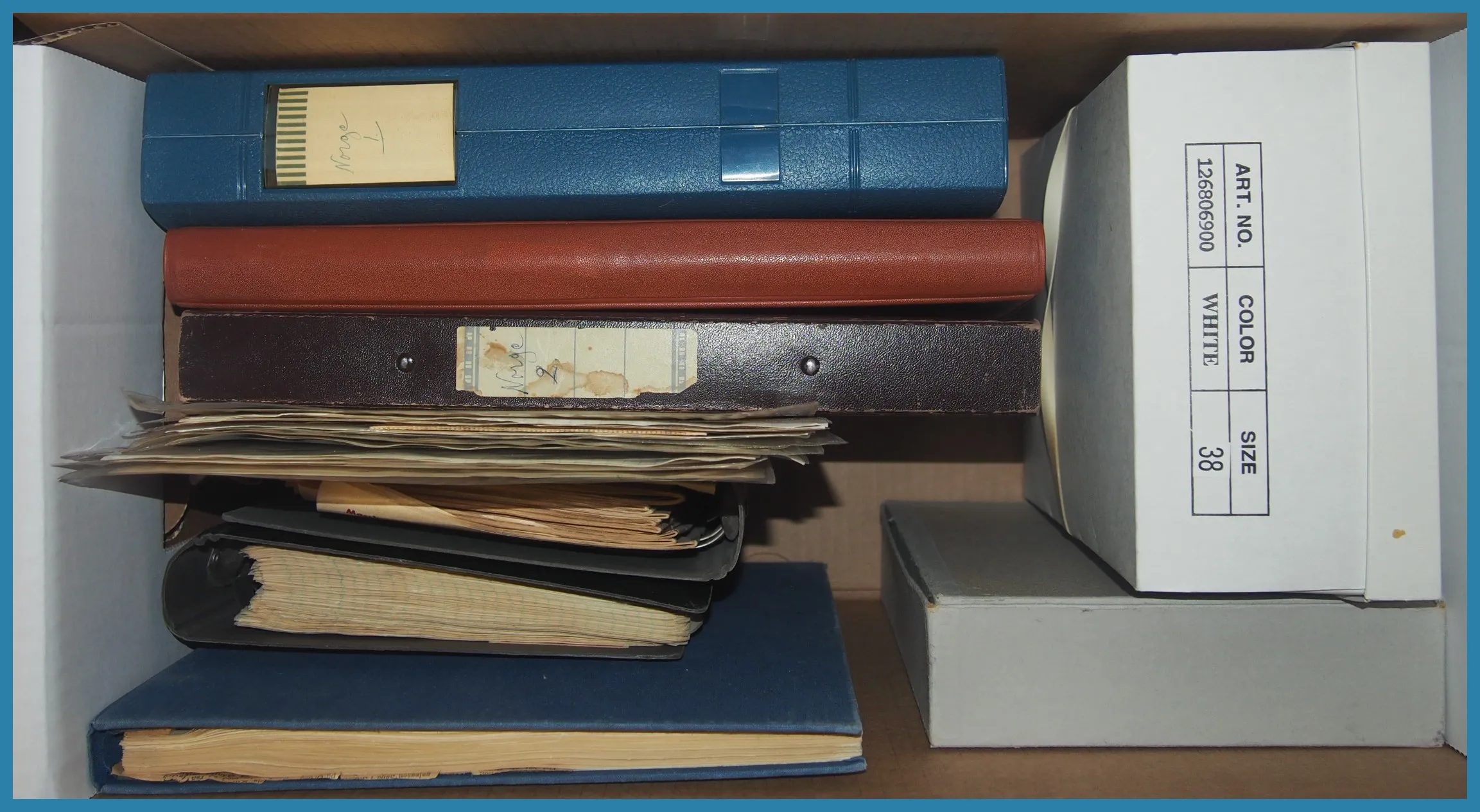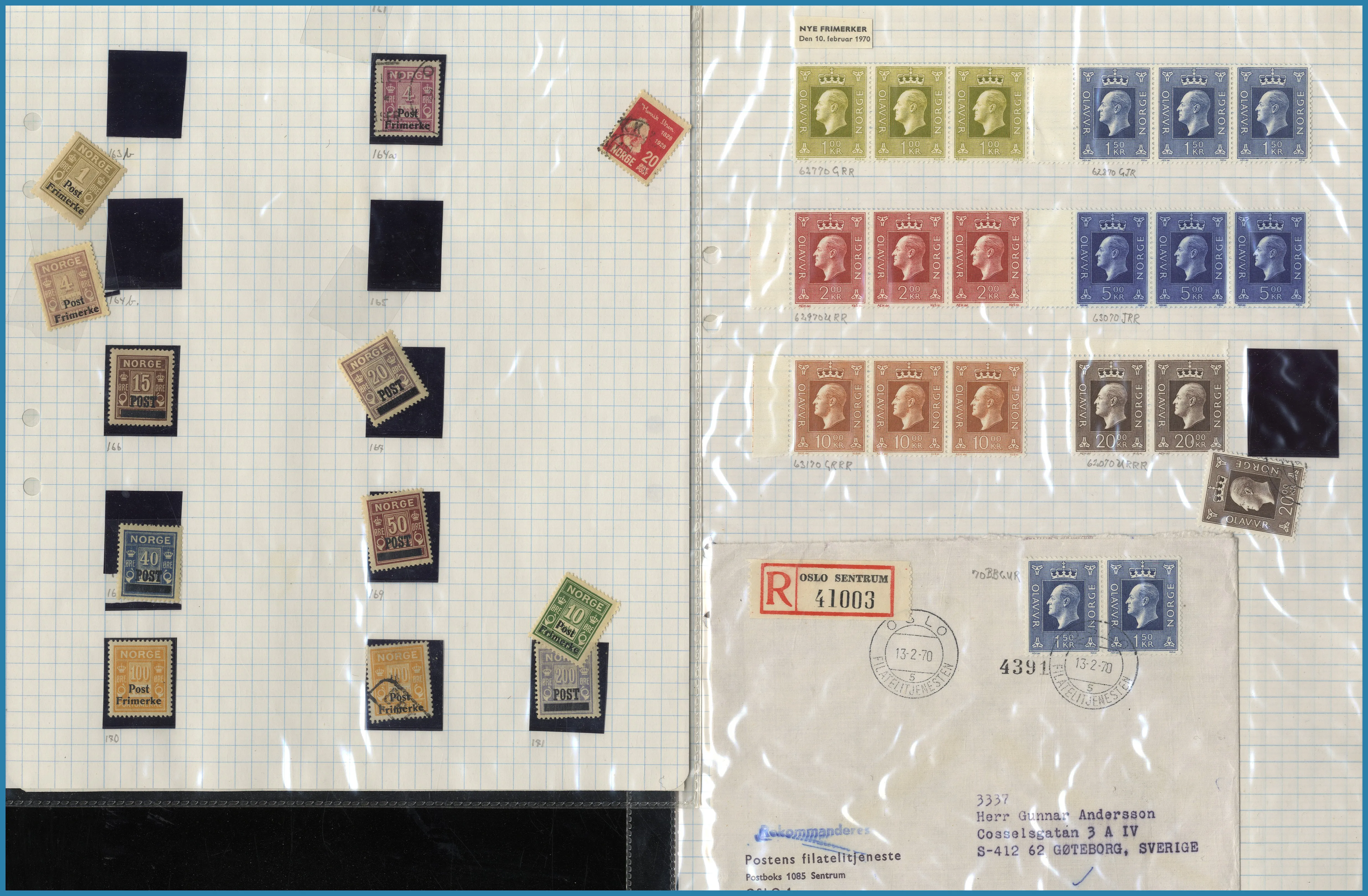 Ytterligare 2 album Sverige och blandat Hela världen, dito i 2 lådor med löst och märken i pergamynkuvert, inemellan även lite försändelser.