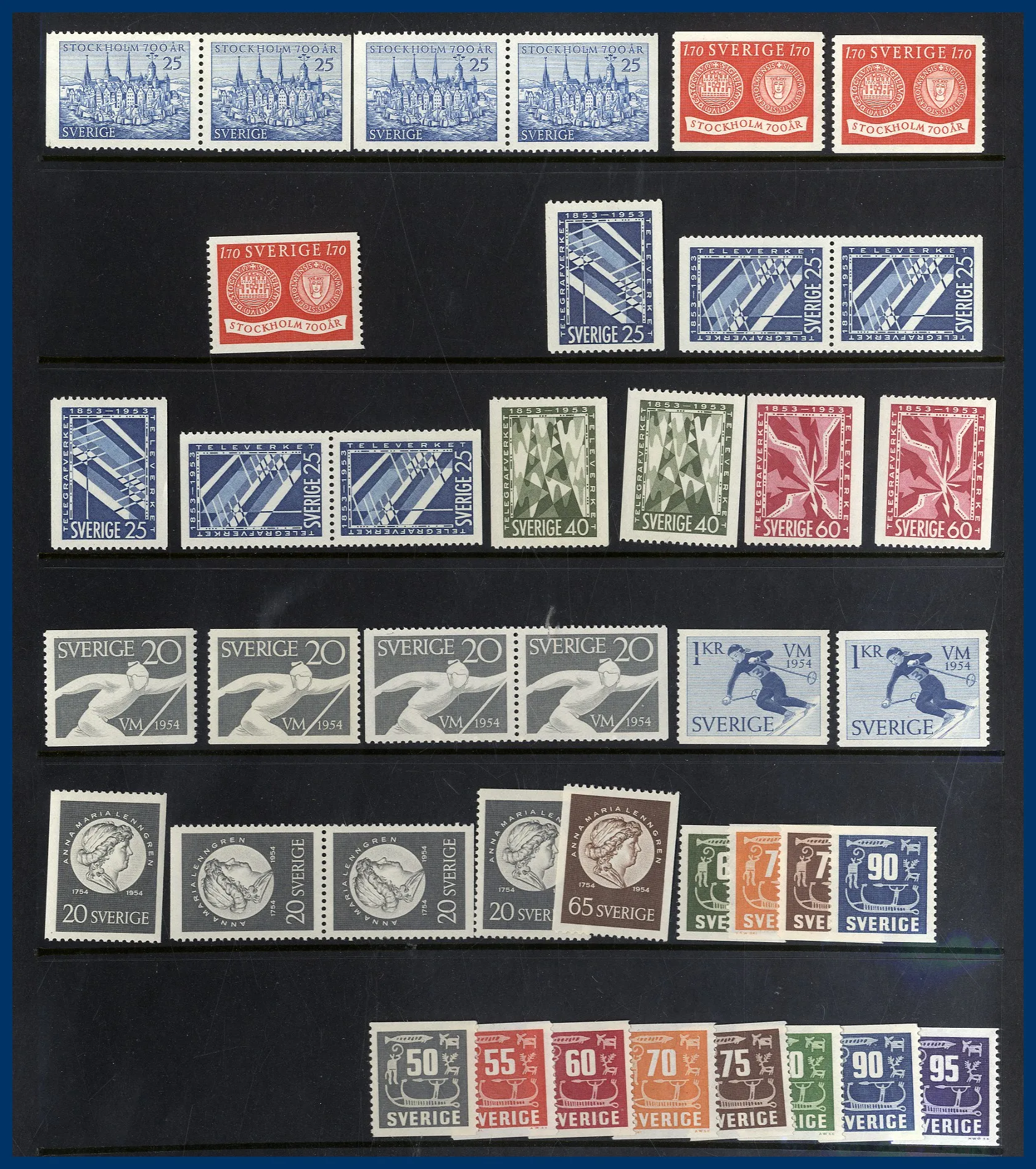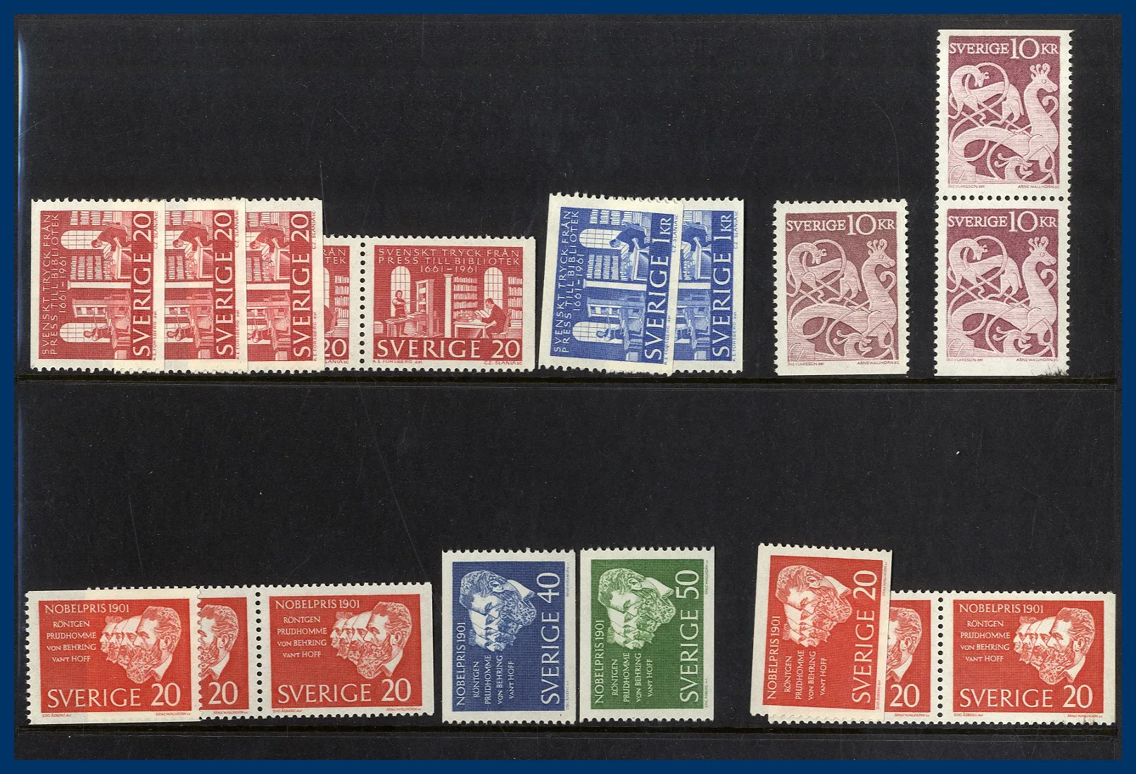 2 album FDC samt en bunt ** årssatser 1970-talet samt 1989 med nominal av drygt 800 kr. Även två äldre album med Hela världen O/* bla intressant Tyskland samt märken Hela världen löst i ask etc.