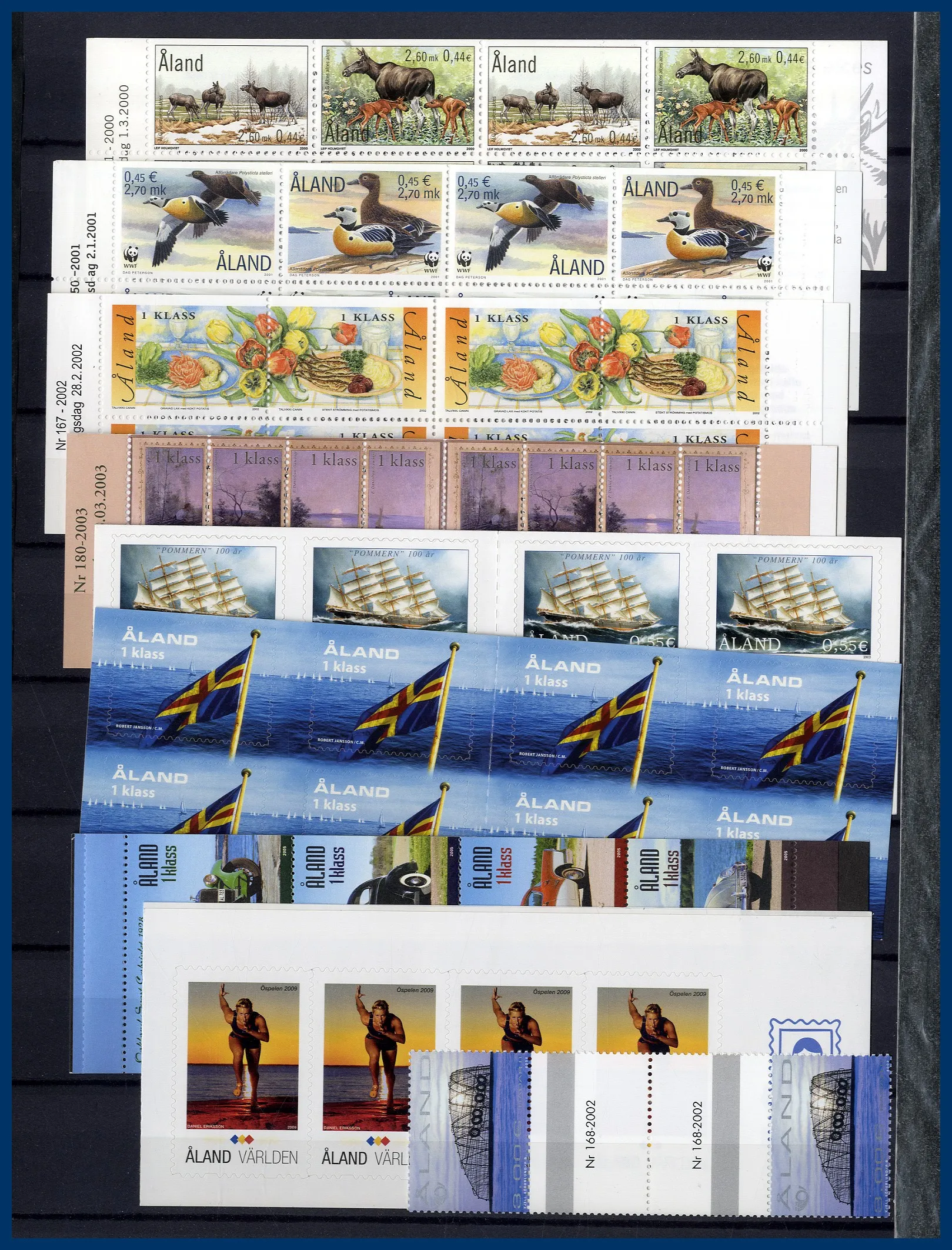 besatta) och i två plastlådor. Albumen innehåller på några ställen trevligt material men det roligaste finns i de två plastlådorna. Överlag stor andel **/* med bl a mycket Island inkl. några lite bättre, Åland stor mängd riktigt moderna med många valörlösa samt en hel del svenska häften från 1950- och 1960-talet. Även rejäl bunt svenska ** block (Svensk filmhistoria, Svensk flyghistoria etc.) samt ett antal helark. Småtrevlig låda.