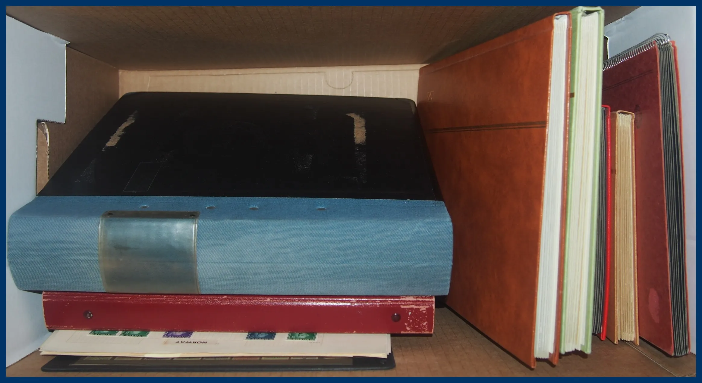 501. (F) Flyttlåda Norge stämplat i ett antal album av olika typ