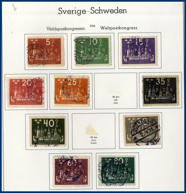 521. (F) Flyttlåda Sverige O/**/* i 15 album + lösa blad.