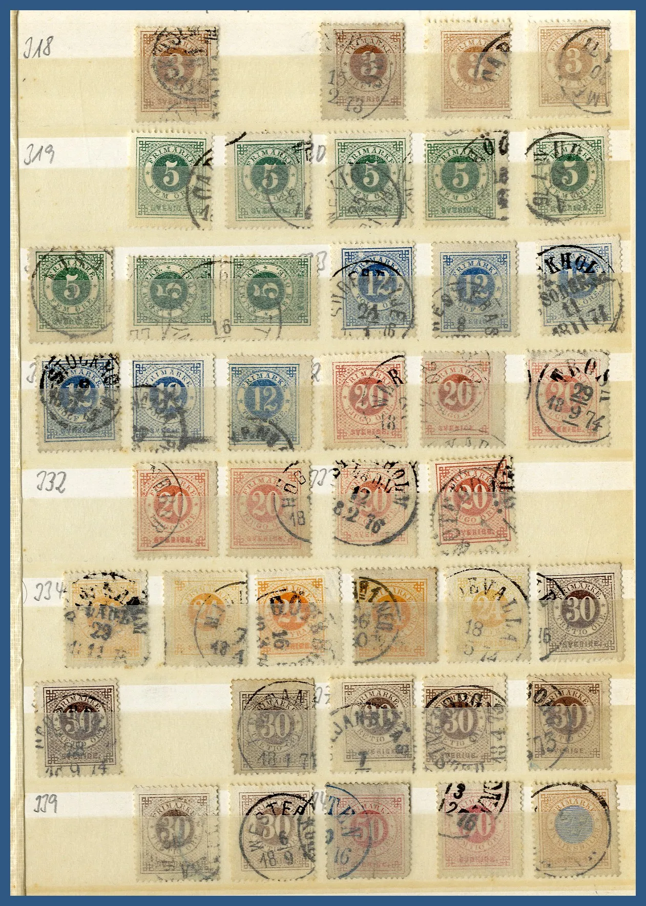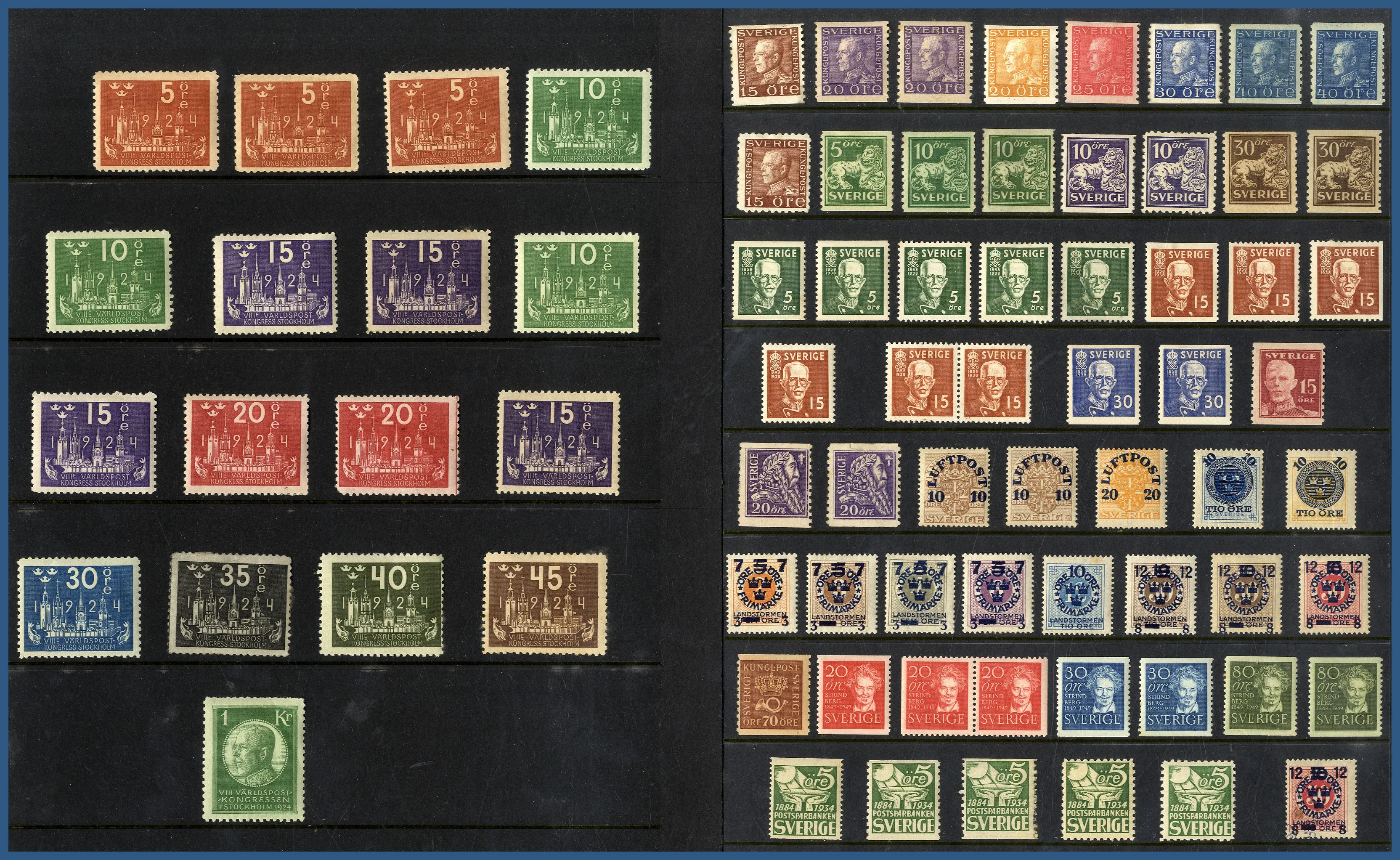 i diverse album, på lösa visirblad och i askar. En hel del trevligt material men blandad märkeskvalitet.