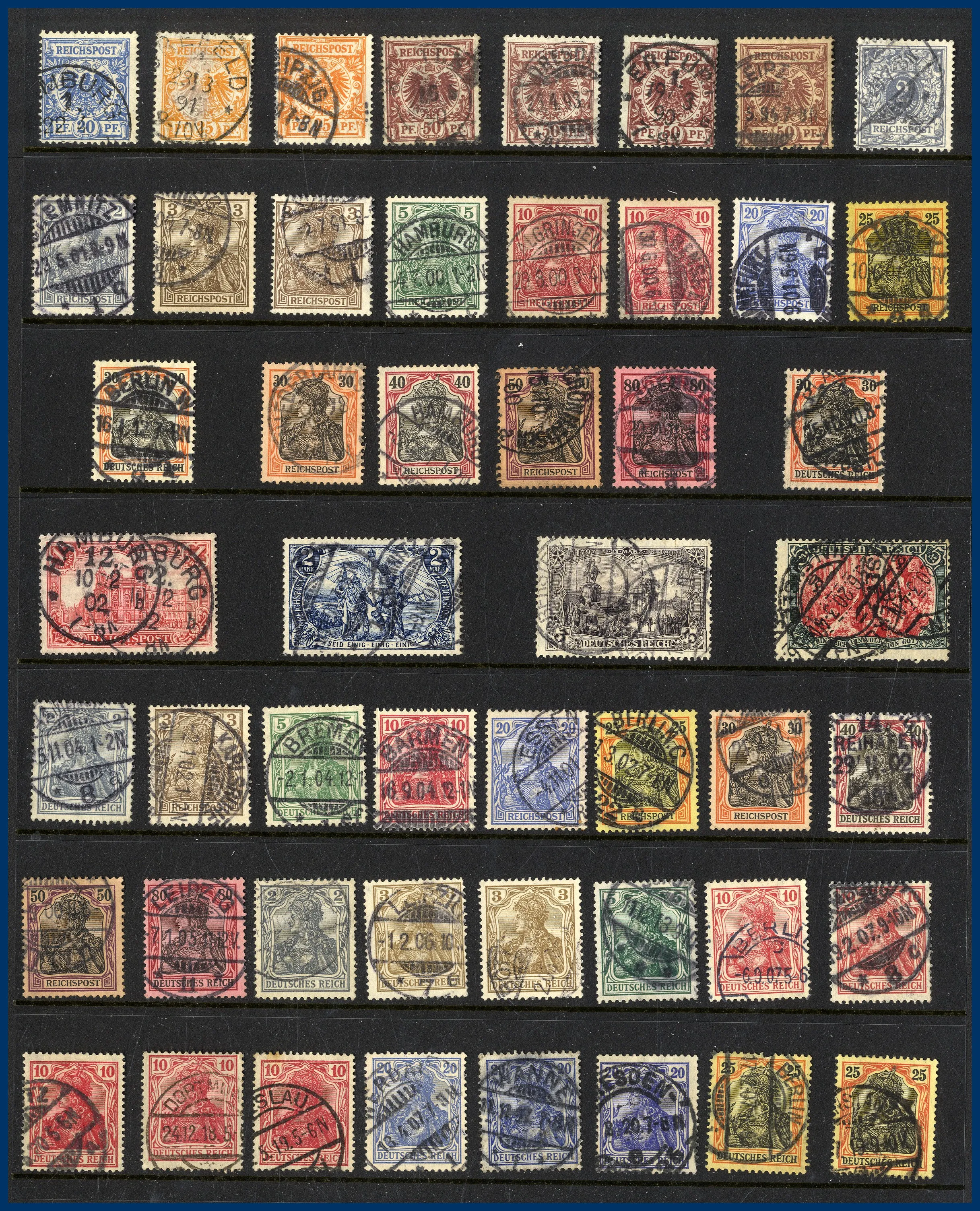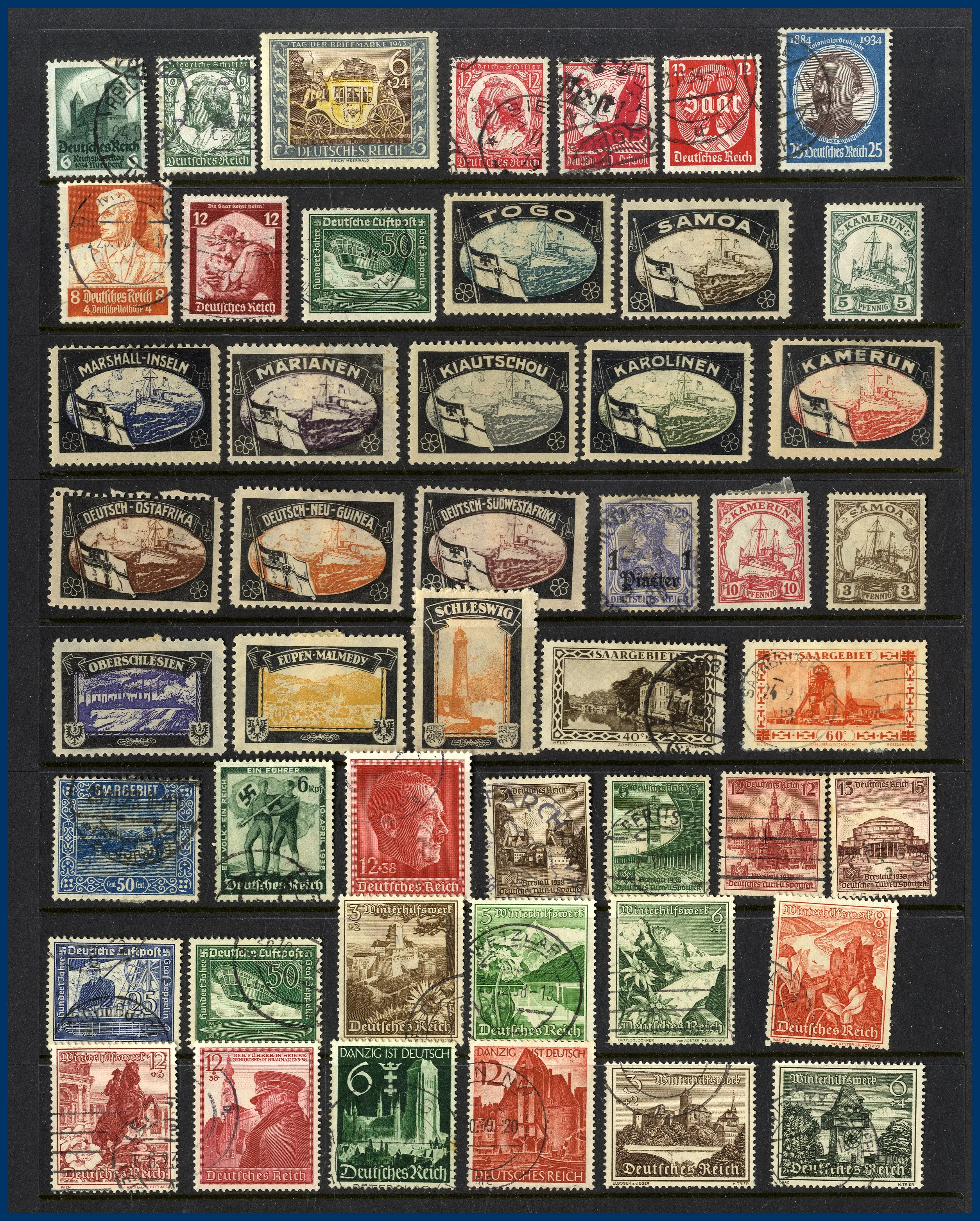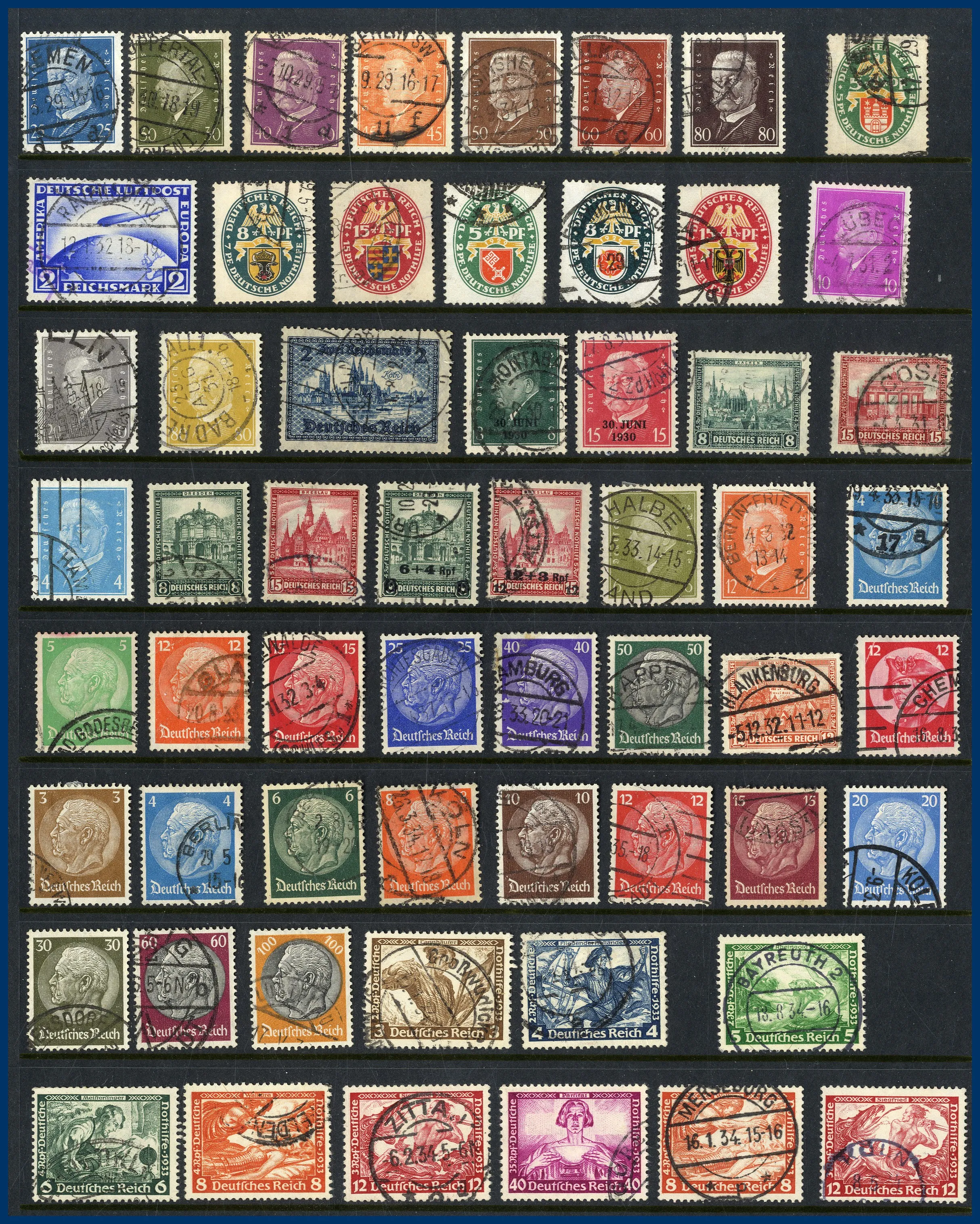 finns. Innehåller ostrukturerade samlingar och dubbletter i totalt 8 album. Det finns lite bättre serier och märken här och där. Massor av dubbletter där man kan plocka vackra stämplar, leta vattenmärken, tandningar, nyanser etc. Trevlig post för Tysklandsentusiasten.