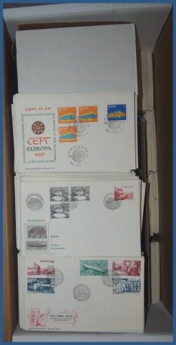 101. (F) Flyttlåda med ca 1.000 st FDC med vinjetter 1970-talet