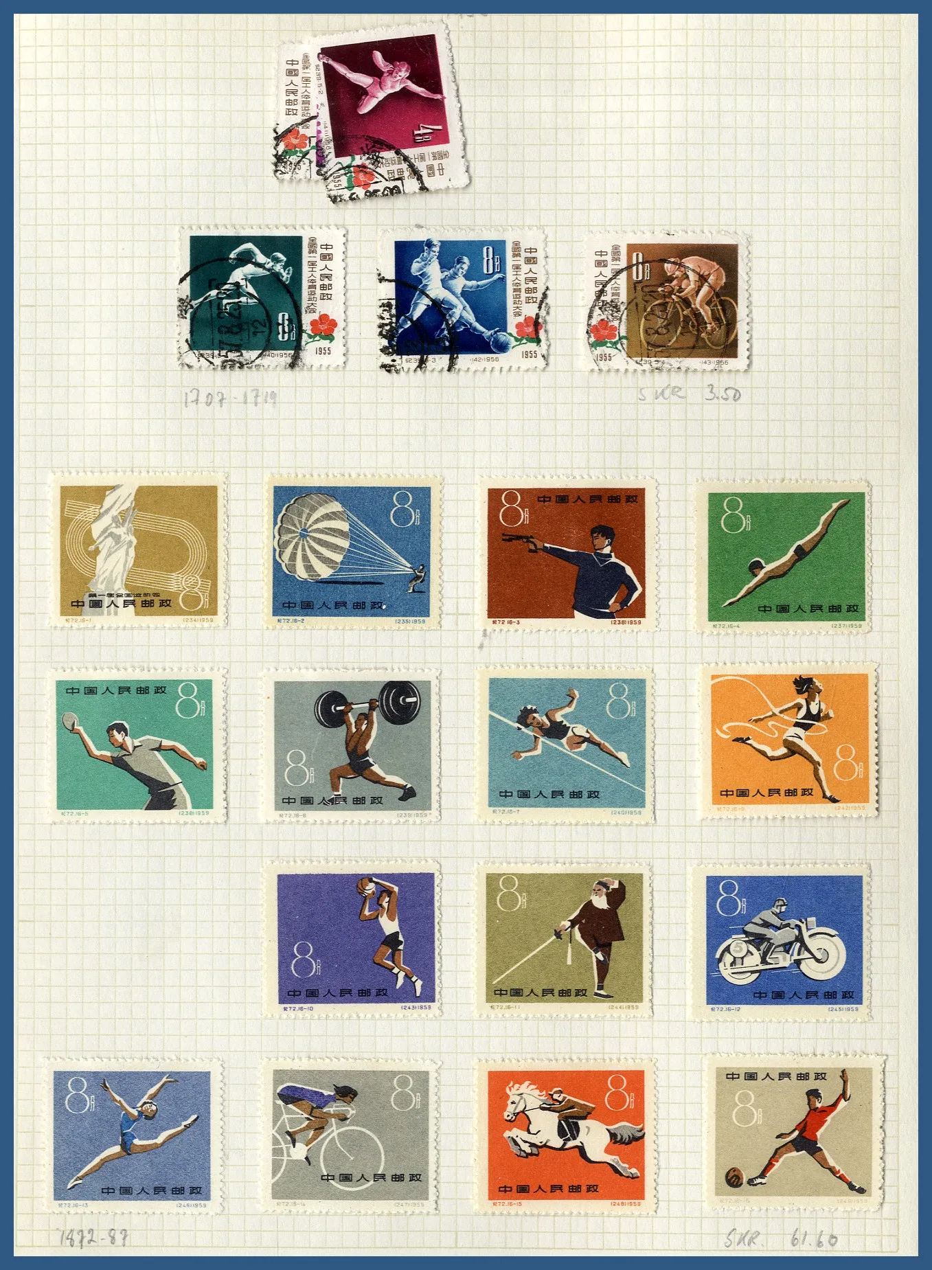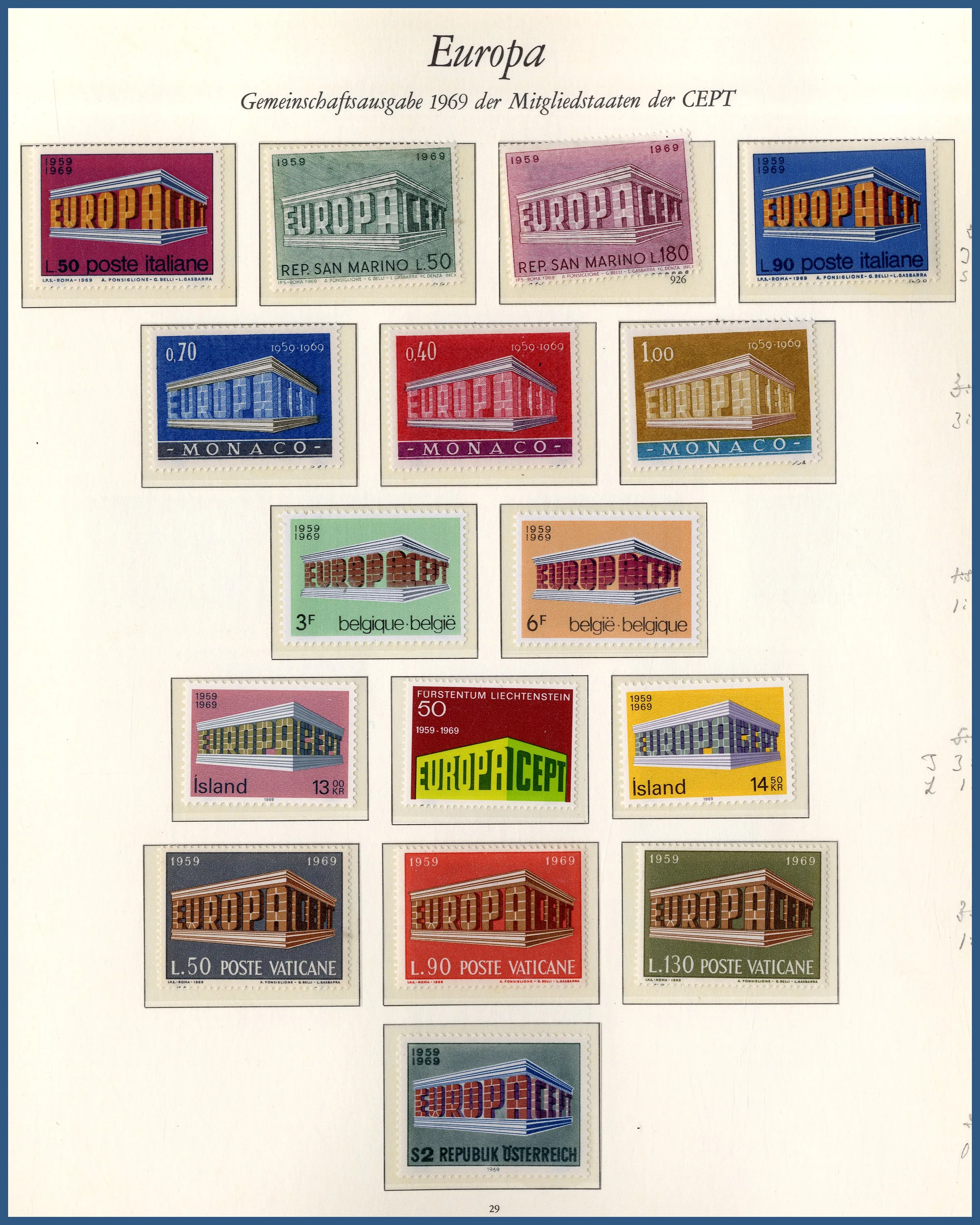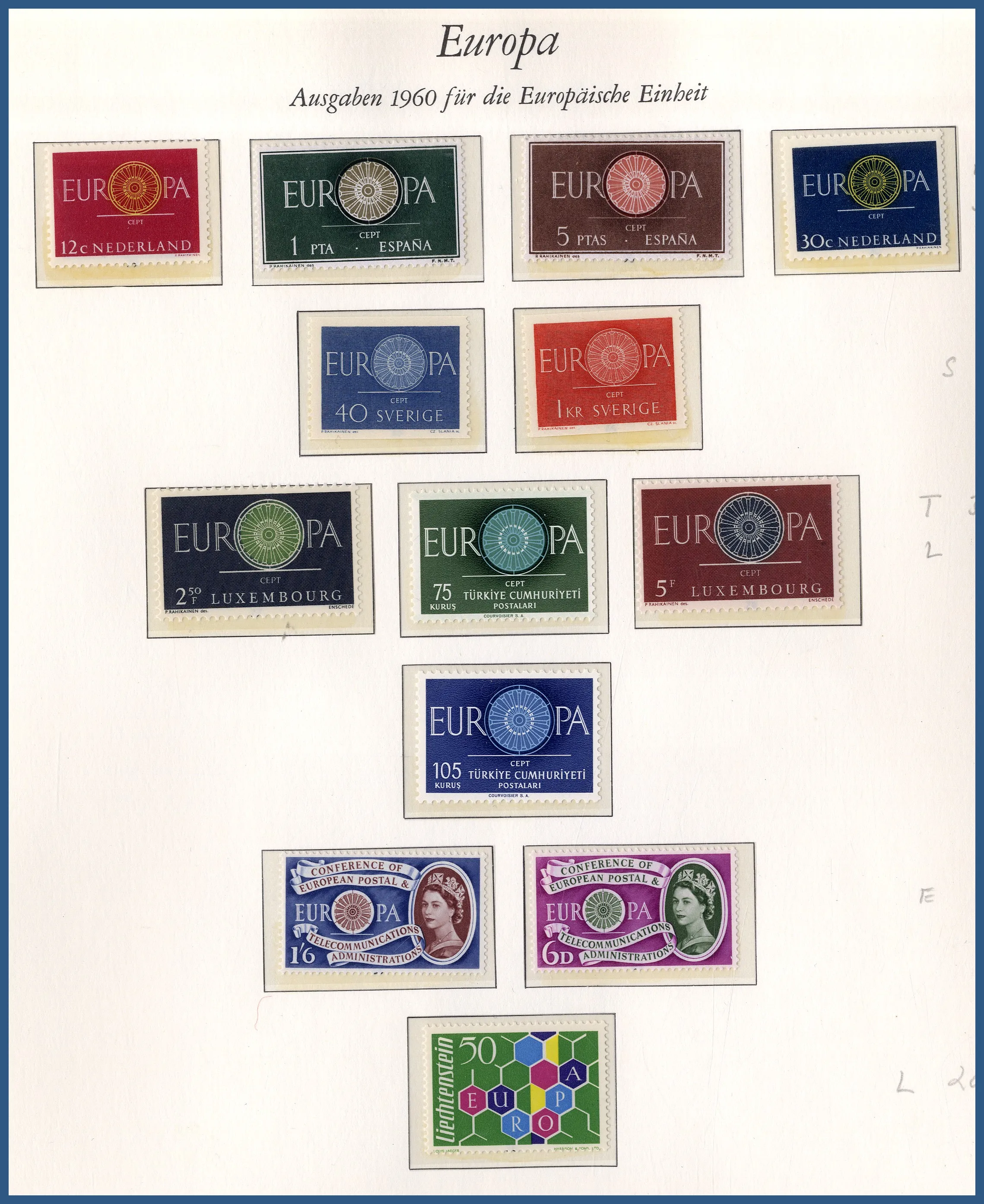 inemellan, samlat i 2 album + mängder av märken nedsorterade per land i lång pergamynlåda. Tillkommer också **/* samling Europa och stämplade samlingar Danzig, Bayern och Ungern på lösa äldre albumblad.